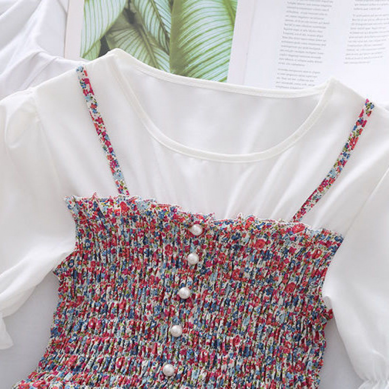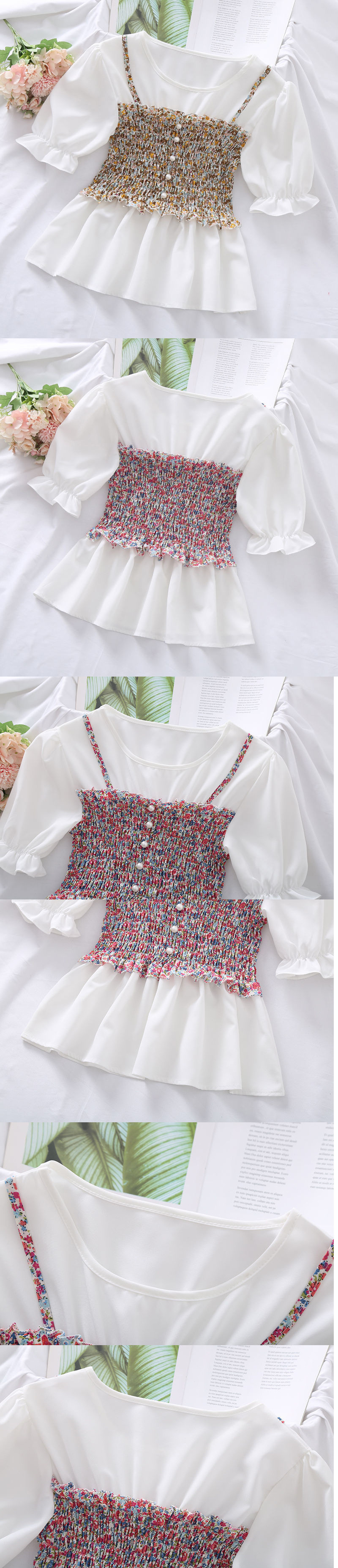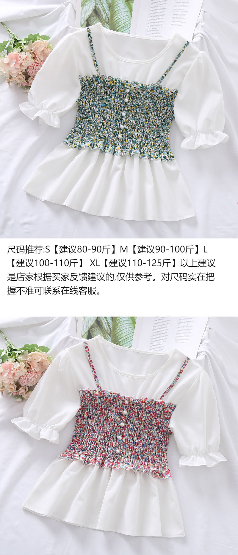 여성용 쉬폰 셔츠, 새로운 디자인, 틈새 꽃무늬 스플라이싱, 슬림하고 젊고 다재다능한 가짜 투피스 탑