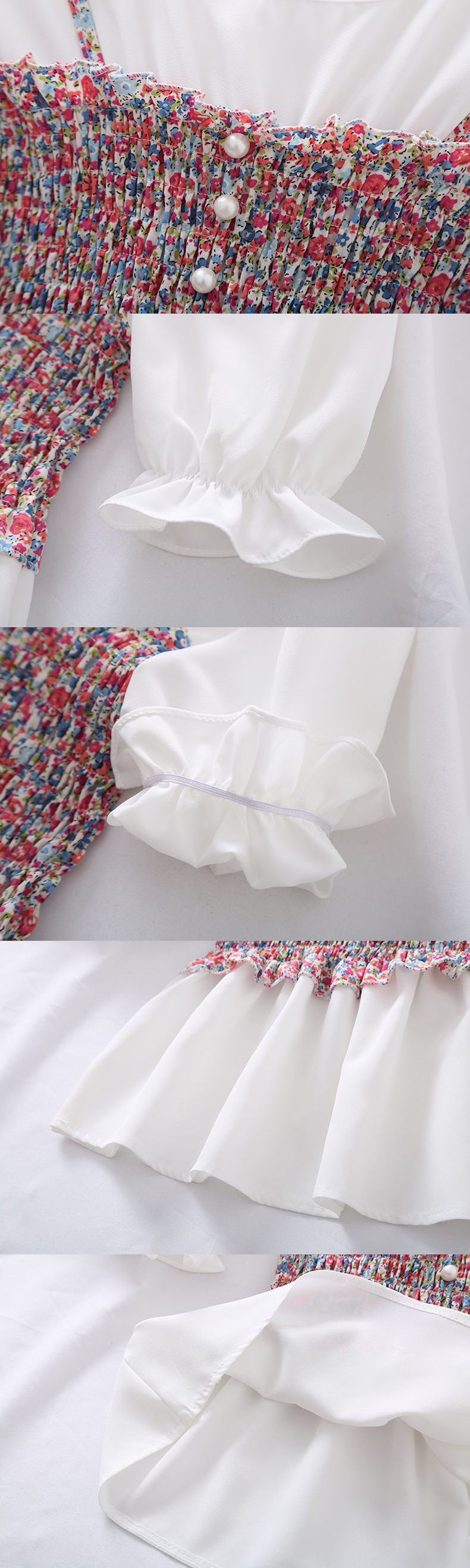 • 옐로우 플로럴 패치워크 시폰 셔츠