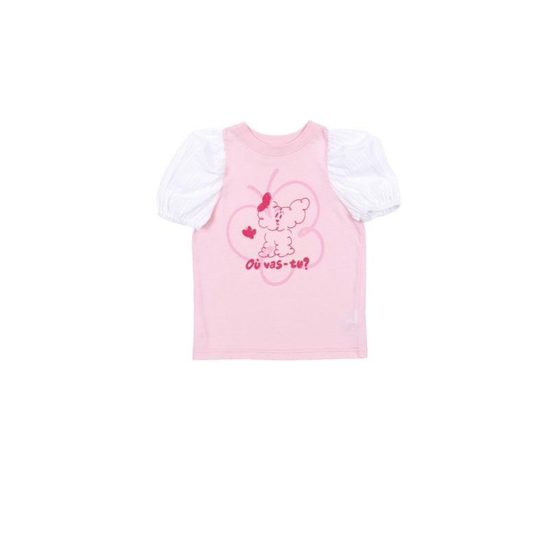 • BE 핑크 퍼프 슬리브 나비견 티셔츠
