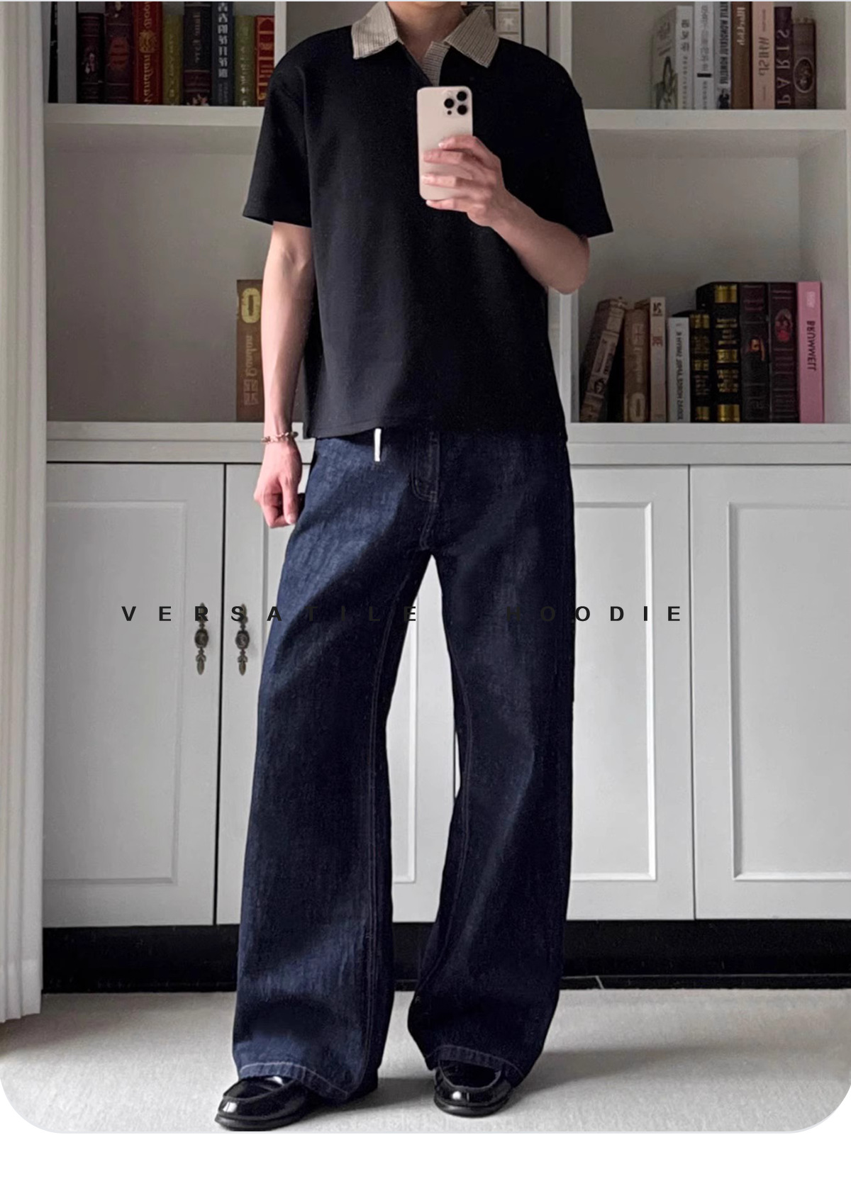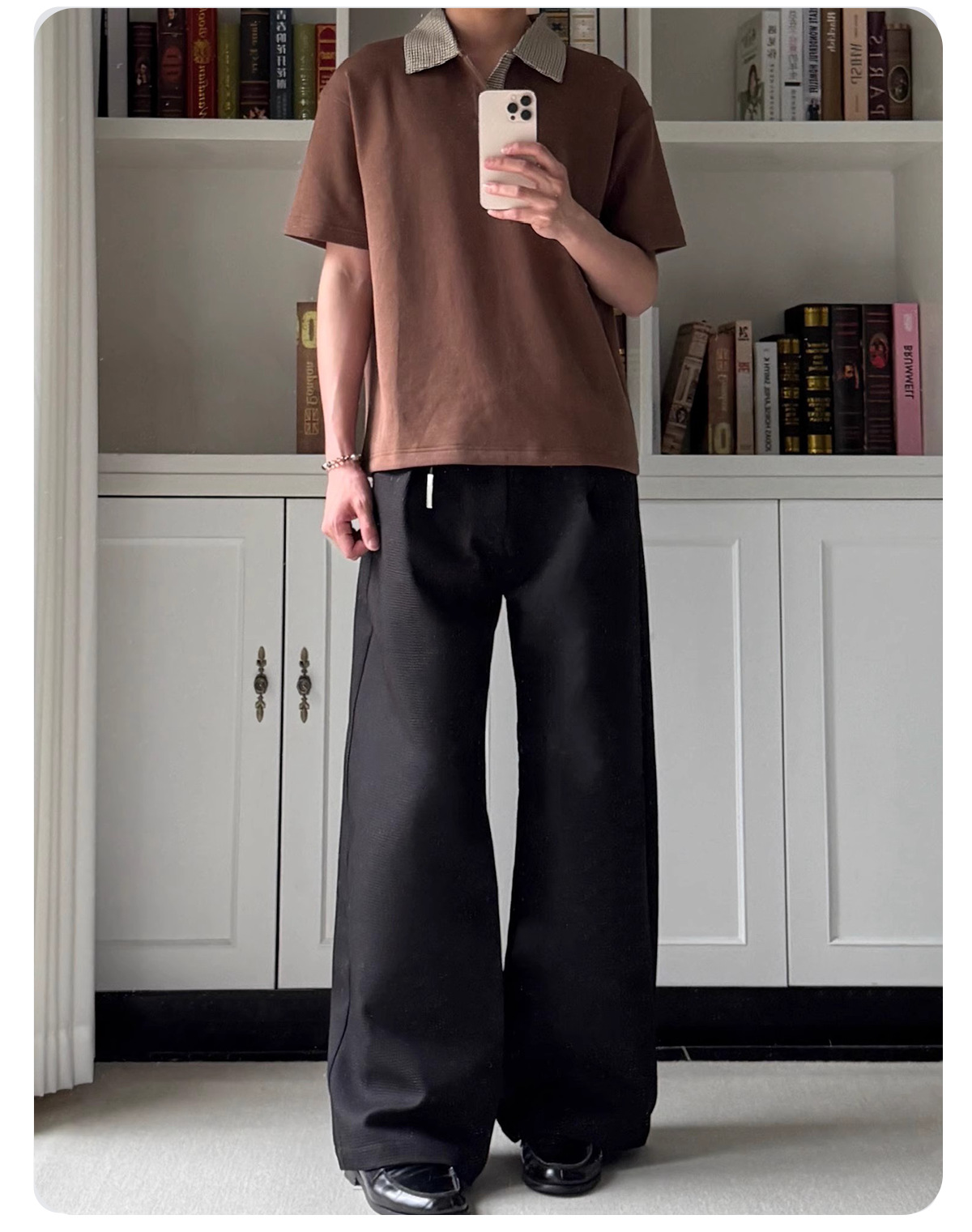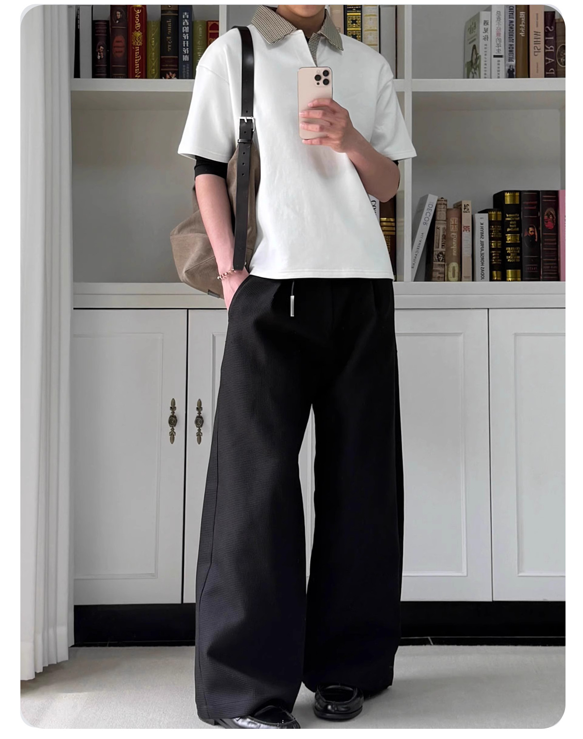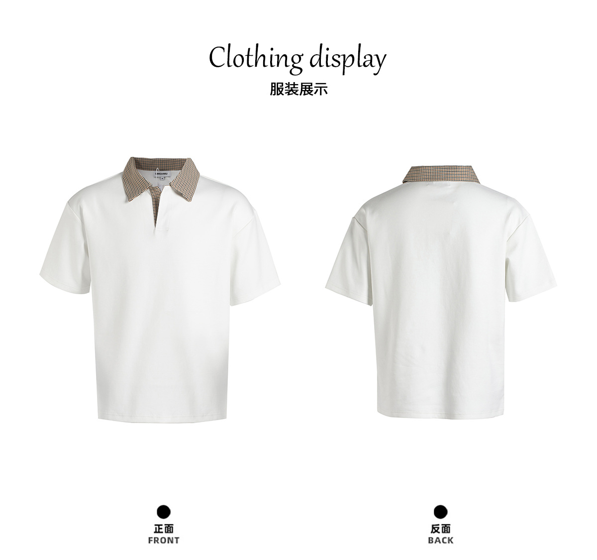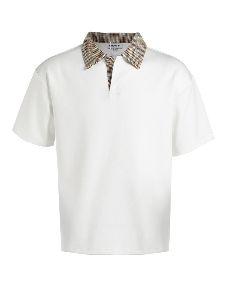 [CSMY] Xanvas houndstooth 스티칭 폴로 칼라 아이스 느낌 주름 방지 에어 레이어 짧은 소매 티셔츠 오래 된 Qian feng 남성