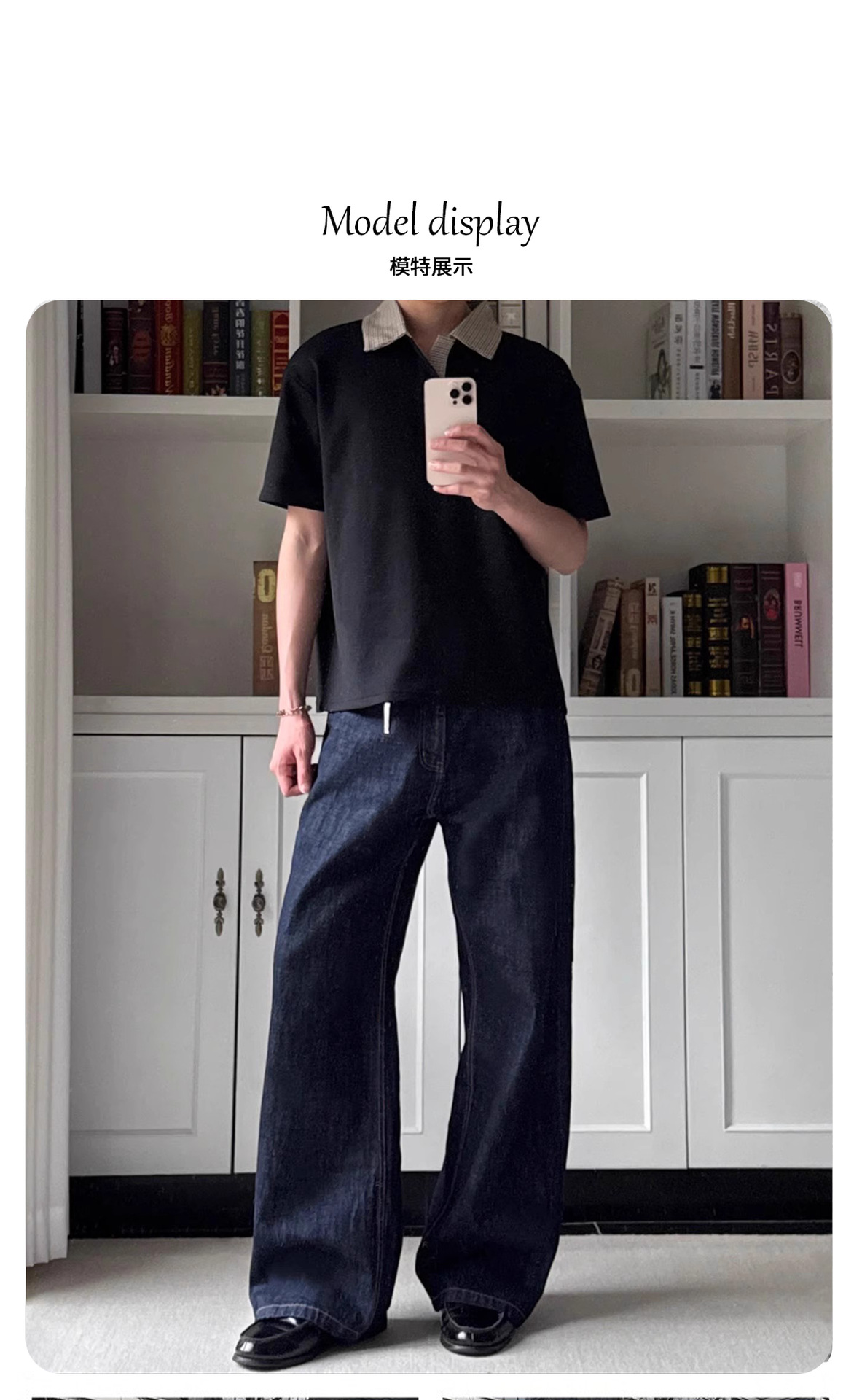 [CSMY] Xanvas houndstooth 스티칭 폴로 칼라 아이스 느낌 주름 방지 에어 레이어 짧은 소매 티셔츠 오래 된 Qian feng 남성스토어 가기