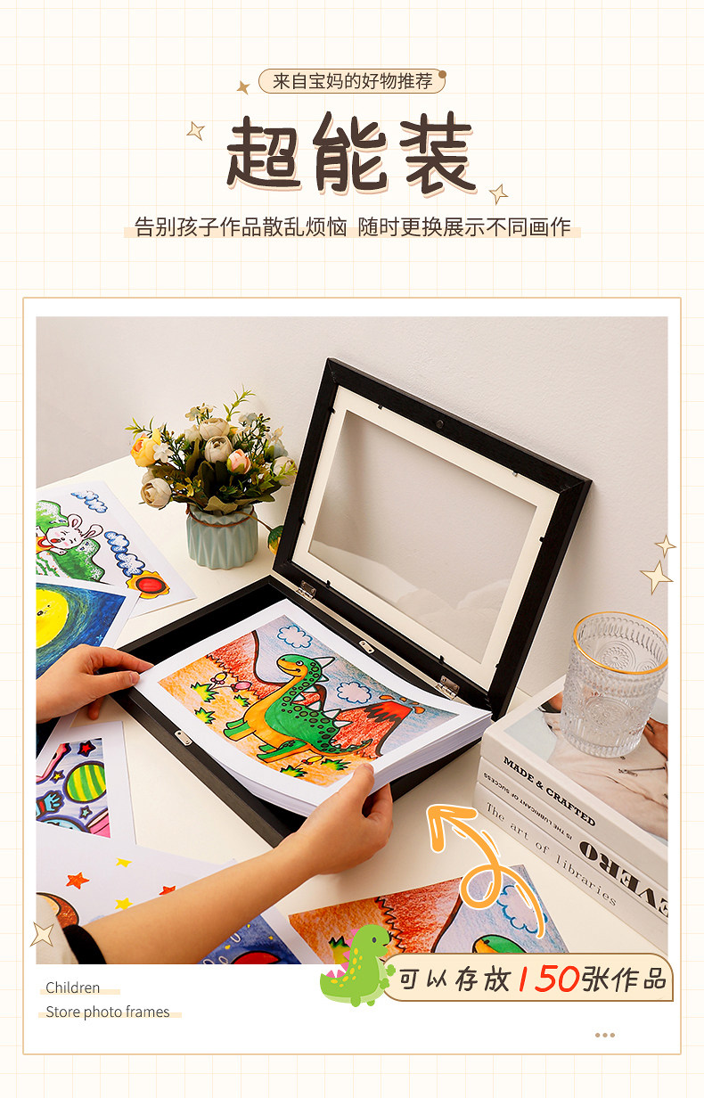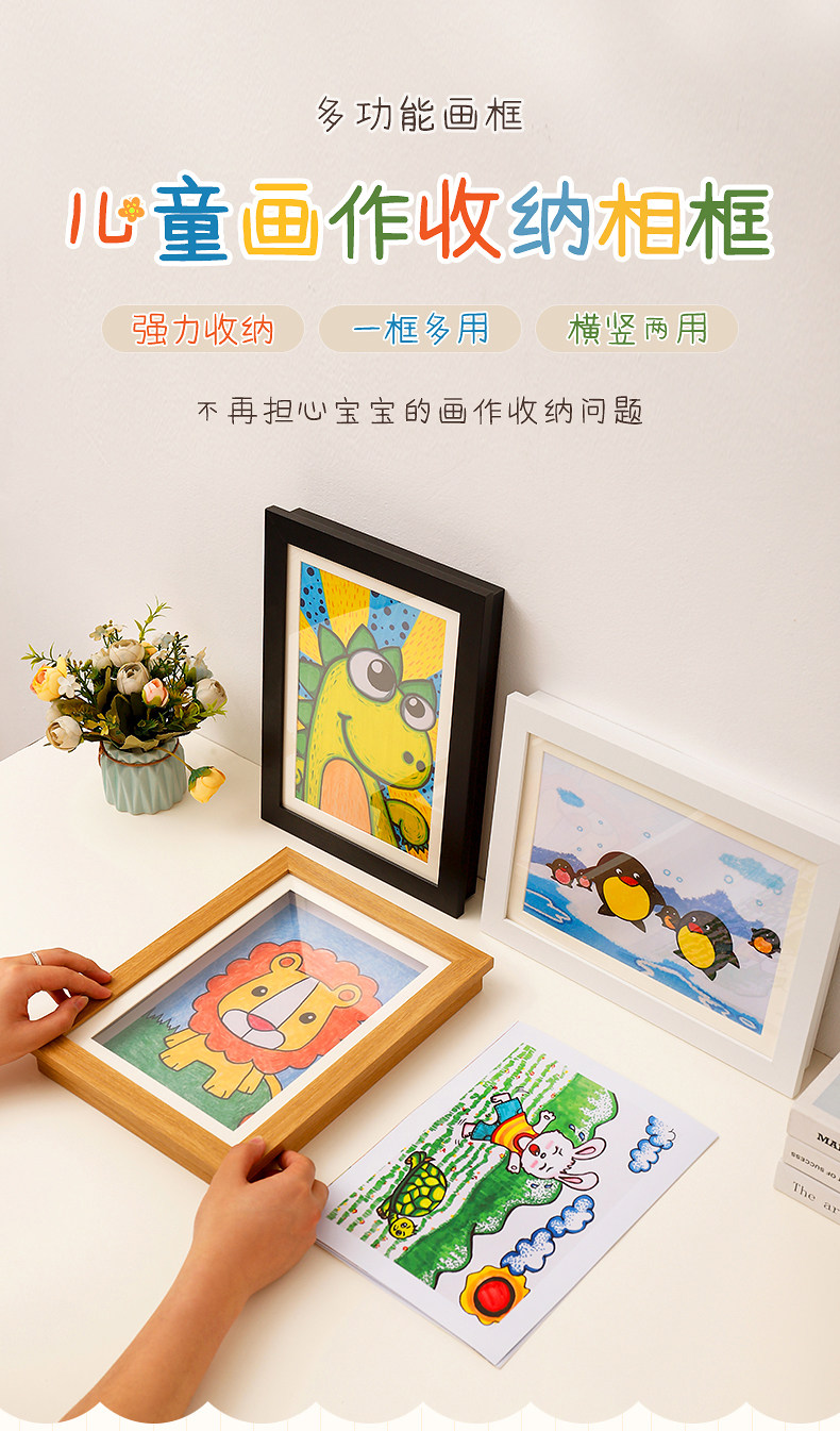 국경을 넘는 어린이 그림 액자, 자석 덮개형 수납, A4 그림 용지 전시, 무타공 목재 어린이 미술 액자스토어 가기