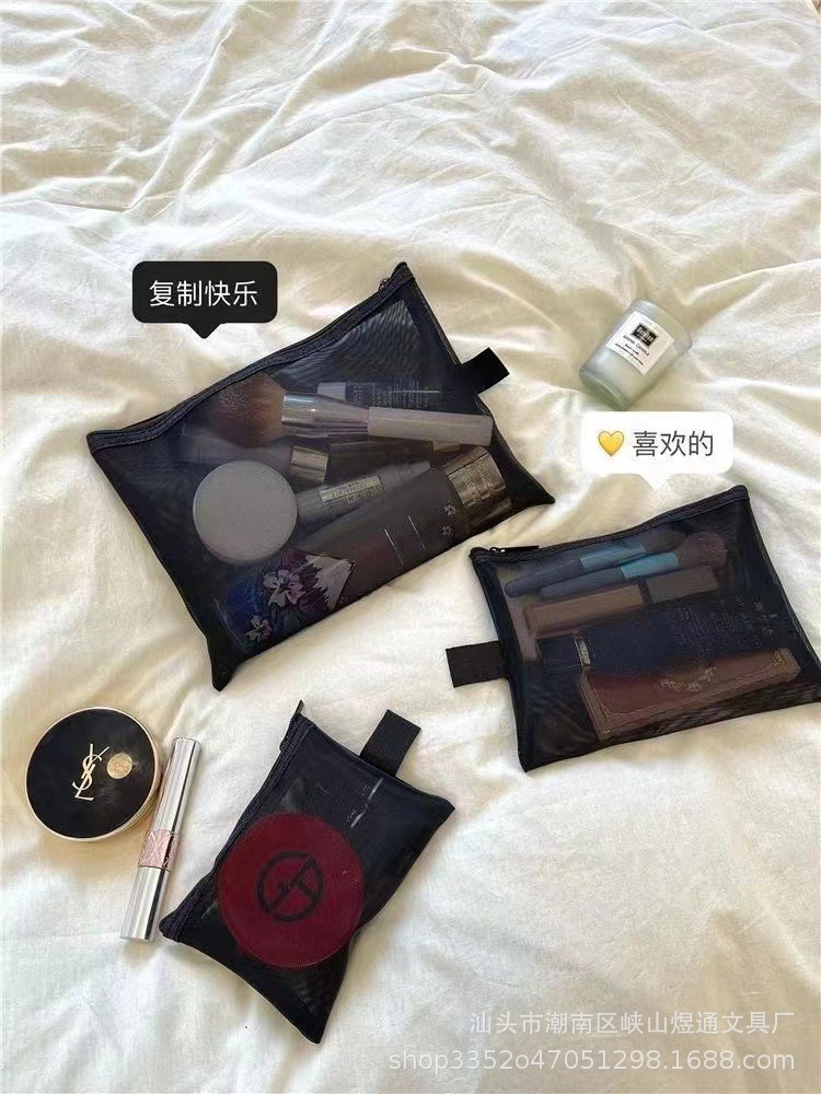 투명 메쉬 수납 가방 화장품 가방 간단하고 휴대성이 뛰어나고 대용량이며 다양한 크기로 제공됩니다.