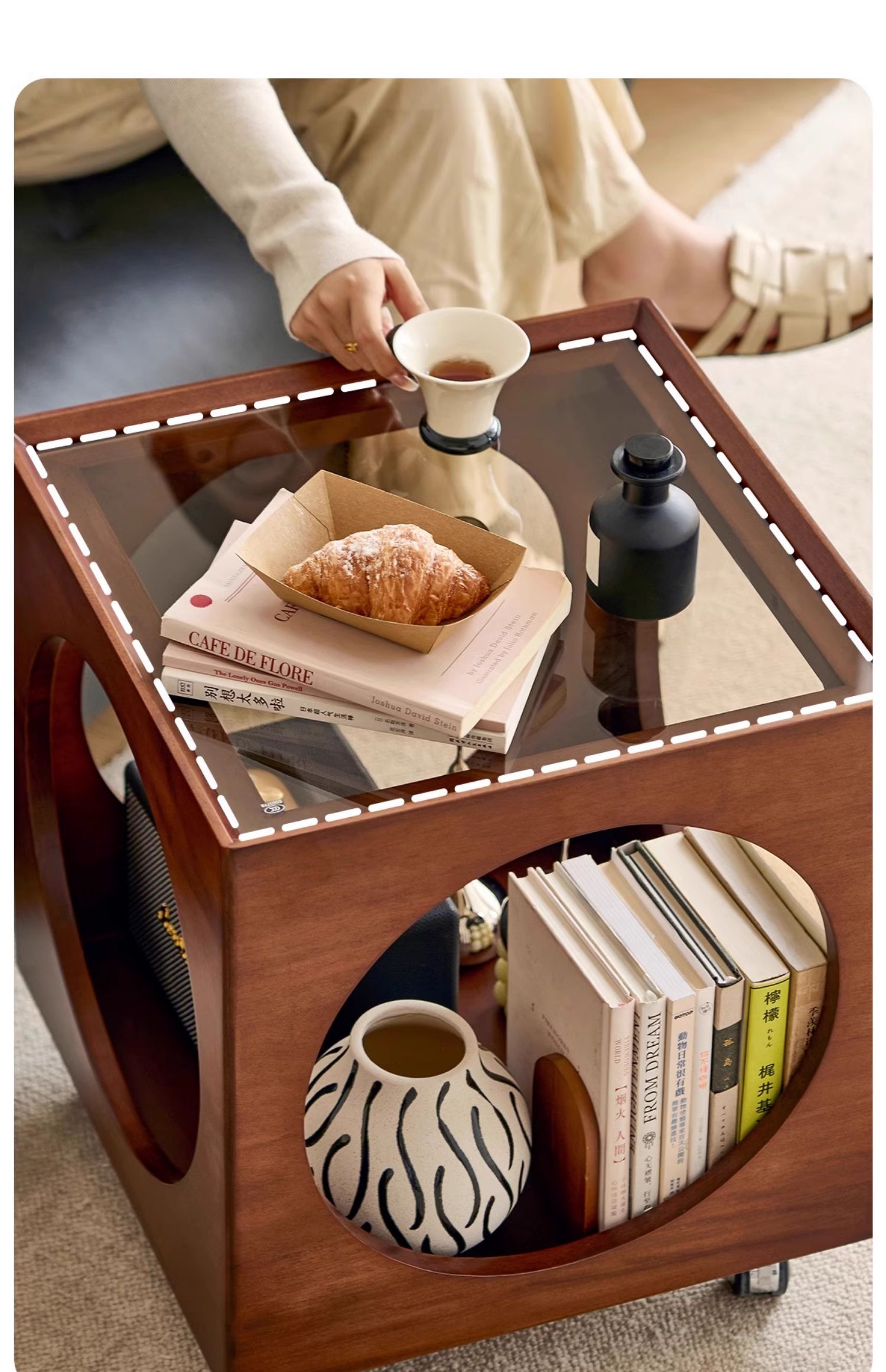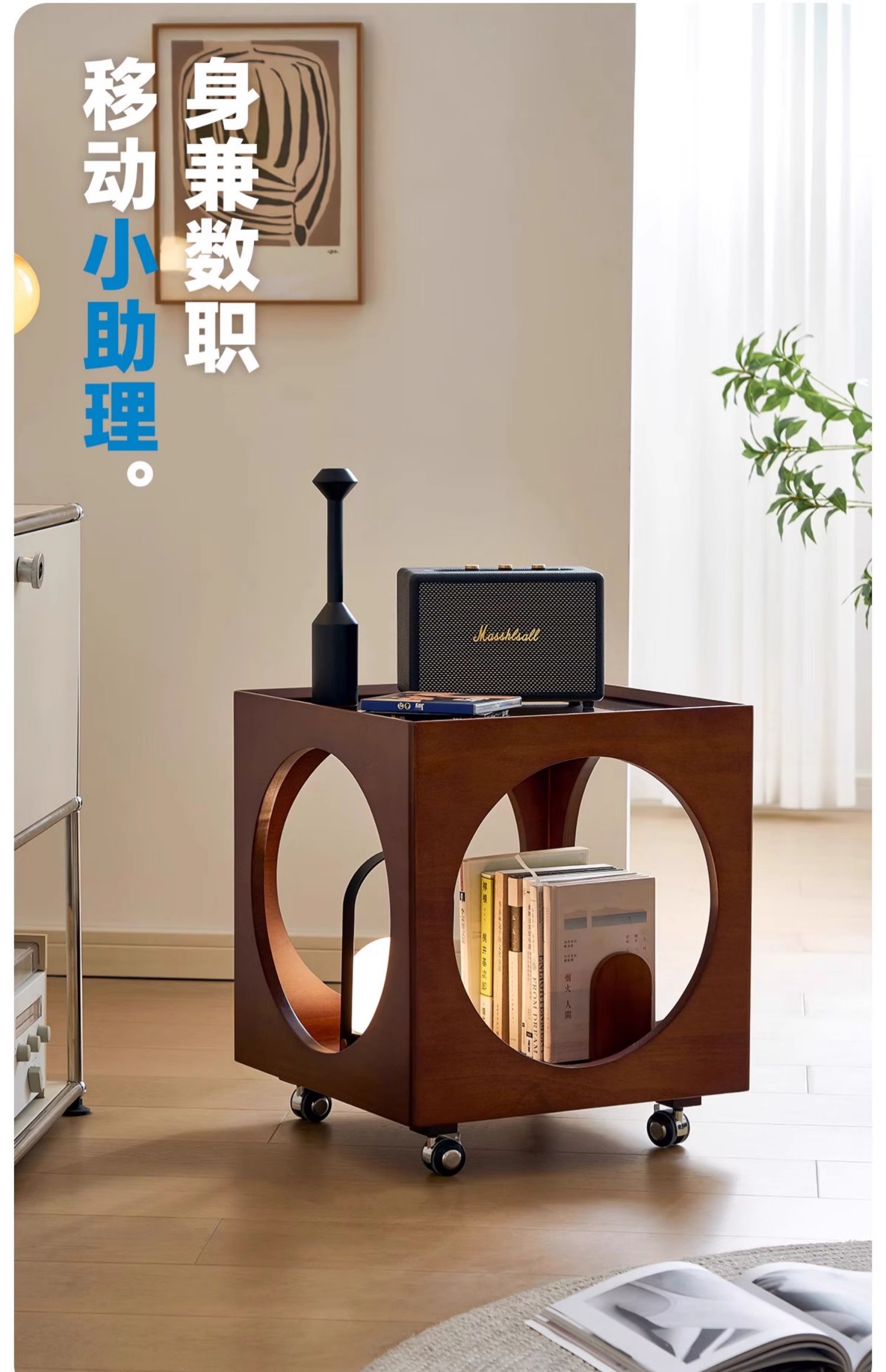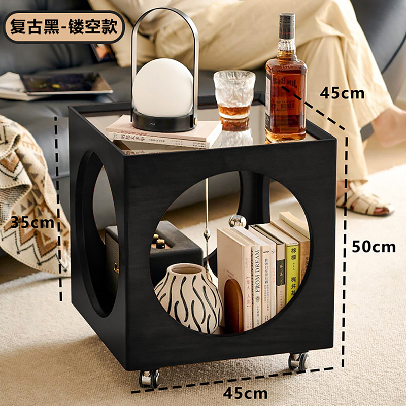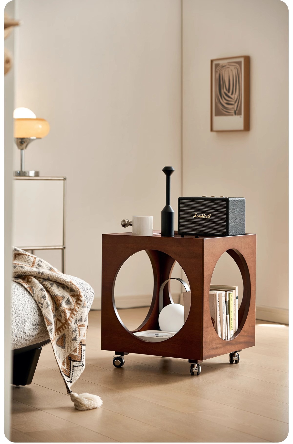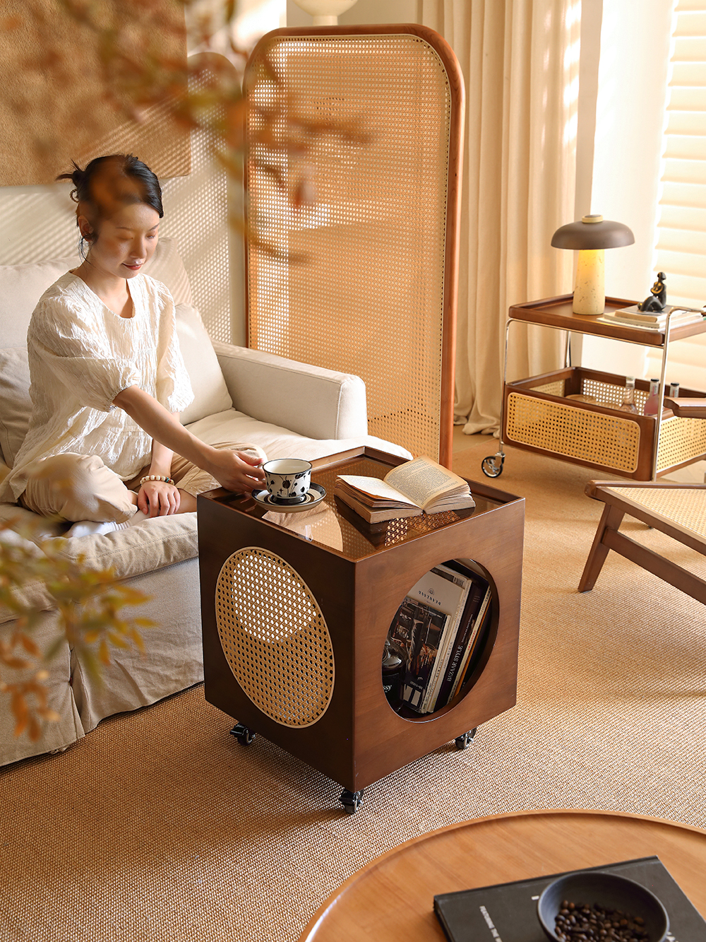 중세 스타일 거실 이동식 커피 테이블 사이드 테이블 소파 침대 옆 테이블 단단한 나무 등나무 작은 테이블 스토리지 랙 코너 테이블