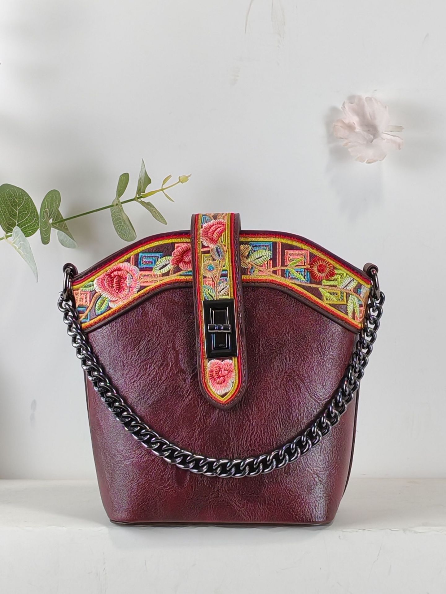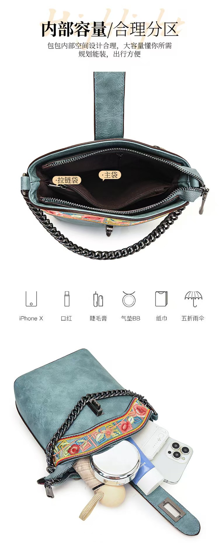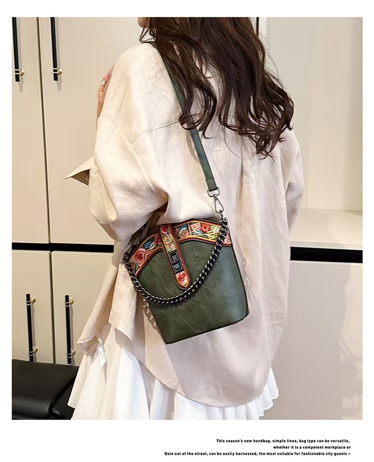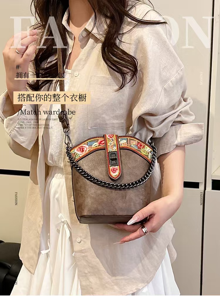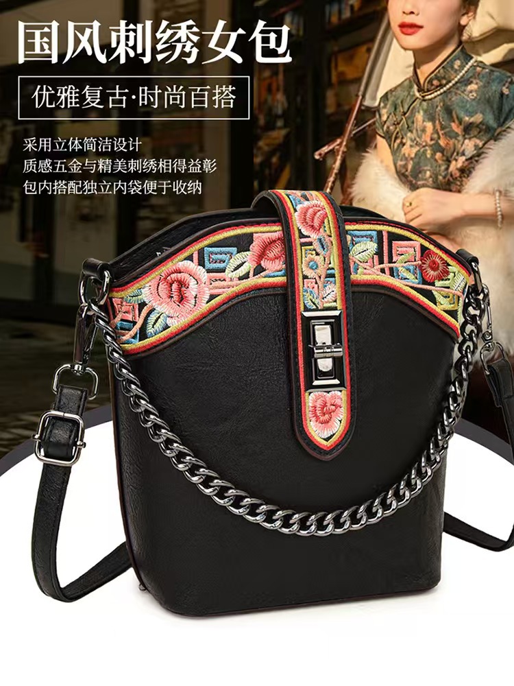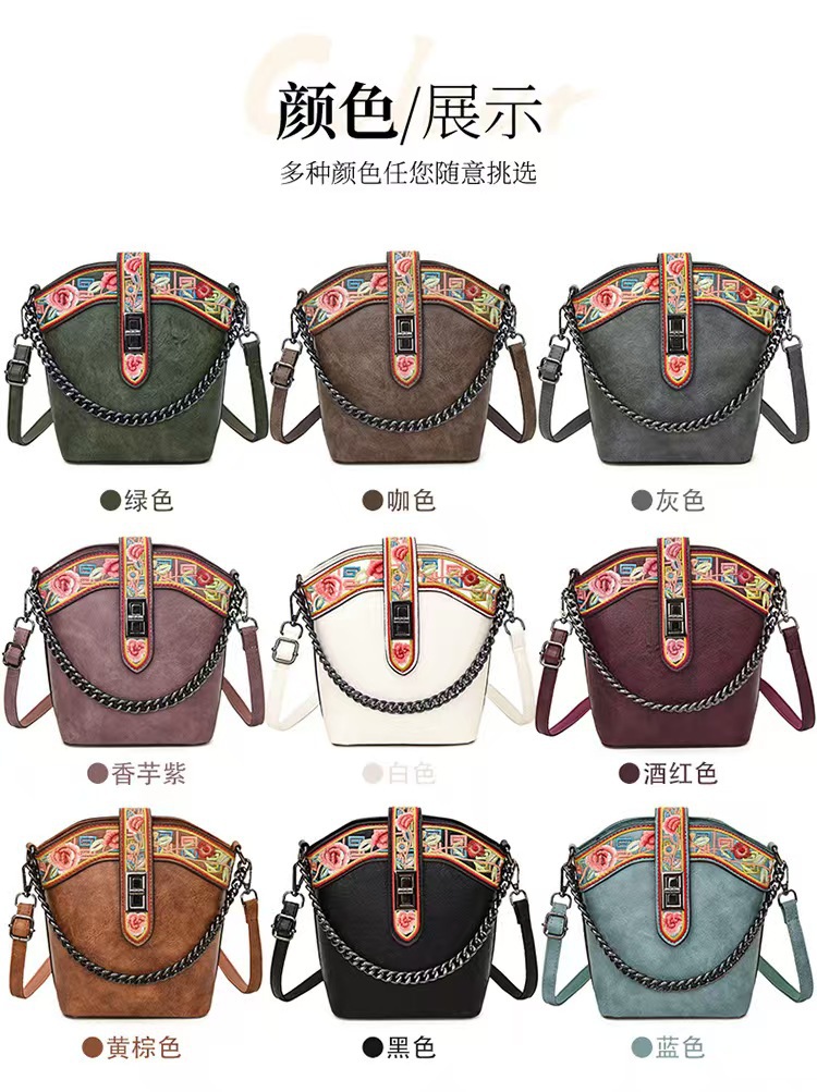 2025 새로운 스타일 자수 중국 스타일 정품 가죽 여성 가방 복고풍 자수 배낭 자수 여성 배낭 기질 고대스토어 가기