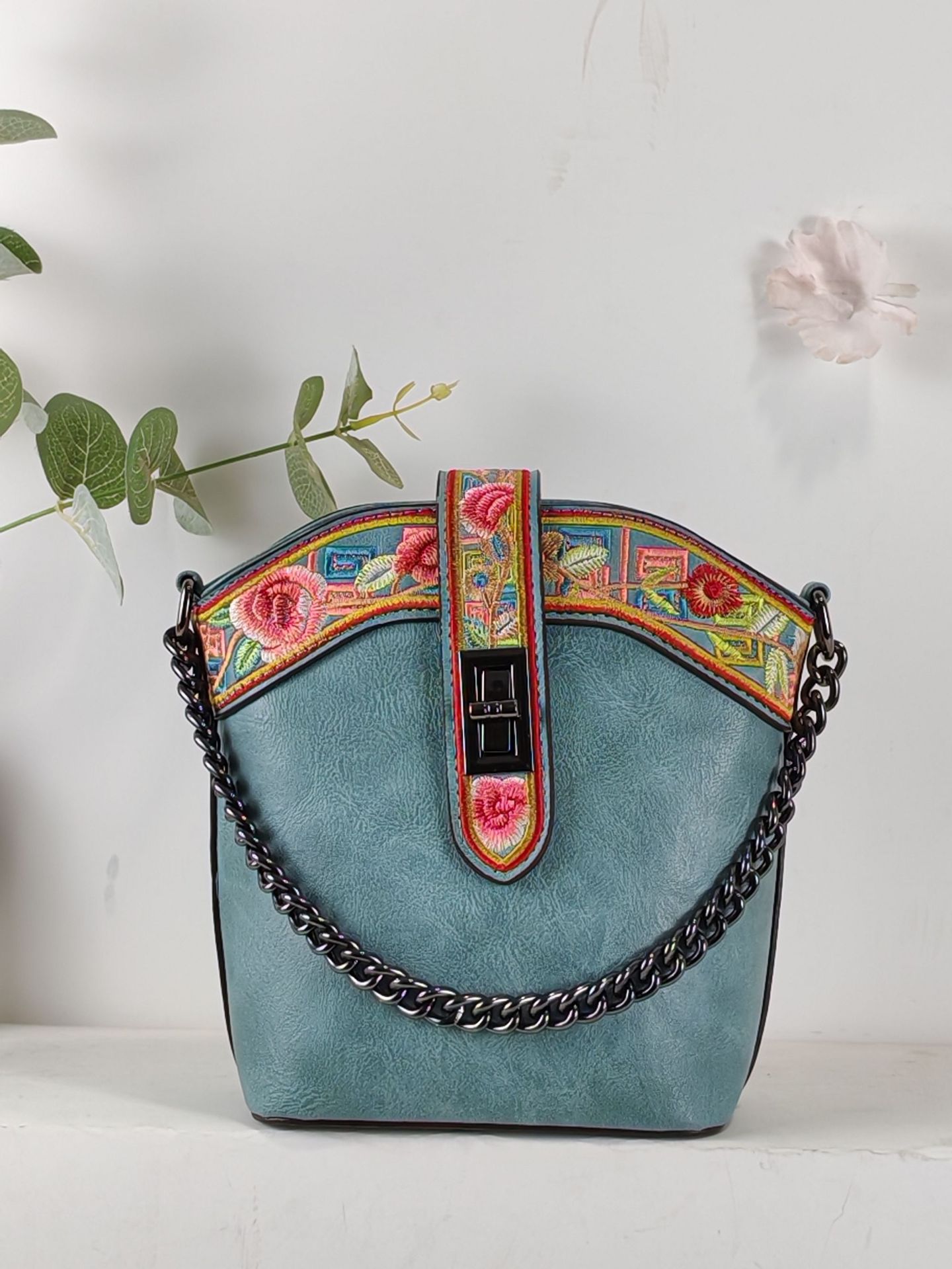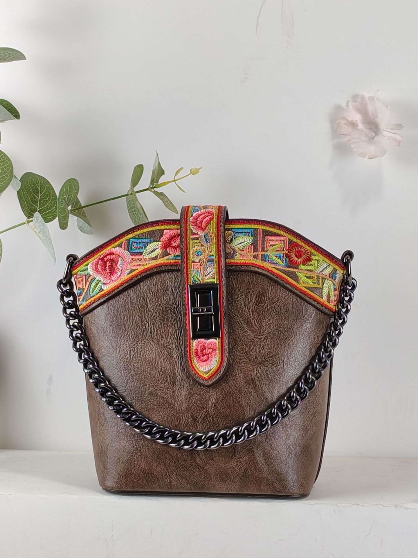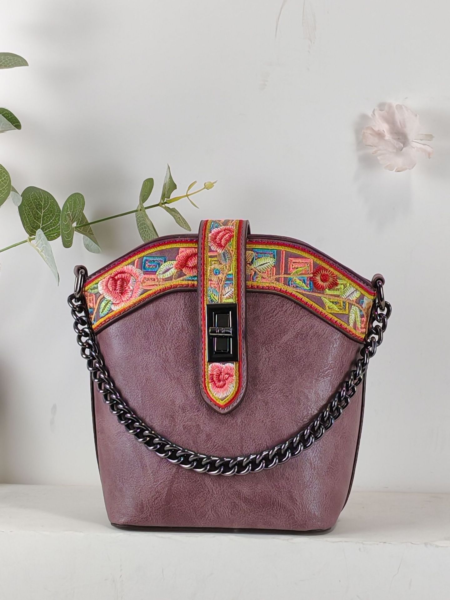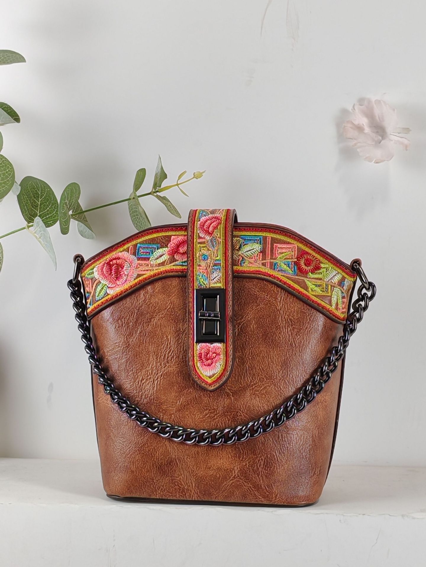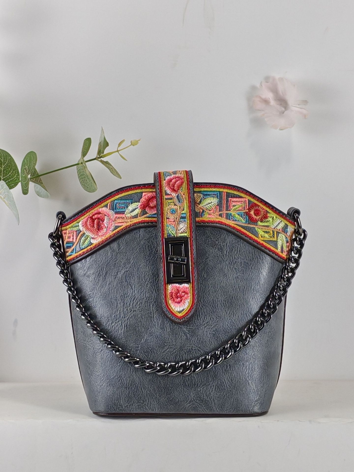 2025 새로운 스타일 자수 중국 스타일 정품 가죽 여성 가방 복고풍 자수 배낭 자수 여성 배낭 기질 고대스토어 가기