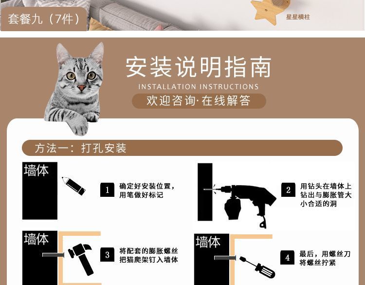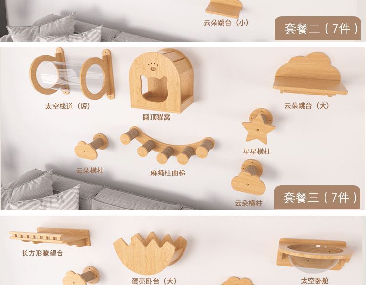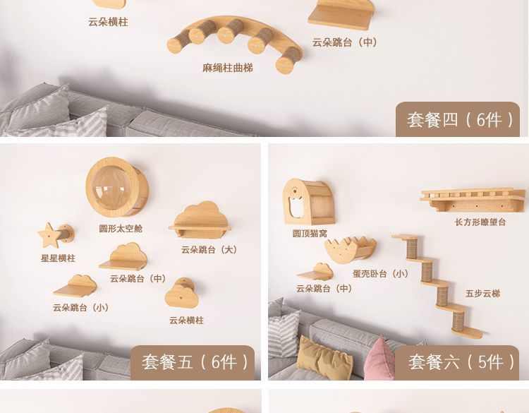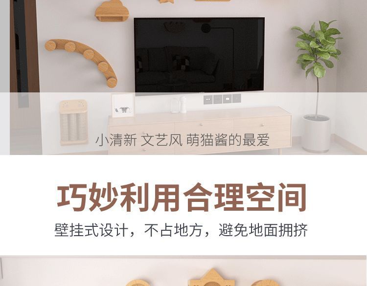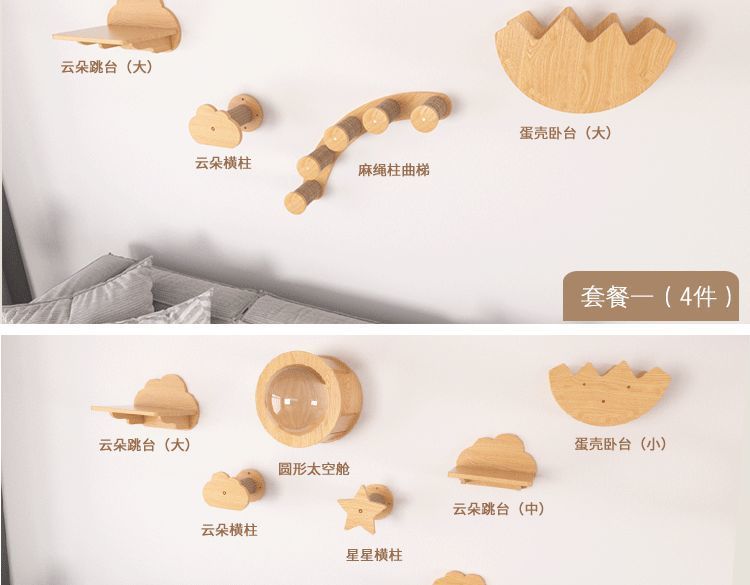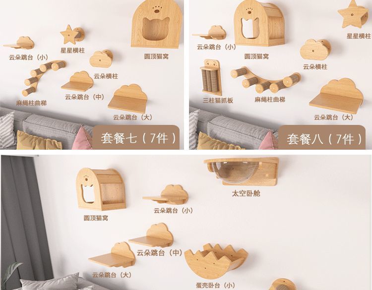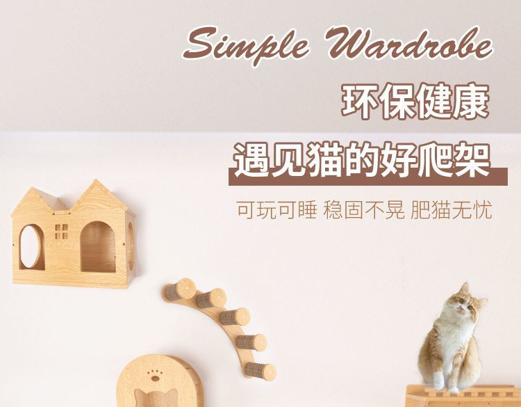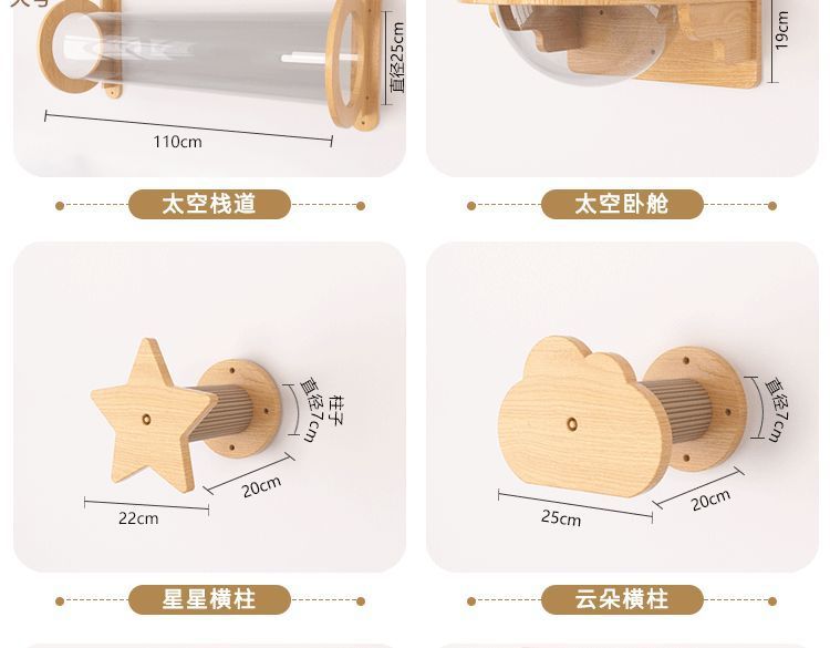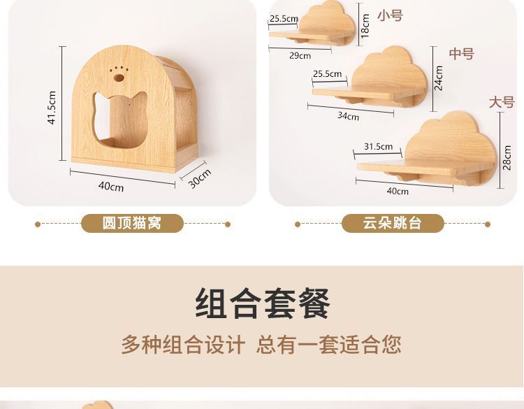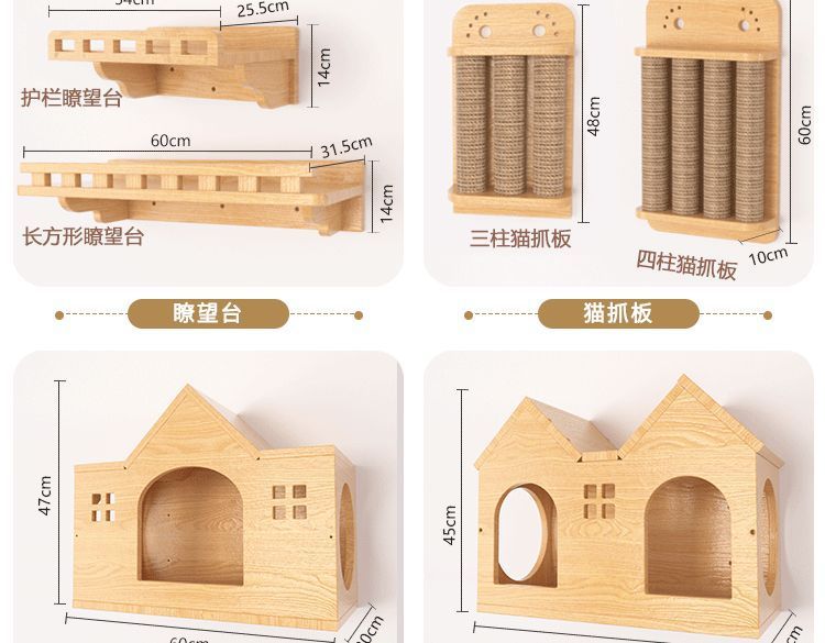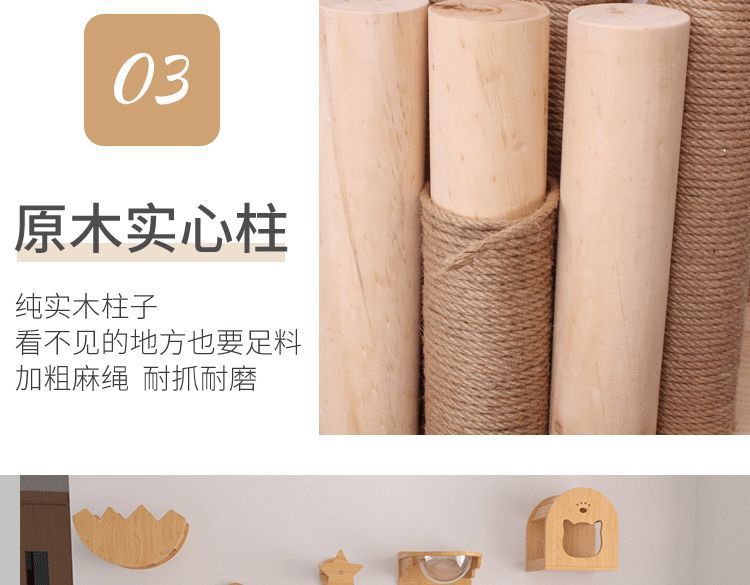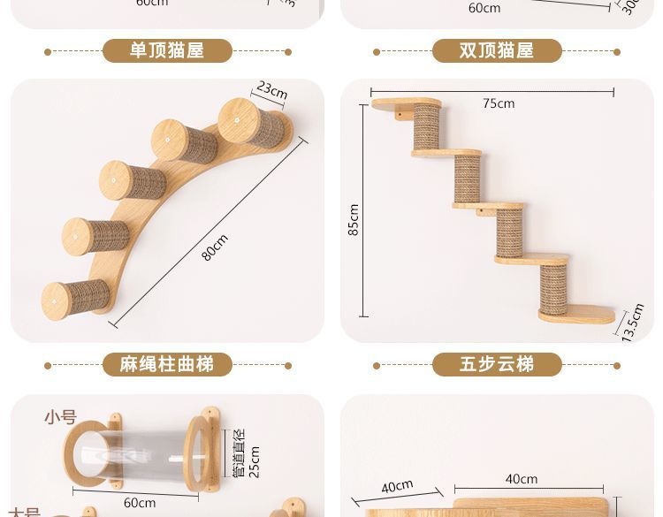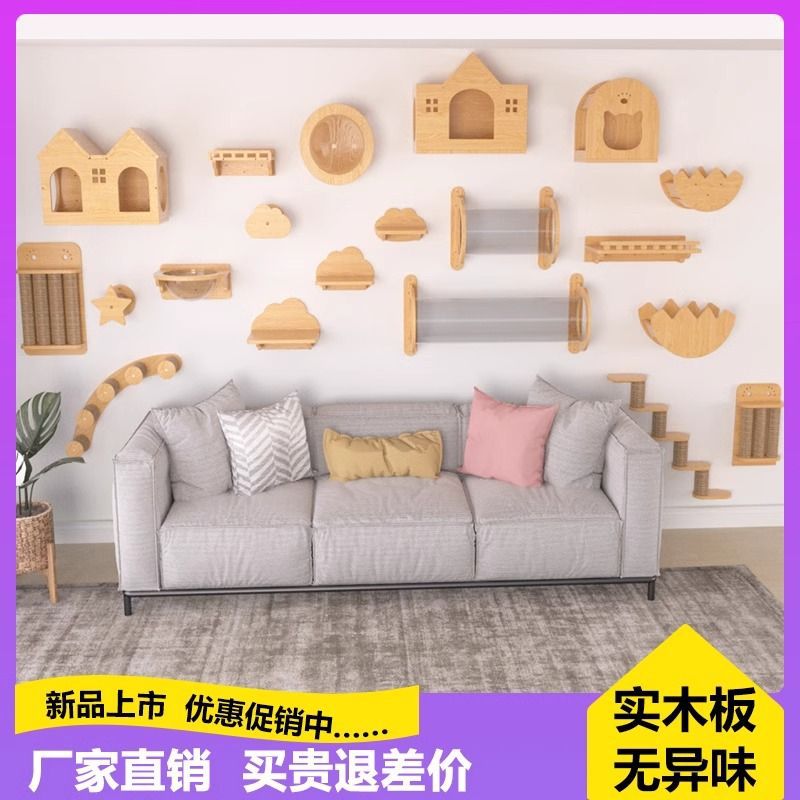 단단한 소나무 벽걸이 형 고양이 클라이밍 프레임, 작은 아파트, 공간을 차지하지 않음, 벽 고양이 빌라, 공중 터널, 고양이 점프 플랫폼 장난감스토어 가기