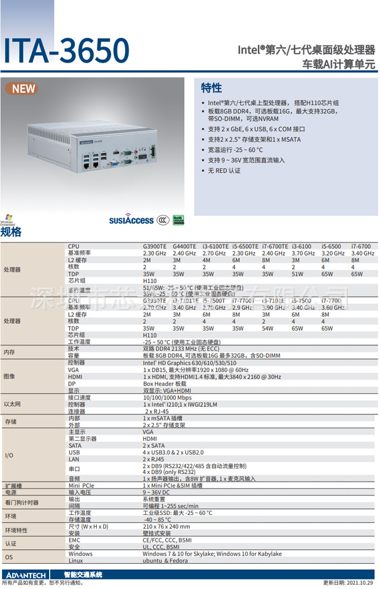 Advantech 차량 탑재 AI 컴퓨팅 ITA-3650 팬리스 산업용 컴퓨터 6/7세대 데스크탑 프로세서 산업용 컴퓨터스토어 가기