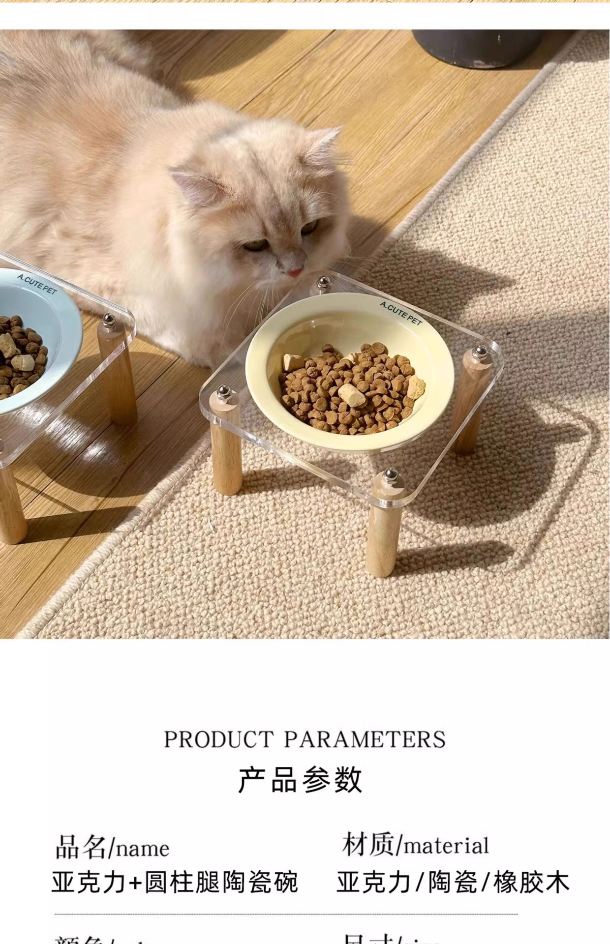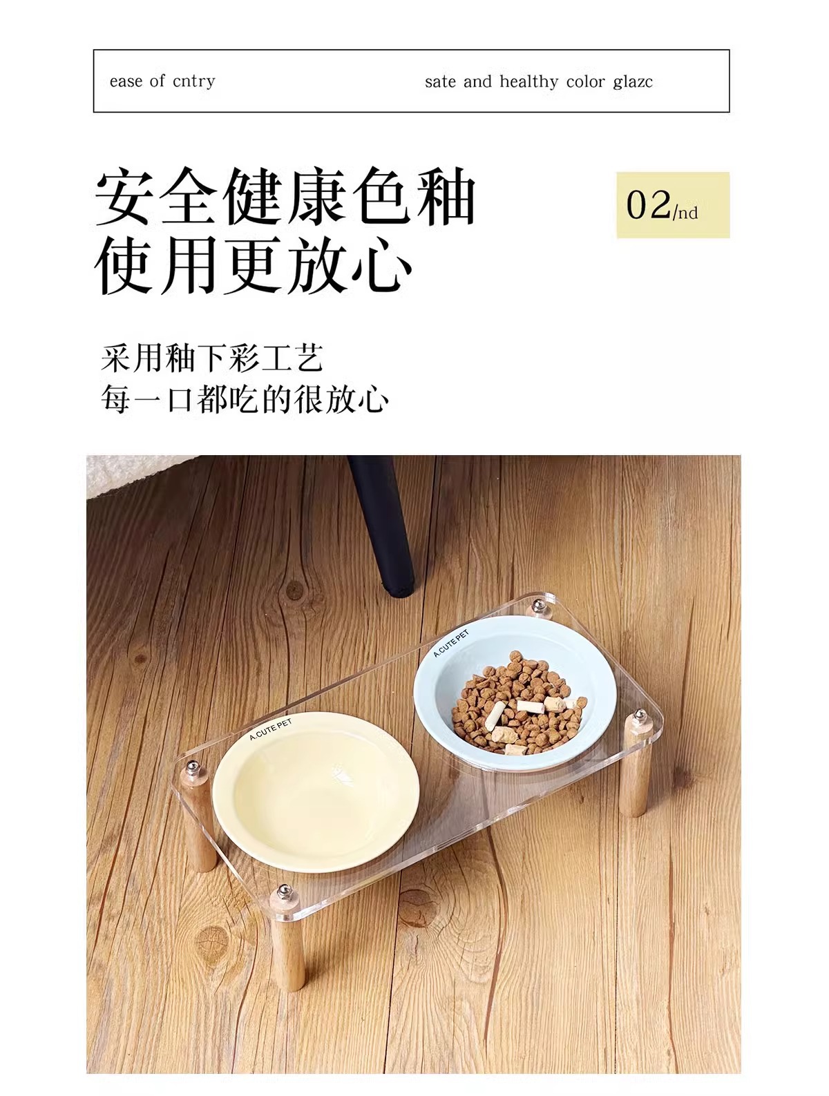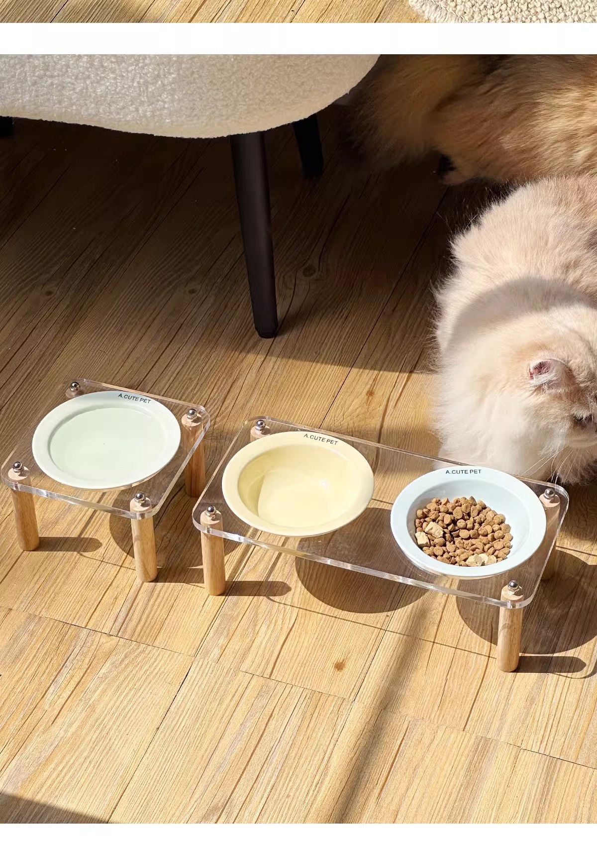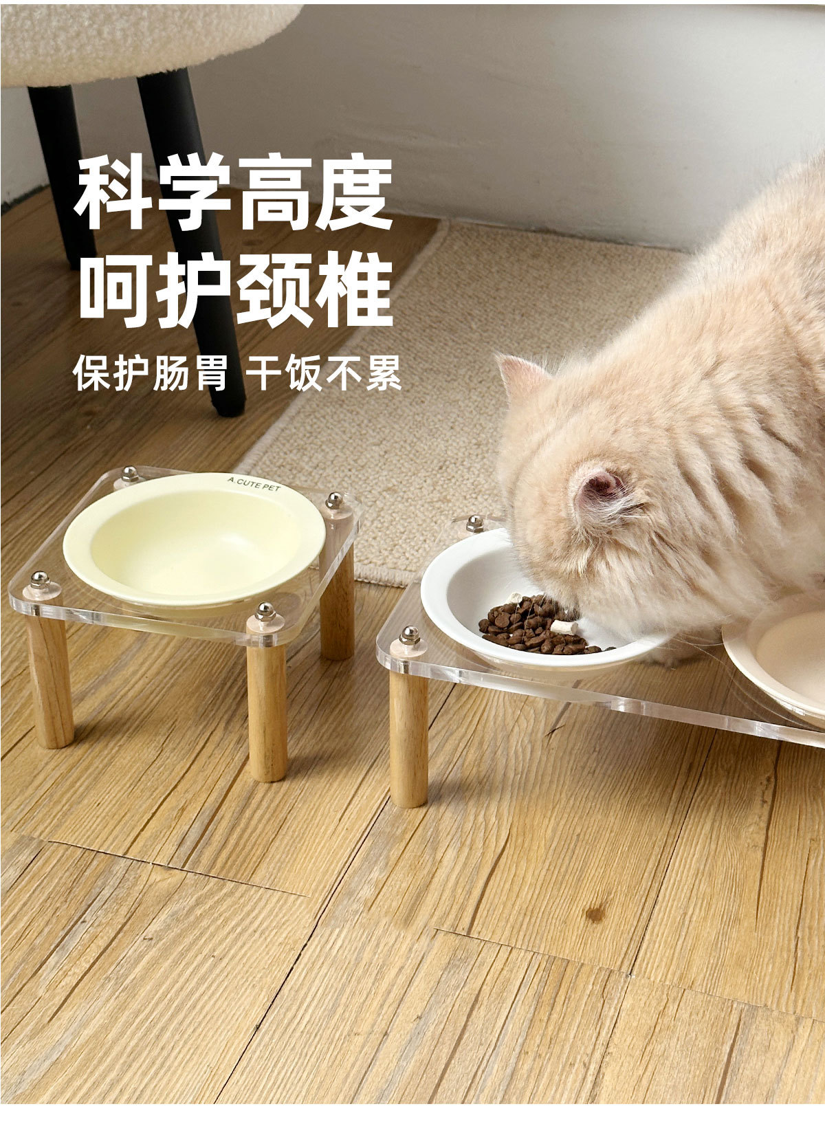 고양이 그릇 더블 그릇 아크릴 세라믹 고양이 음식 그릇 안티 노크 개 그릇 개 그릇 높은 발 고양이 먹이 그릇 애완 동물 용품