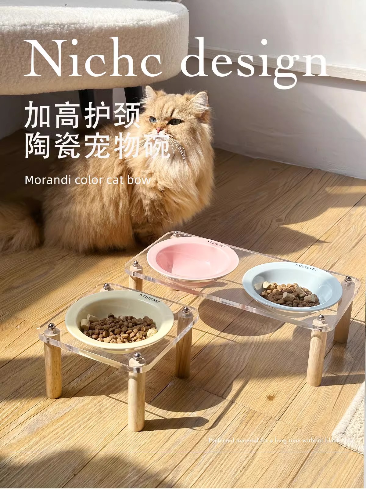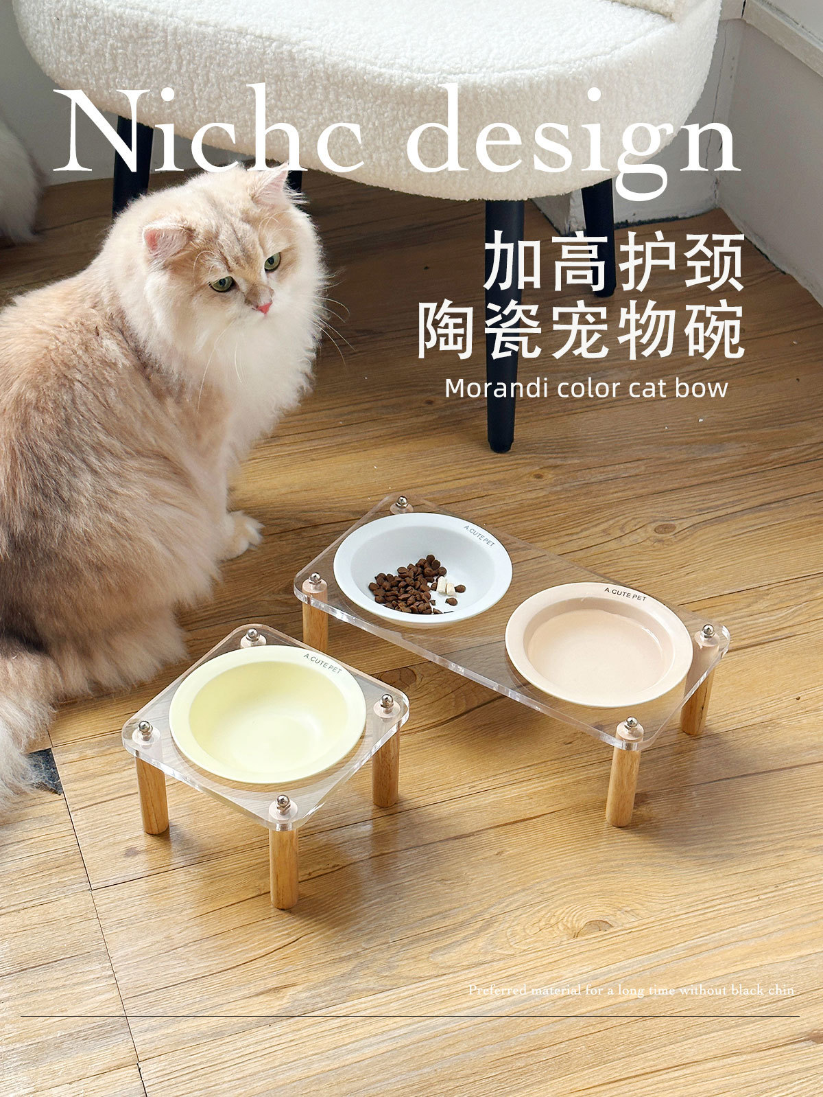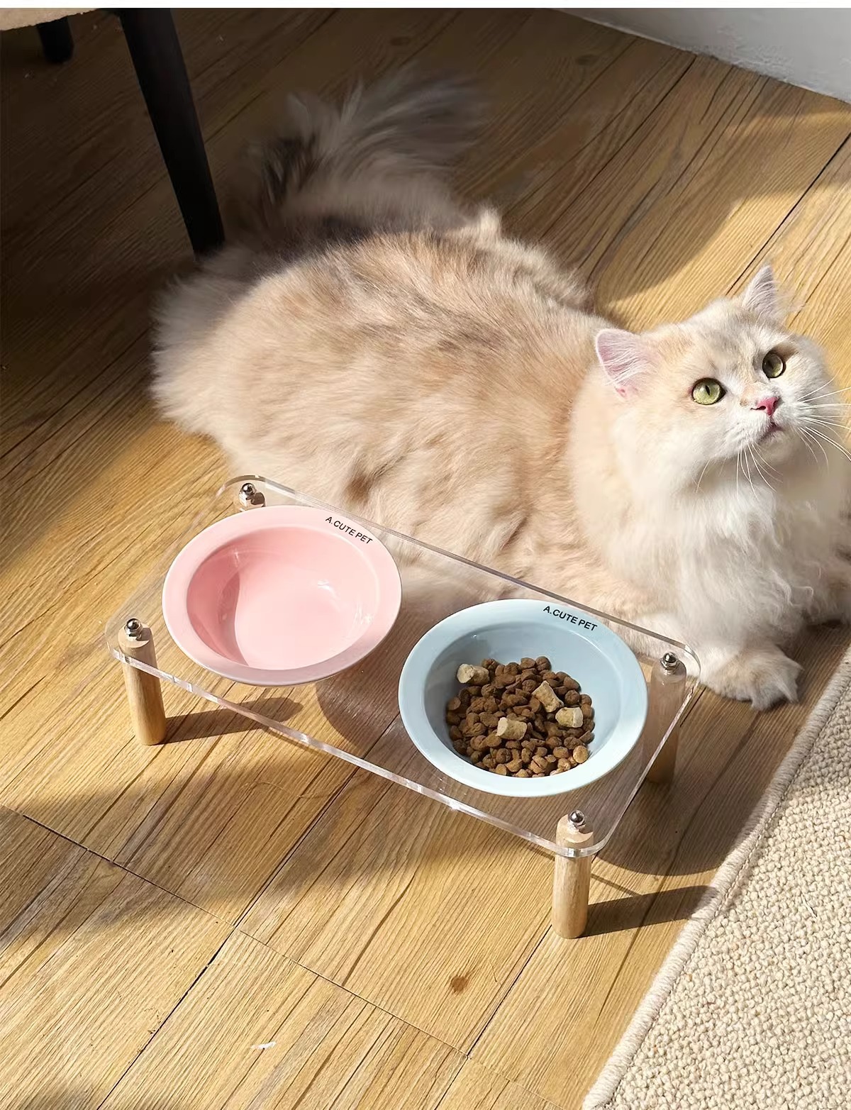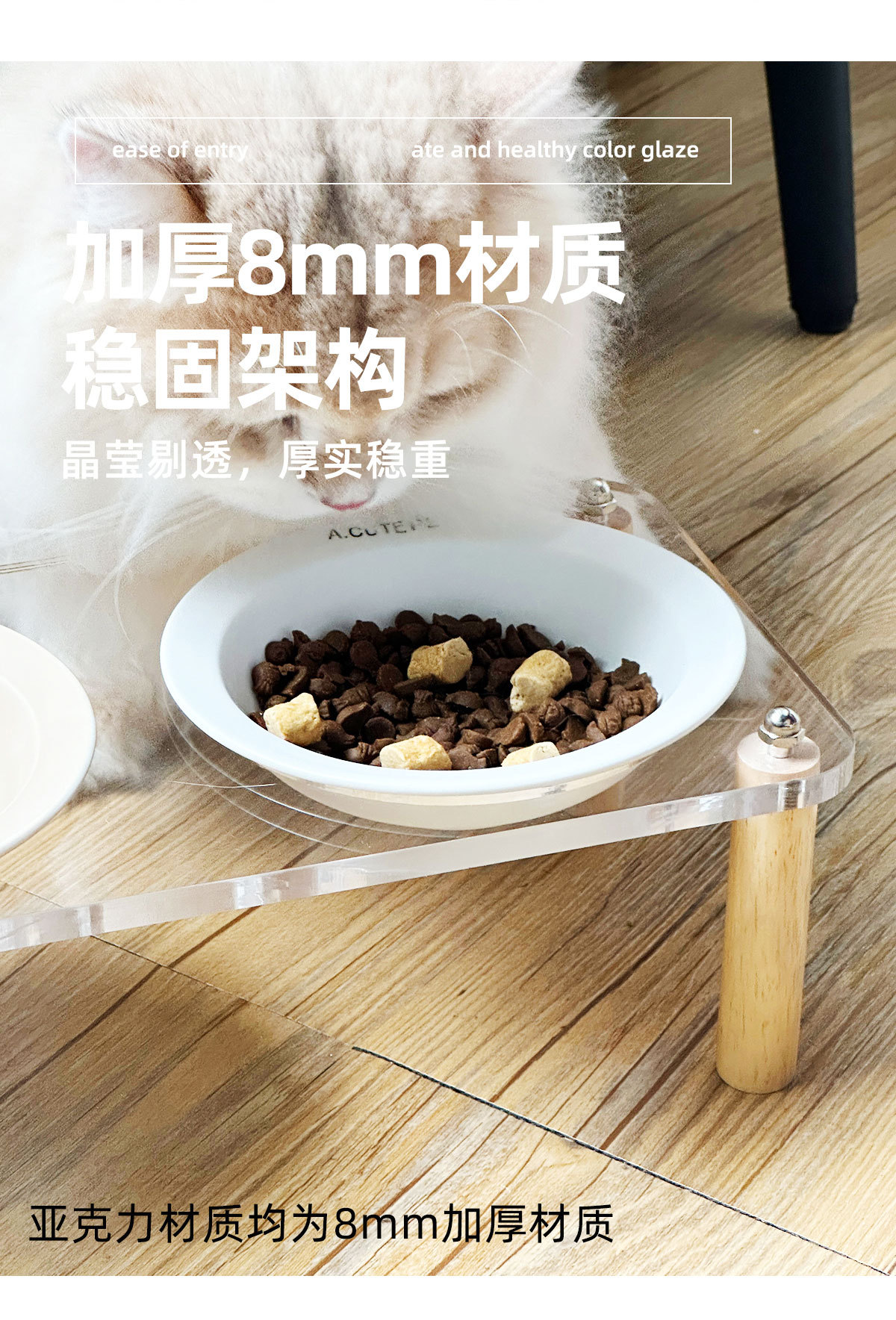 고양이 그릇 더블 그릇 아크릴 세라믹 고양이 음식 그릇 안티 노크 개 그릇 개 그릇 높은 발 고양이 먹이 그릇 애완 동물 용품