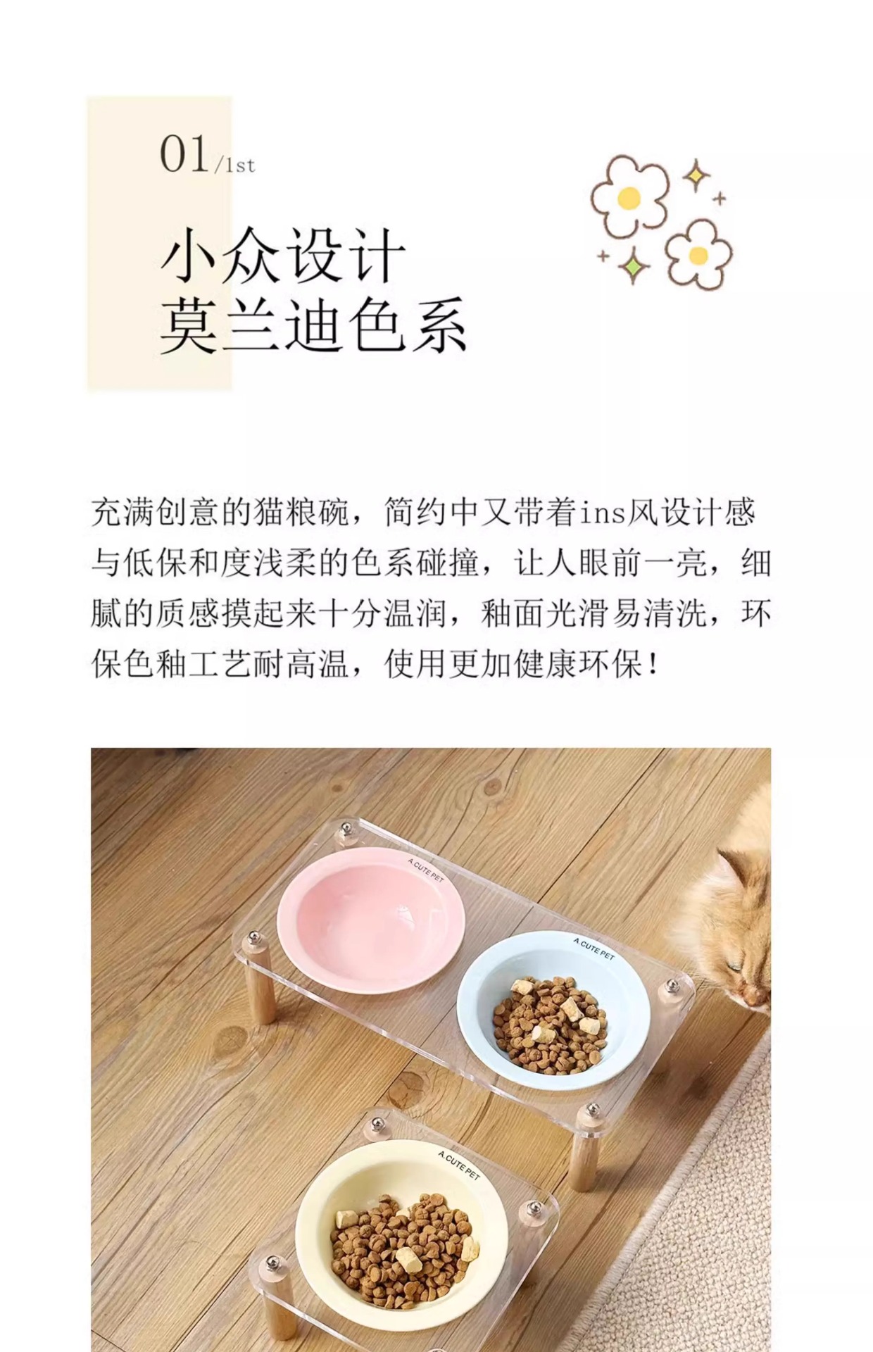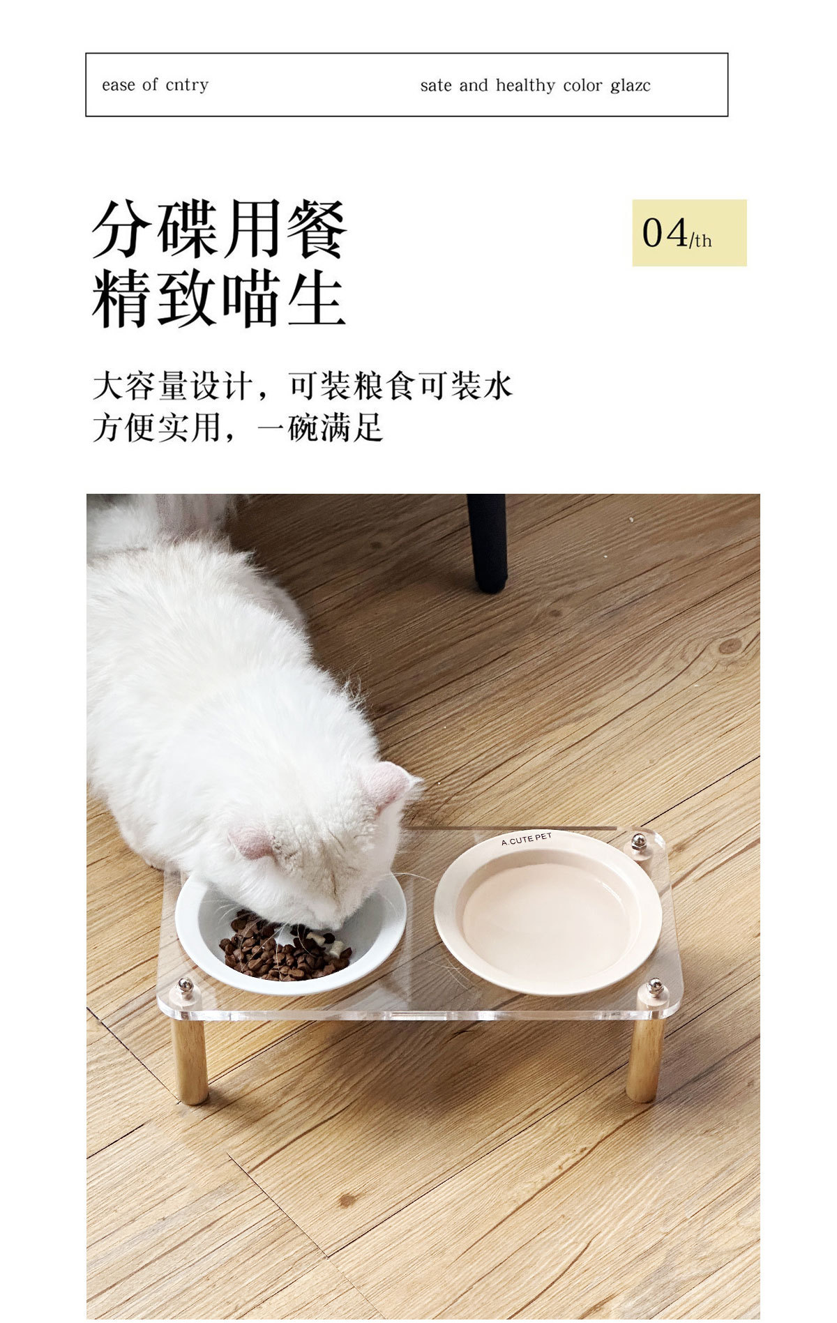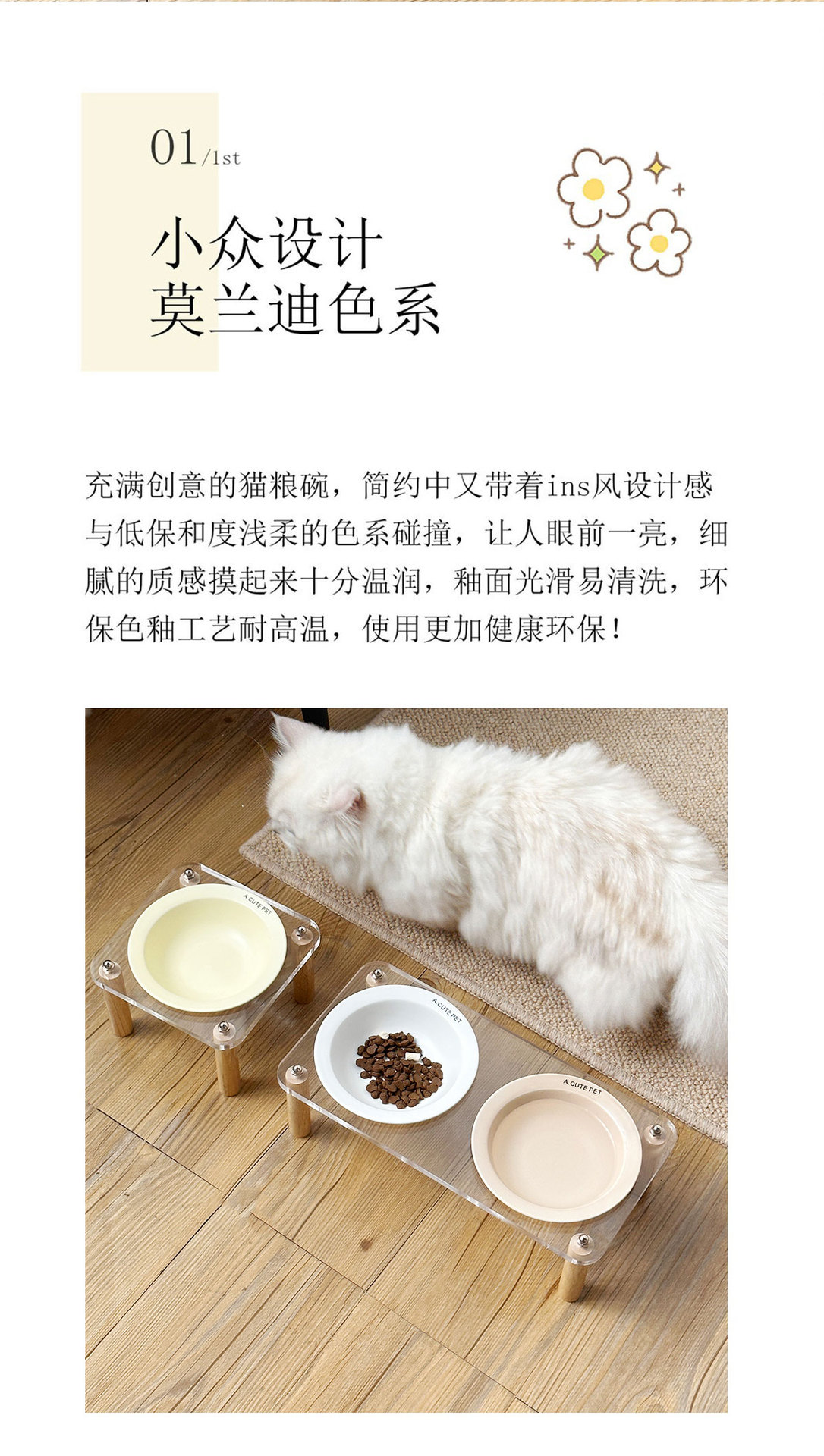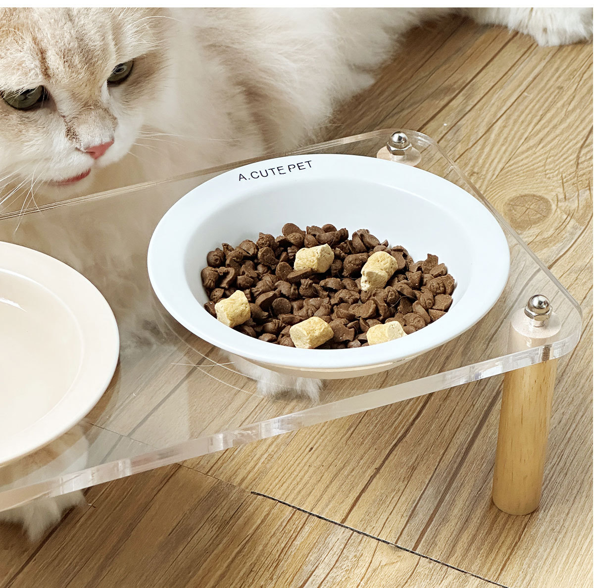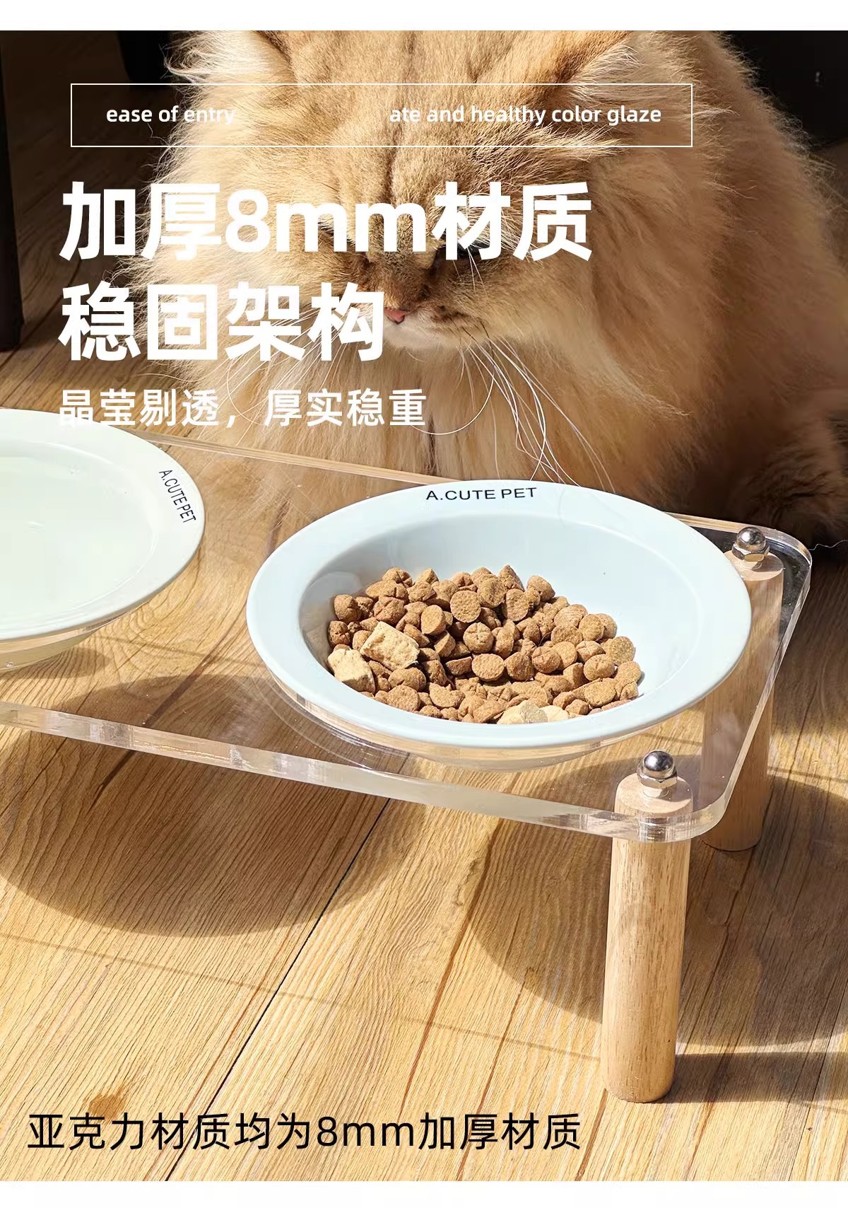고양이 그릇 더블 그릇 아크릴 세라믹 고양이 음식 그릇 안티 노크 개 그릇 개 그릇 높은 발 고양이 먹이 그릇 애완 동물 용품