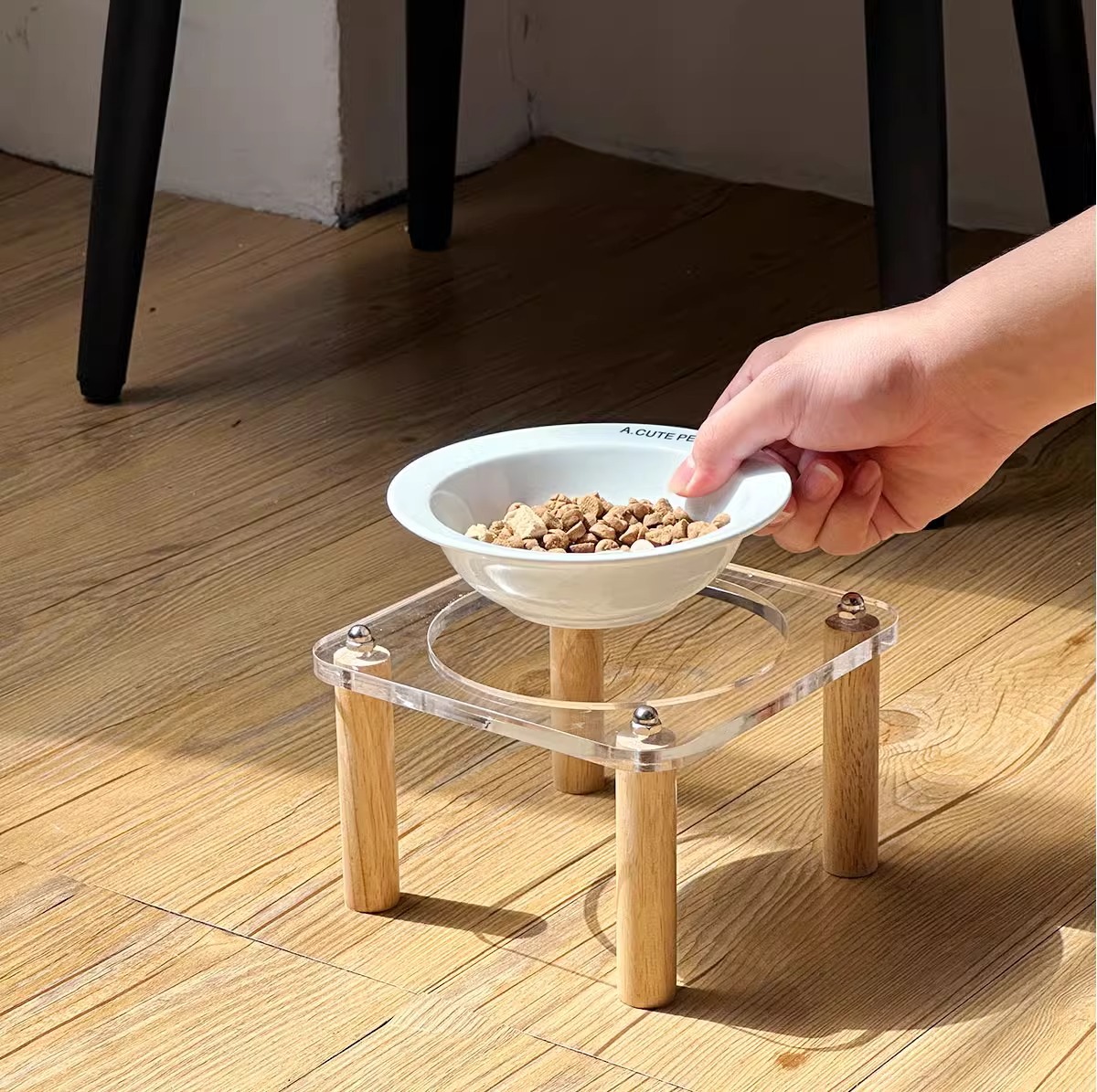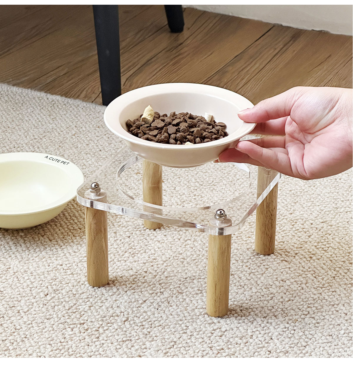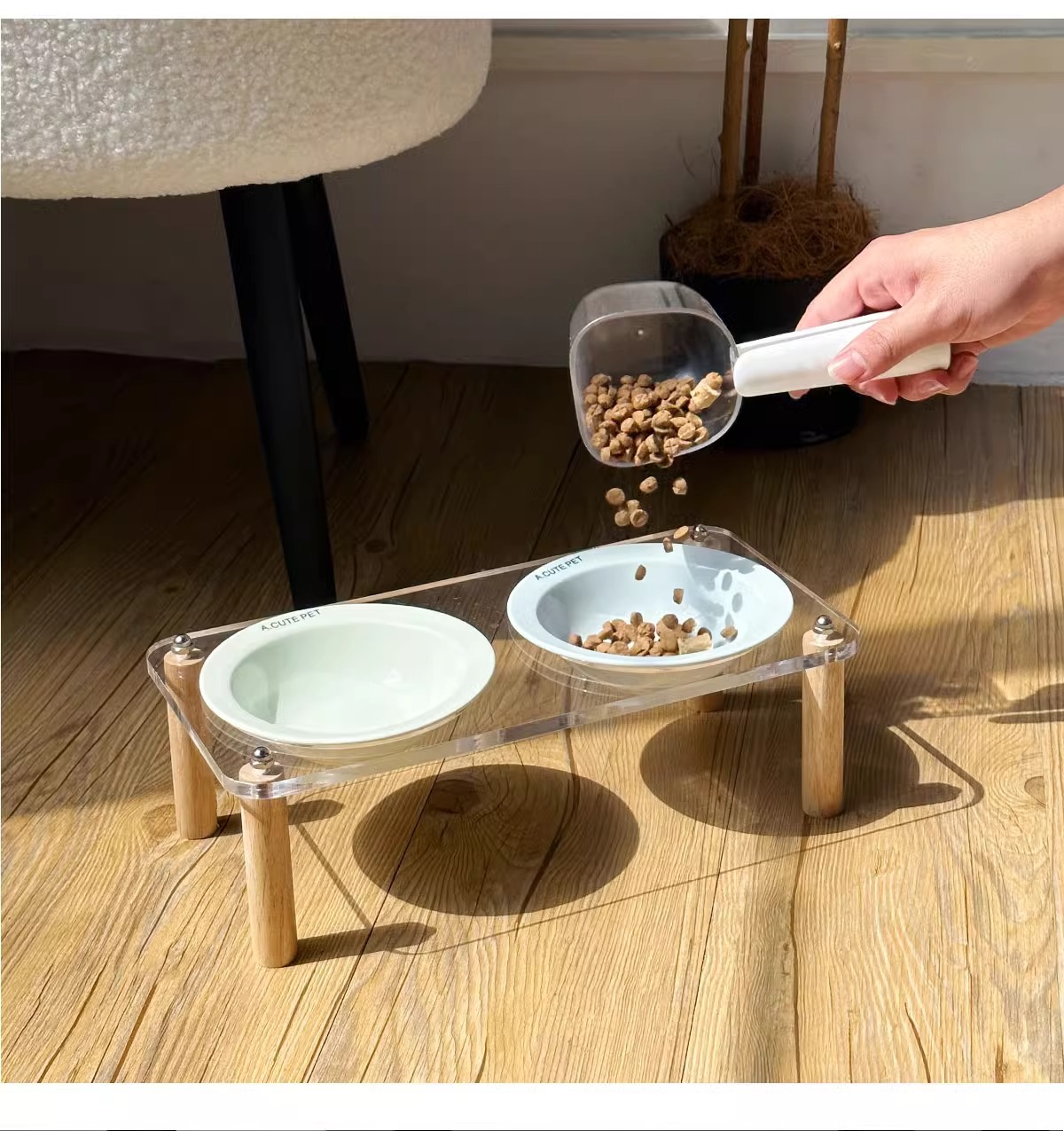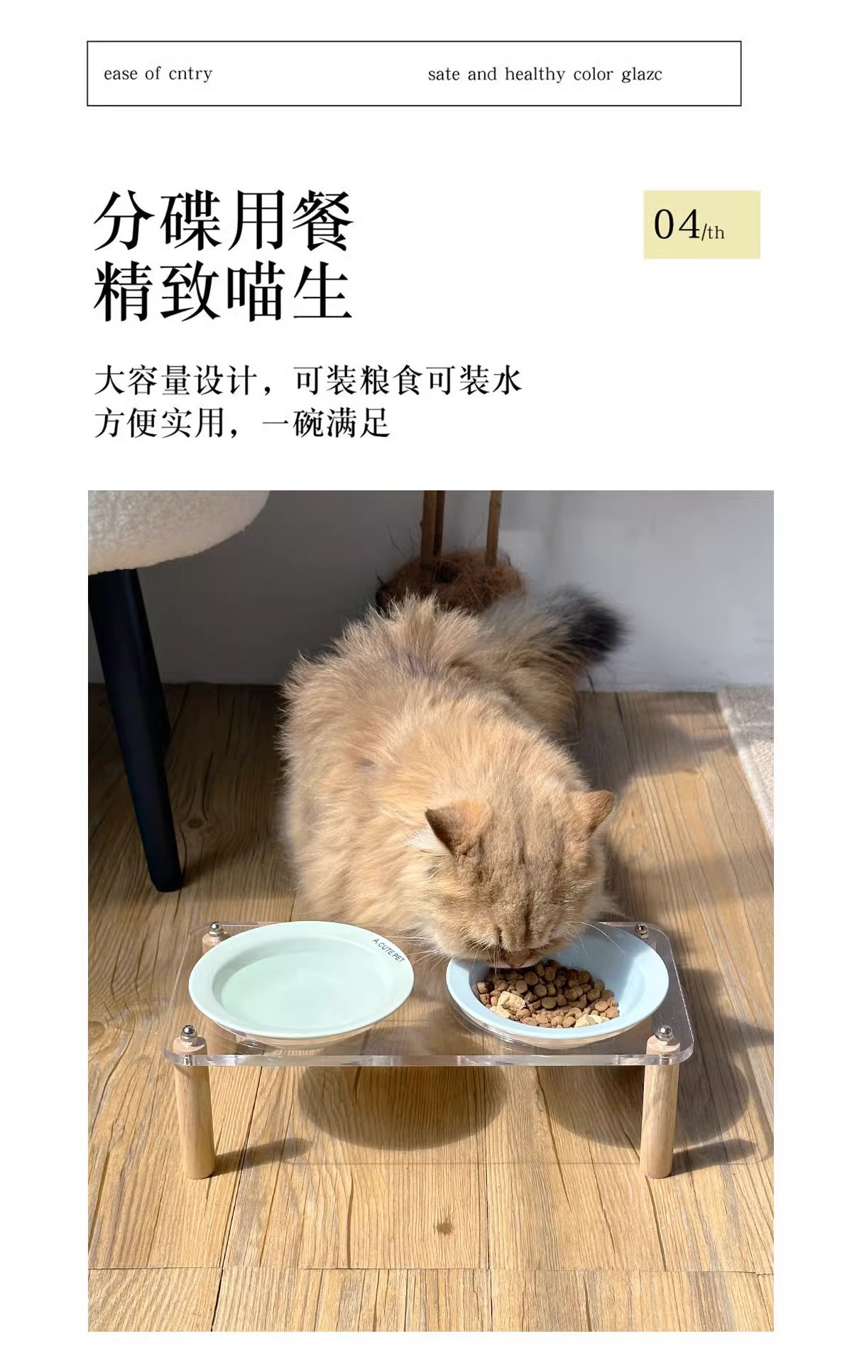 고양이 그릇 더블 그릇 아크릴 세라믹 고양이 음식 그릇 안티 노크 개 그릇 개 그릇 높은 발 고양이 먹이 그릇 애완 동물 용품