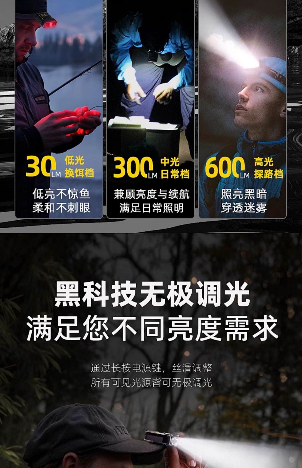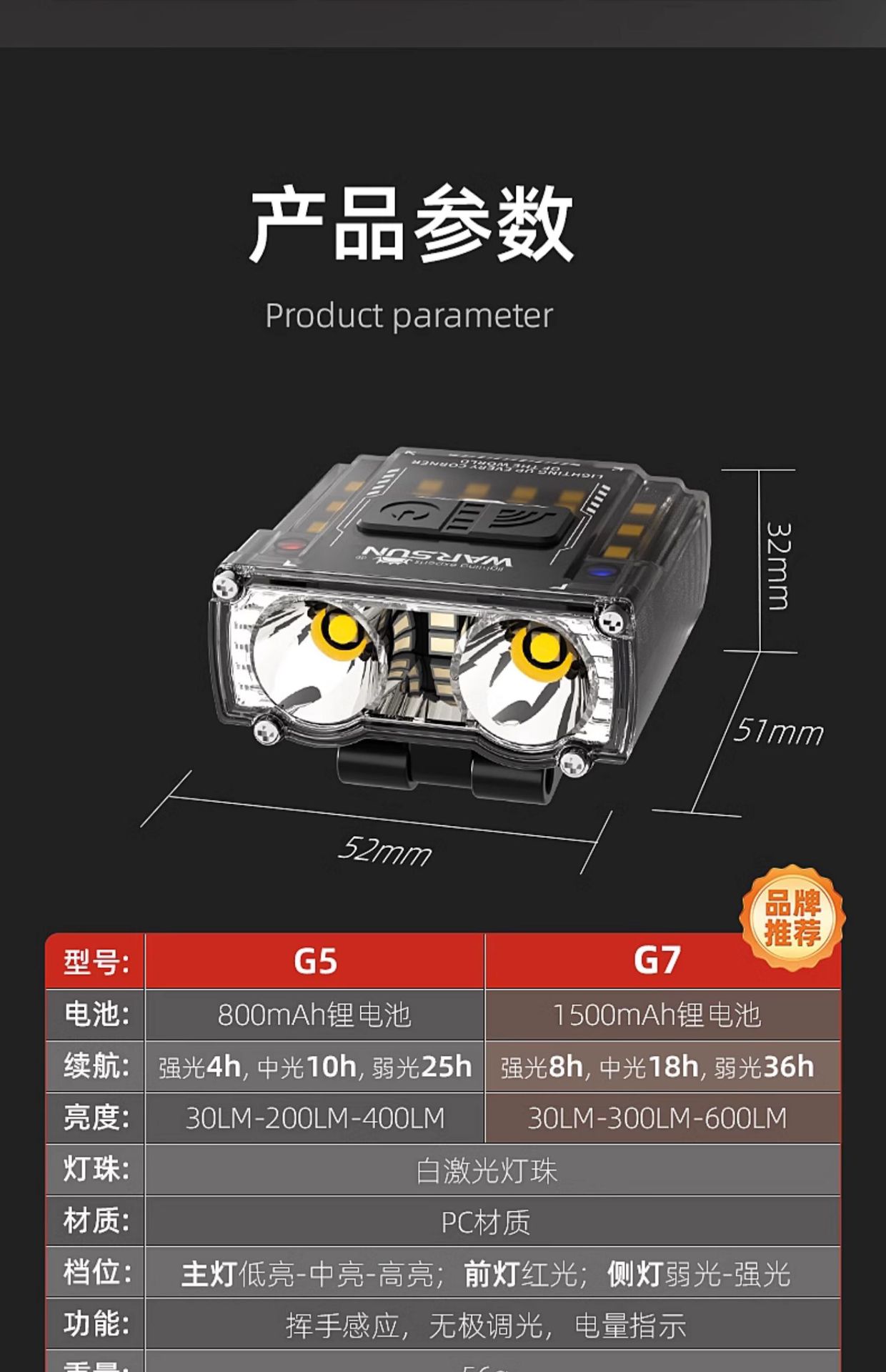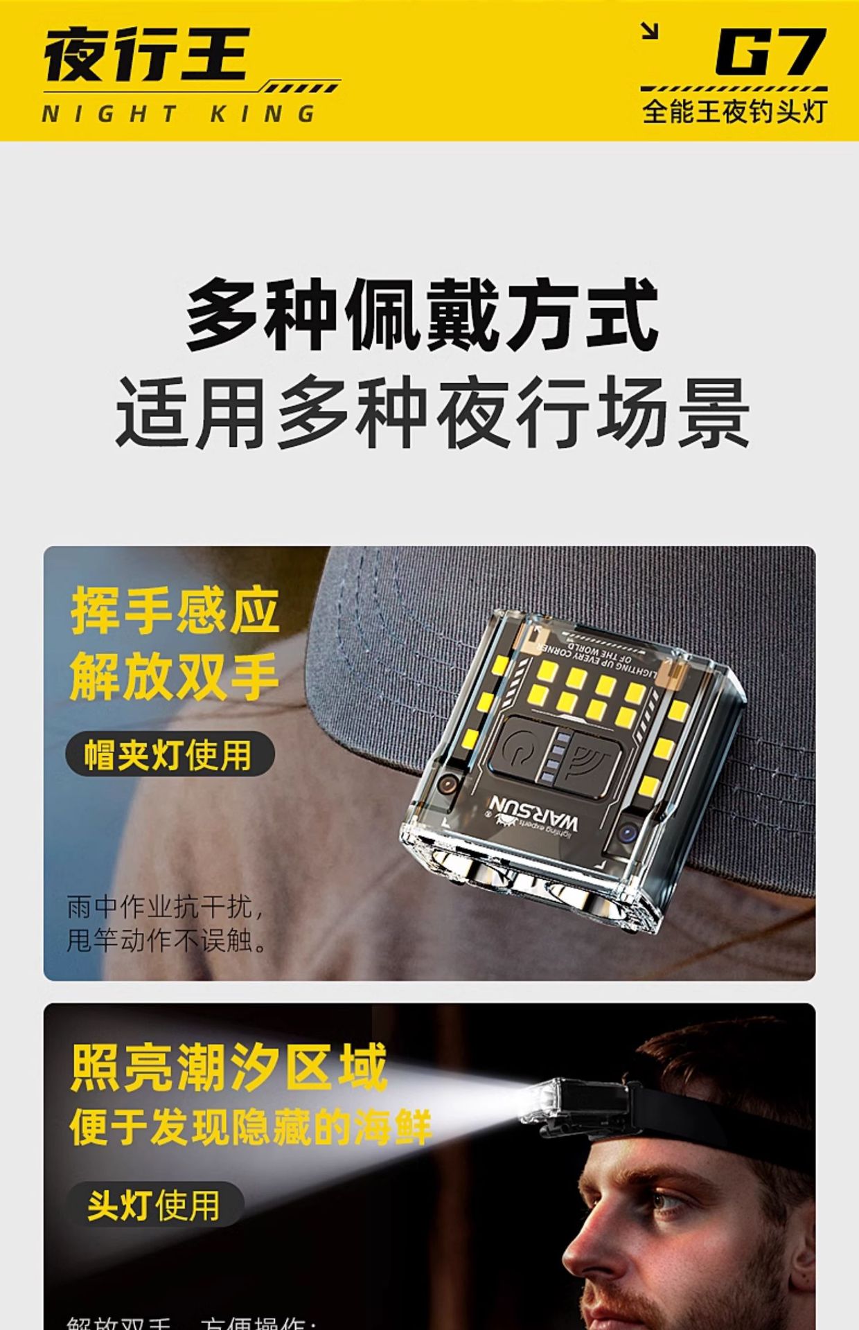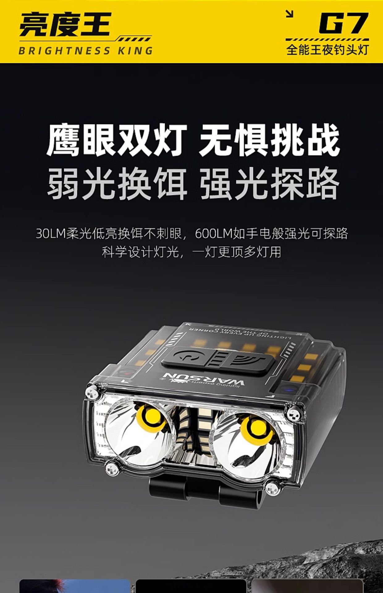 Volson 야간 낚시 헤드라이트 G7 강한 빛 슈퍼 밝은 충전식 슈퍼 긴 배터리 수명 유도 낚시 특수 헤드 장착형 모자 클립 라이트