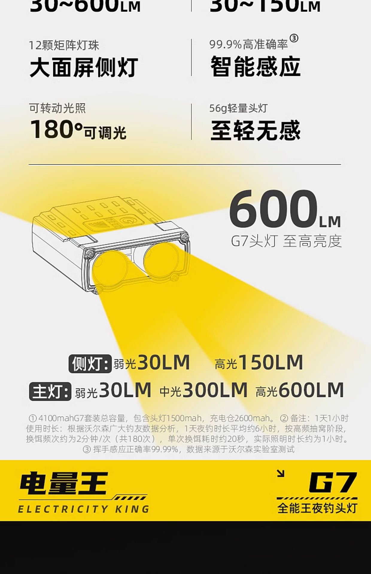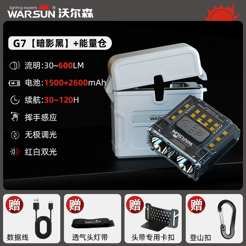 • [G7 Shadow Black + 에너지 빈] 배터리 수명 30~120H | 600루멘 | 4100mAh | 빨간색과 흰색 빛