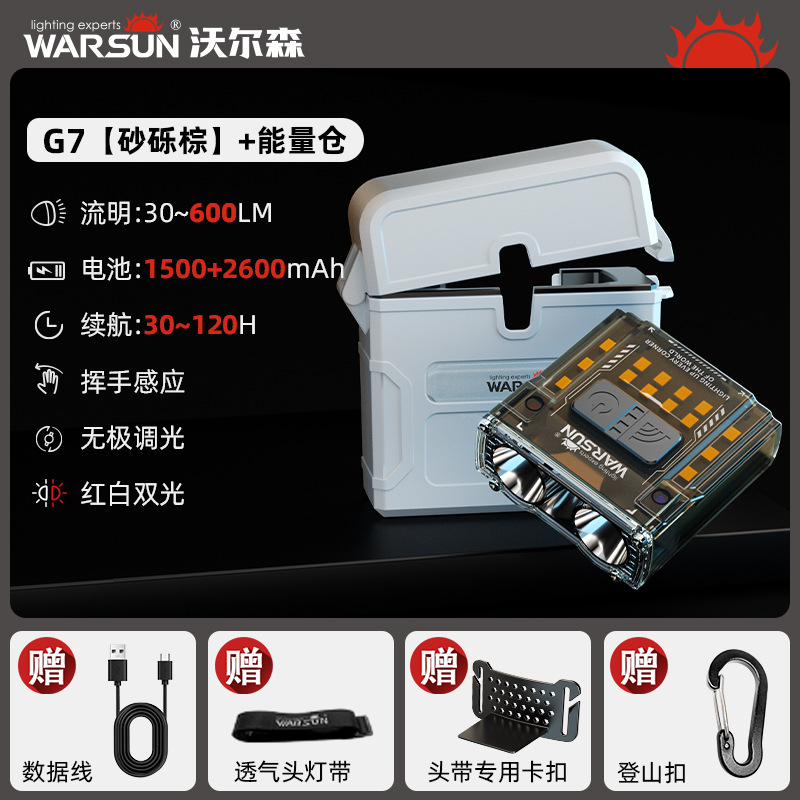 • [G7 그래블 브라운 + 에너지통] 배터리 수명 30~120H|600루멘|4100mAh|빨간색과 흰색 빛