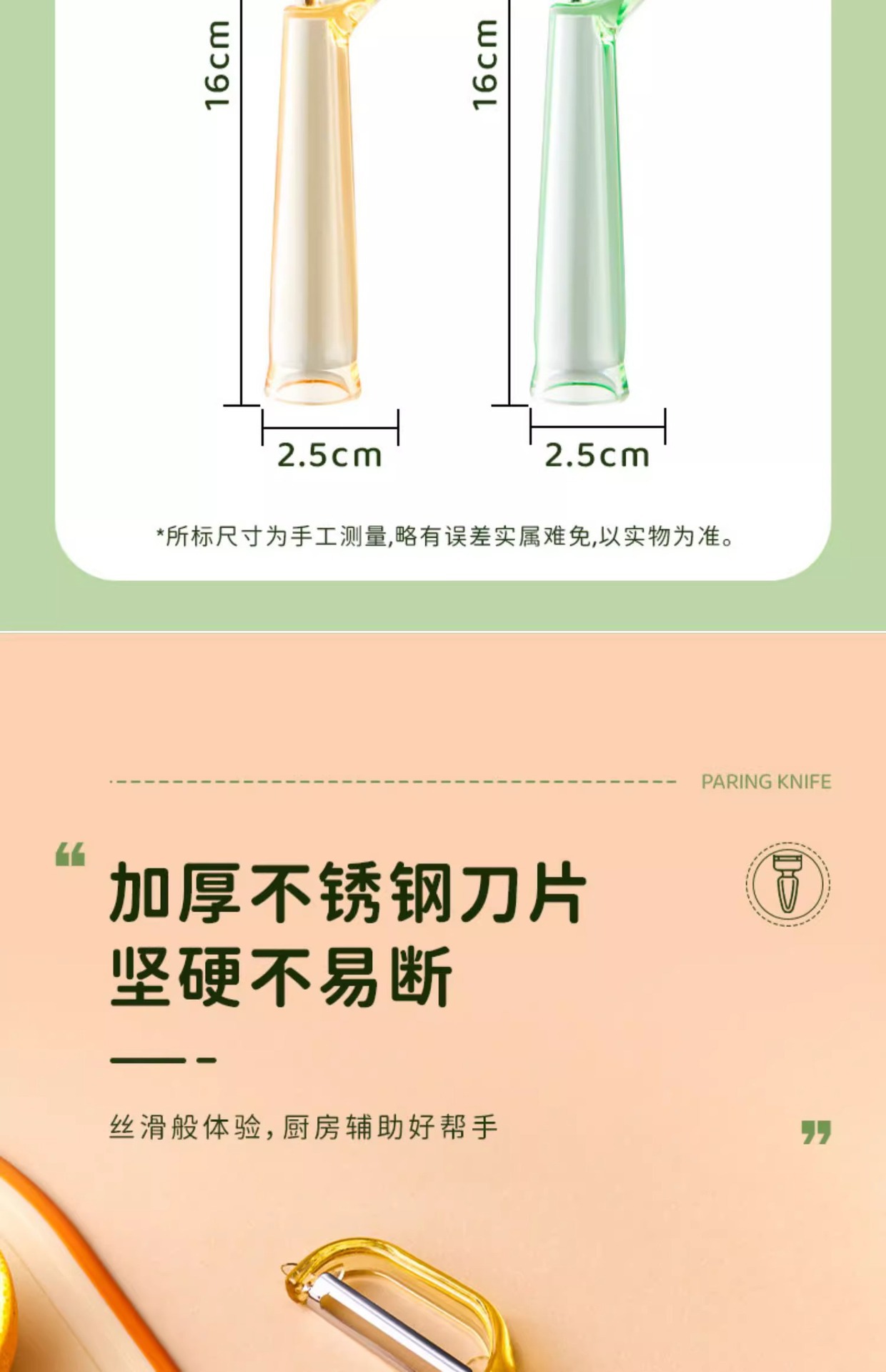 2-in-1 과일 필링 나이프 두꺼운 스테인레스 스틸 필러 주방 필링 스크레이퍼 과일 및 야채 필링 나이프