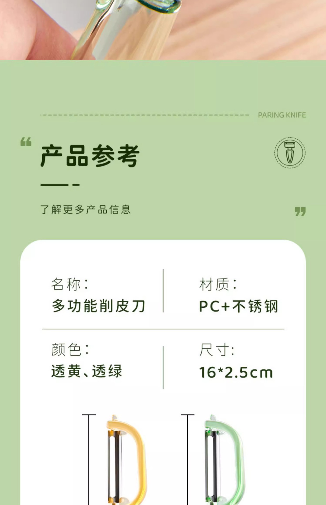 • 스탠드업 패링 나이프 [투명 그린] 1팩