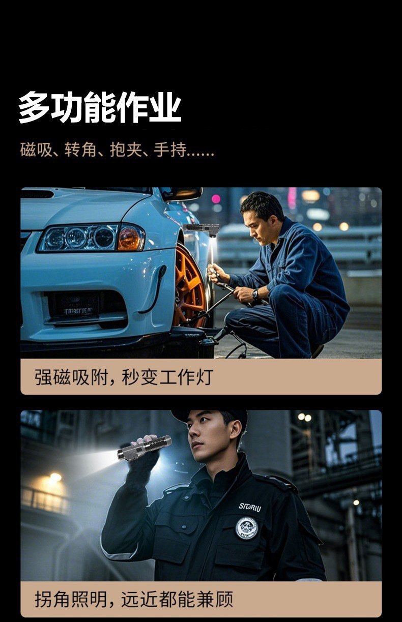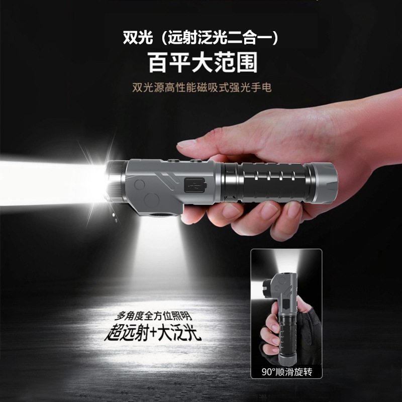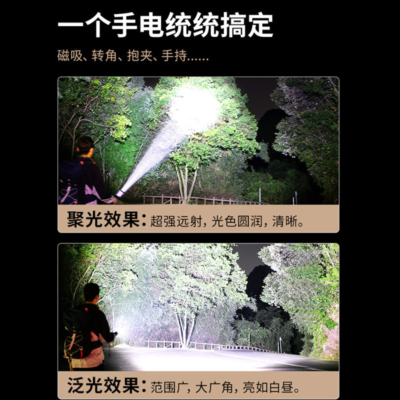 강한 빛 충전식 손전등 슈퍼 밝은 장거리 투광 조명 소형 휴대용 레이저 자기 코너 작업 조명 야외 방수