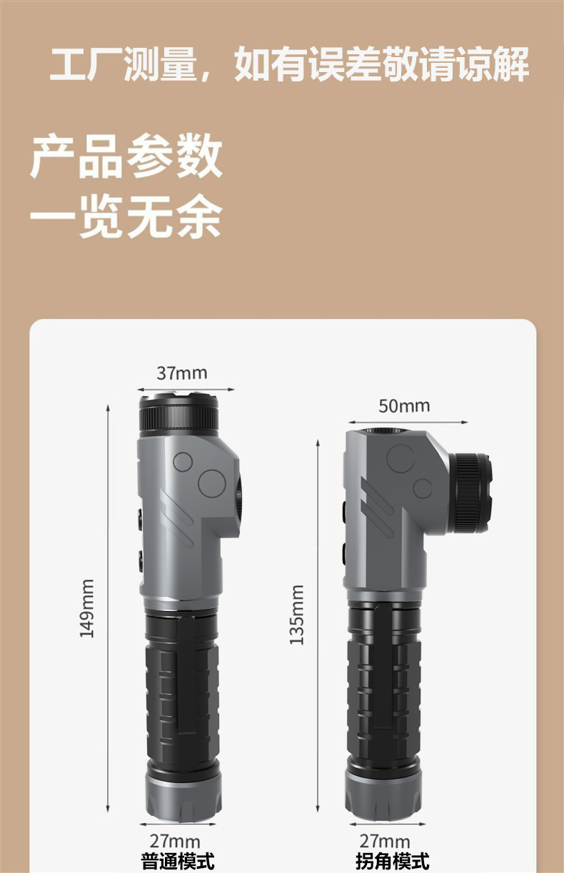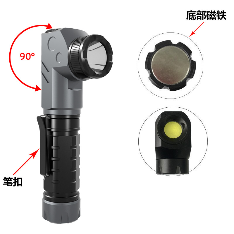 • 90도 회전 이중 광원 손전등(단일 램프) - 검정색 회색