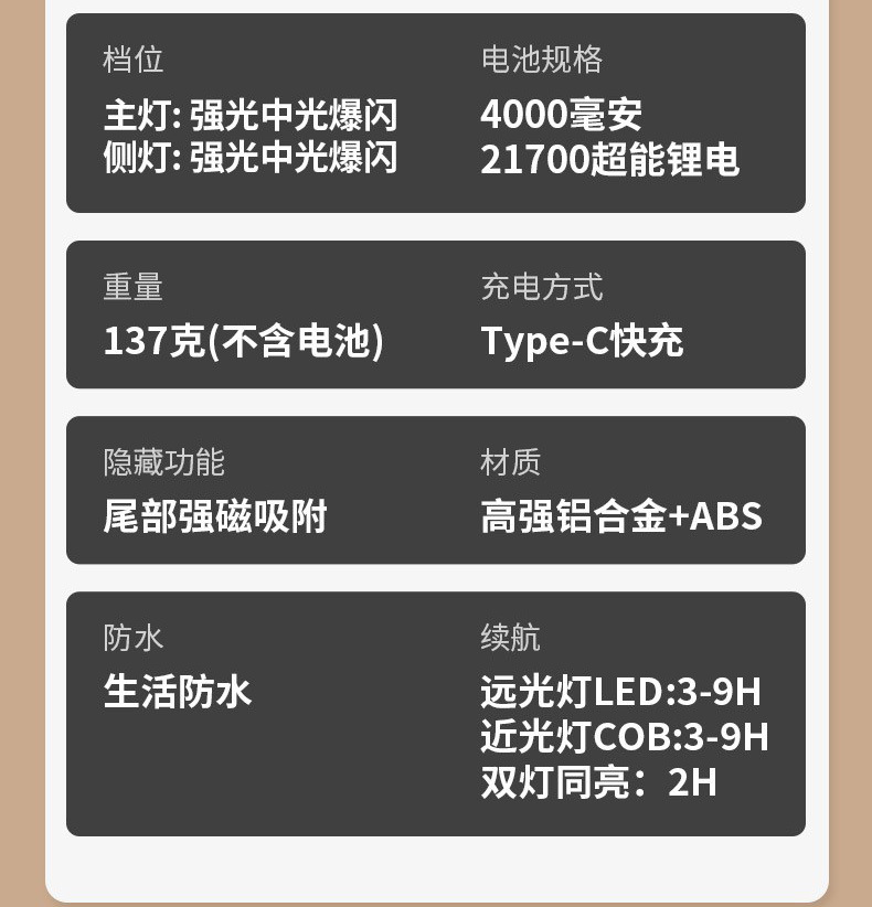 • 90도 회전 이중 광원 손전등(21700 리튬 배터리 1개 + 충전 케이블) - 검정색 회색