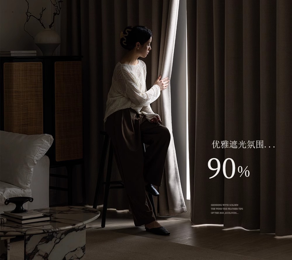 현대 심플 플레인 커튼 새로운 스타일 헤링맨 텍스처 라이트 럭셔리 하이 레벨 Chenille 커튼 음영 침실 거실스토어 가기