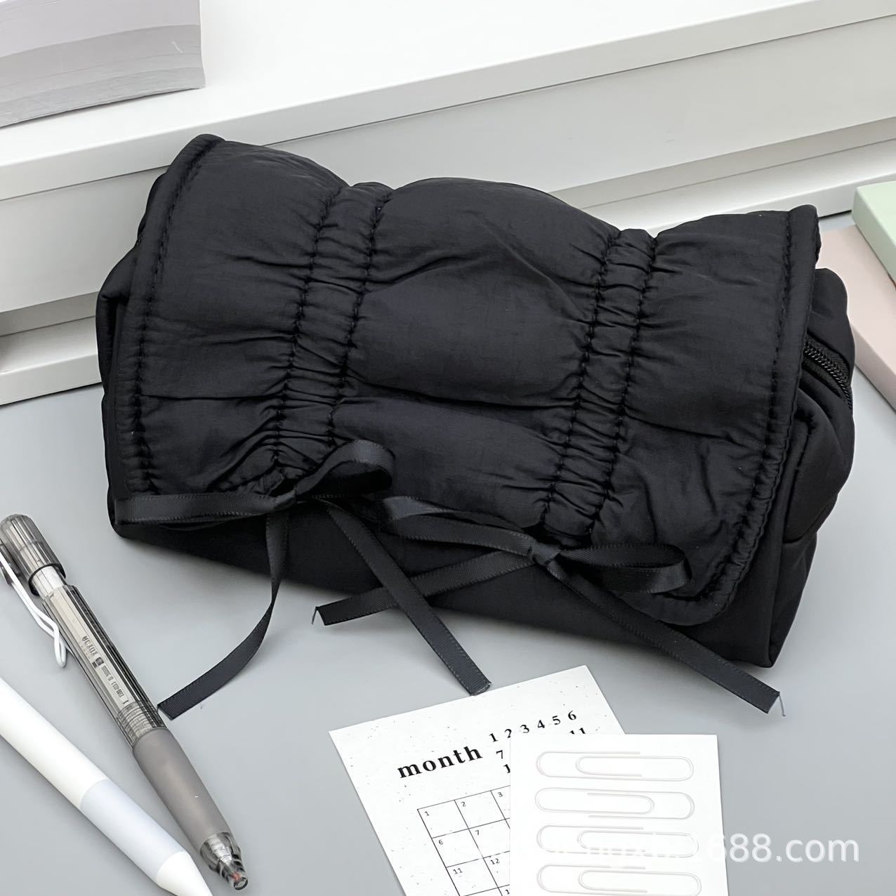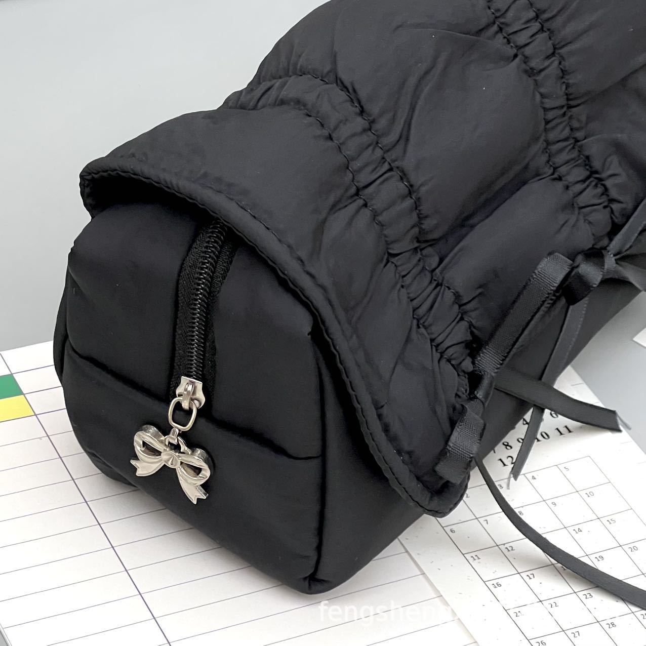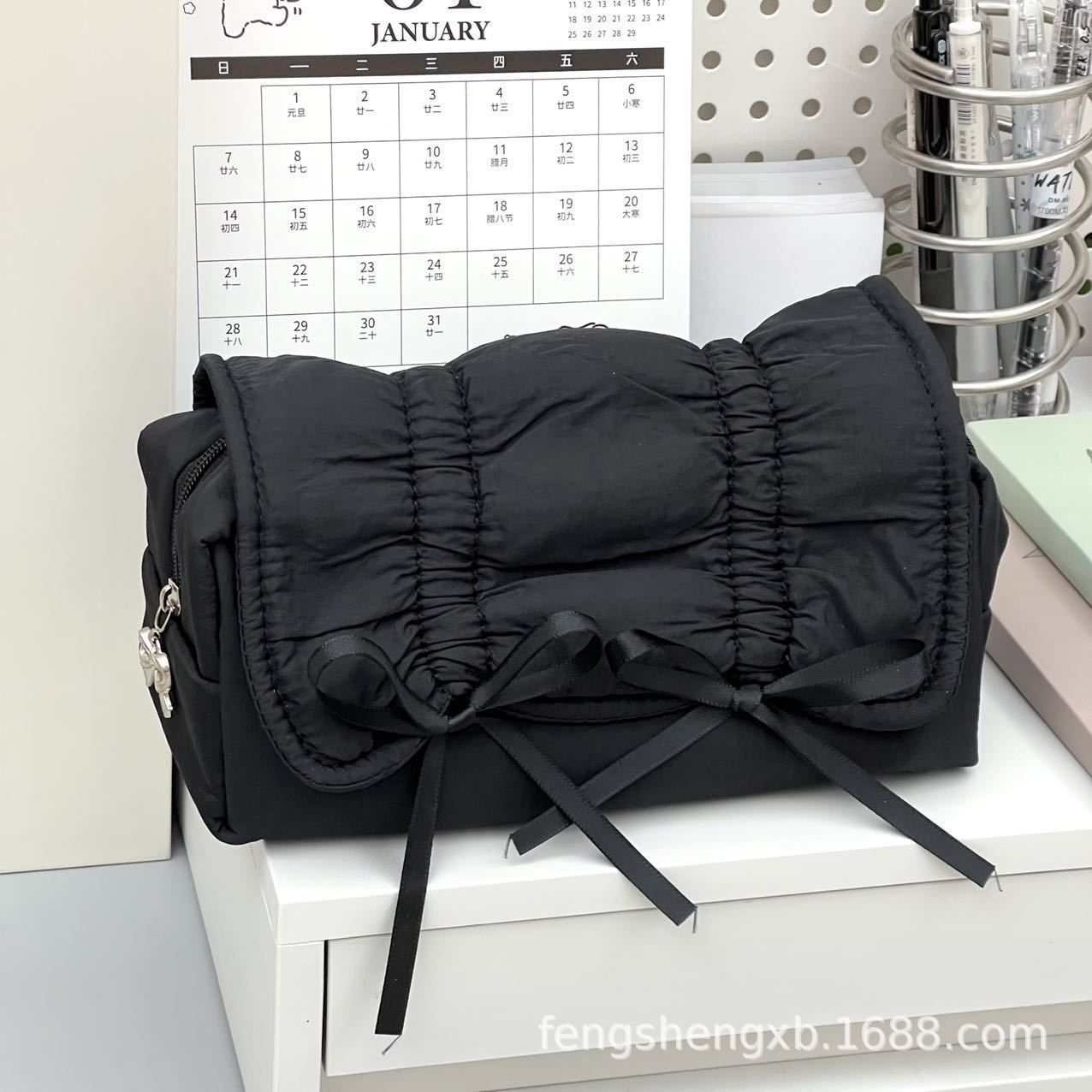 Ins 고급스러운 스타일 순수한 검정색 부드러운 당기는 활 연필 가방 대용량 학생 문구 보관 가방스토어 가기