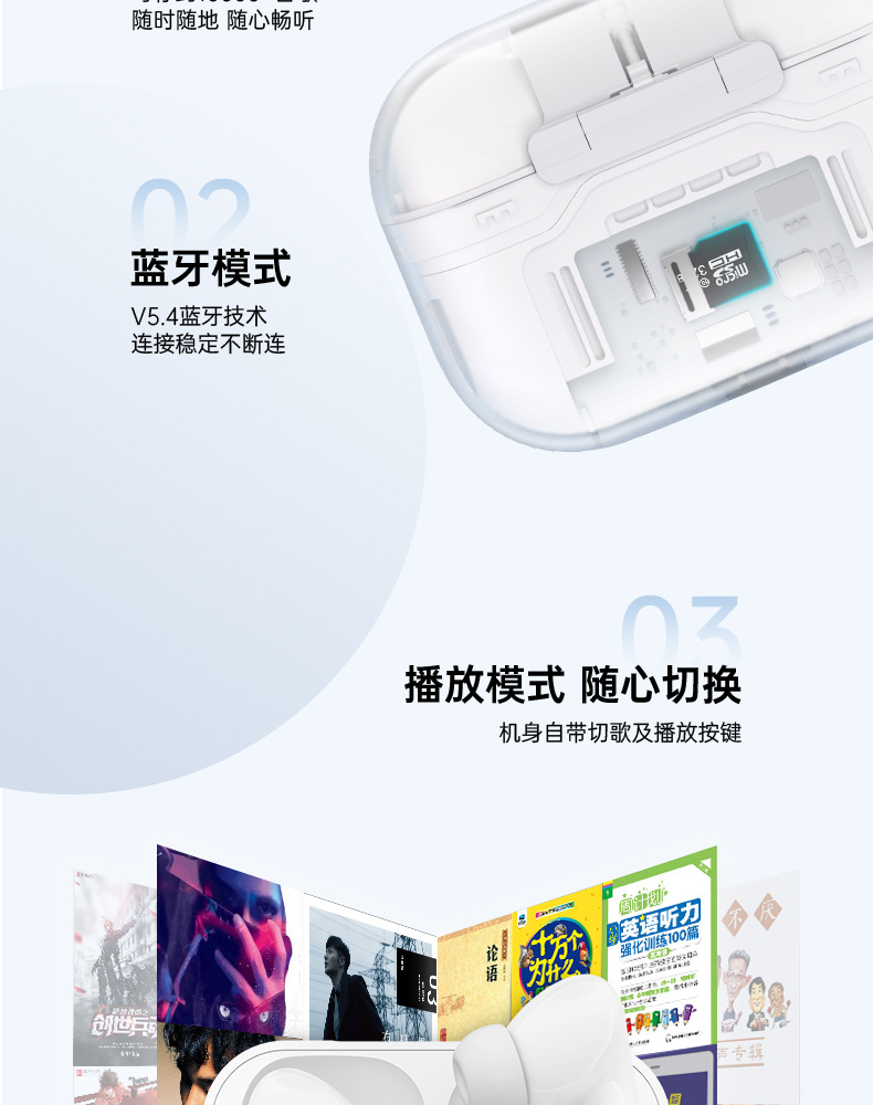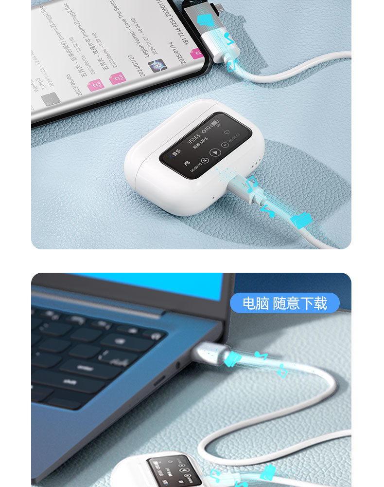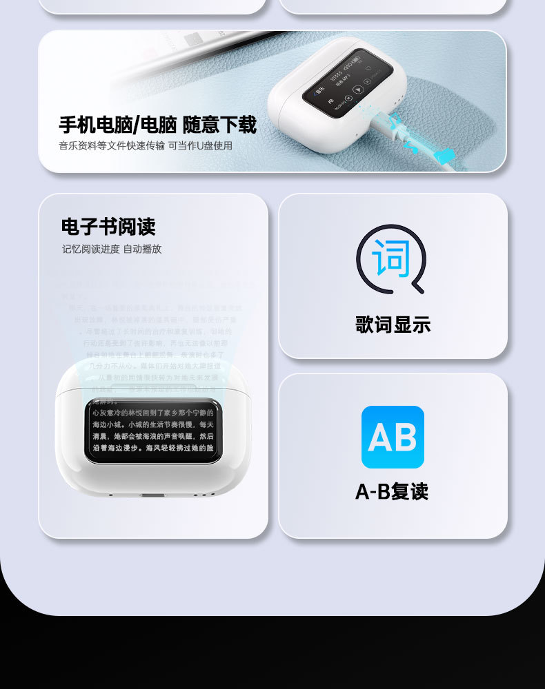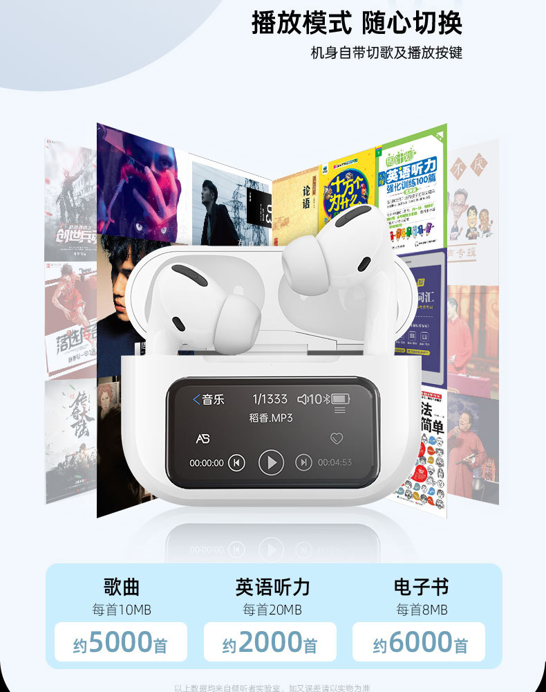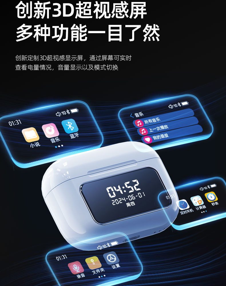 강의, 노래 및 소설 전자 책을 듣기 위해 메모리가 포함 된 국경 간 새로운 무선 블루투스 헤드셋 스마트 디스플레이스토어 가기