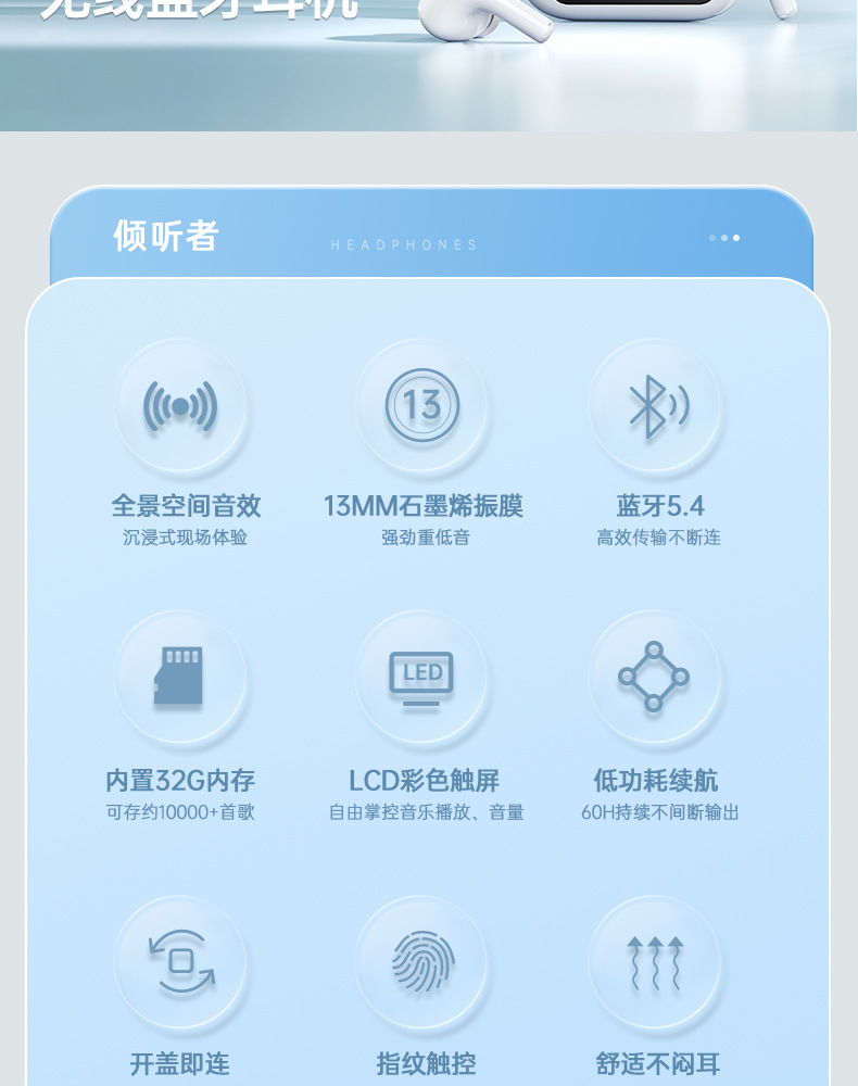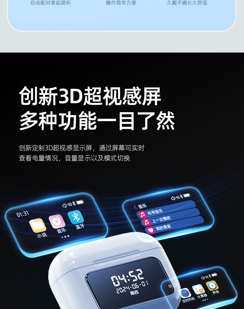 강의, 노래 및 소설 전자 책을 듣기 위해 메모리가 포함 된 국경 간 새로운 무선 블루투스 헤드셋 스마트 디스플레이