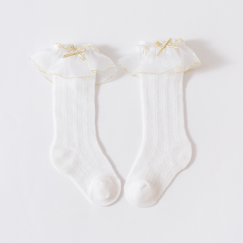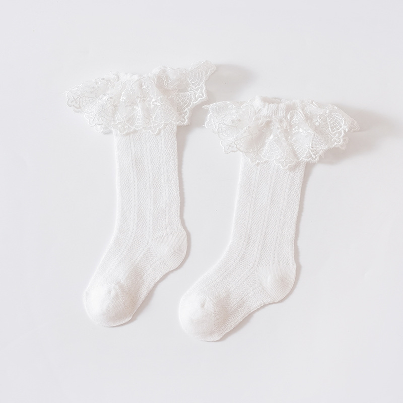 소녀와 어린이를위한 여름 얇은 아기 높은 레이스 양말 공주 활 흰색 뼈없는 메쉬 스타킹