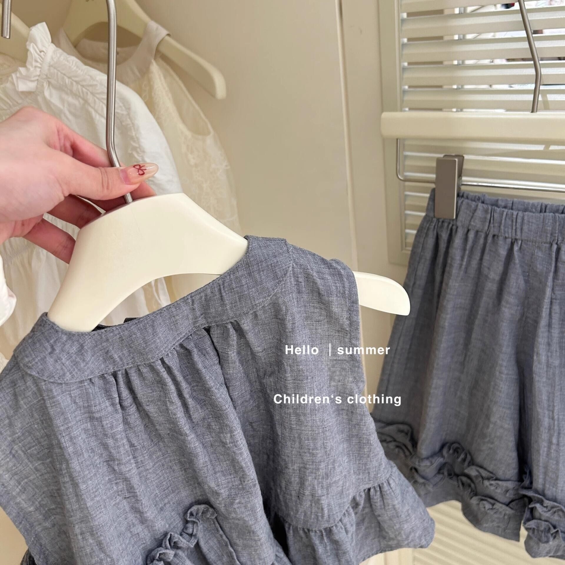 [어린이 스타서클] 2025 년 여름 어린이 연꽃 잎 그네 민소매 셔츠 넓은 다리 바지 세트 소녀 서양식 투피스 세트스토어 가기