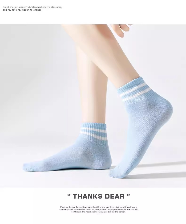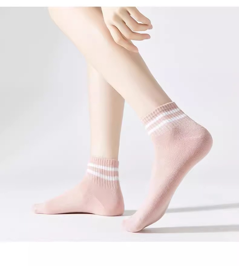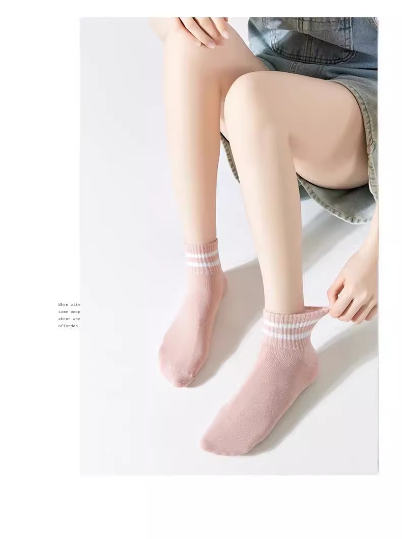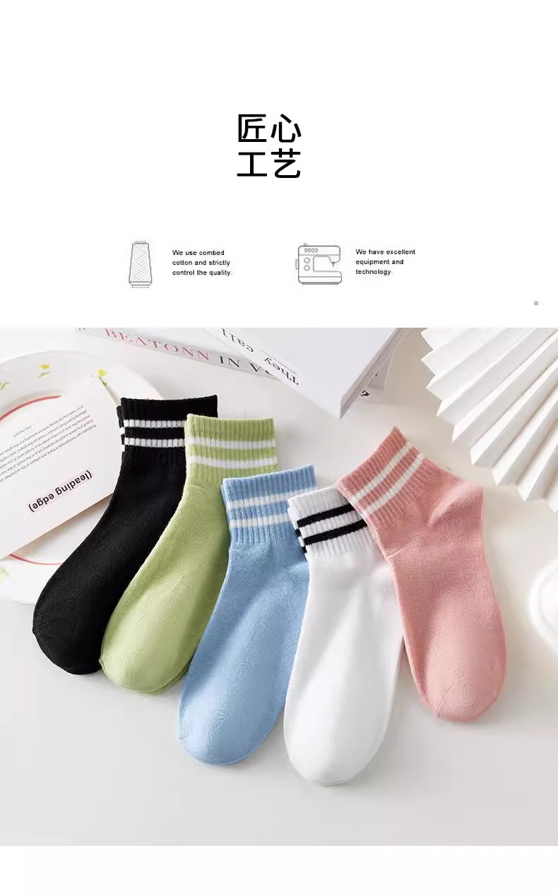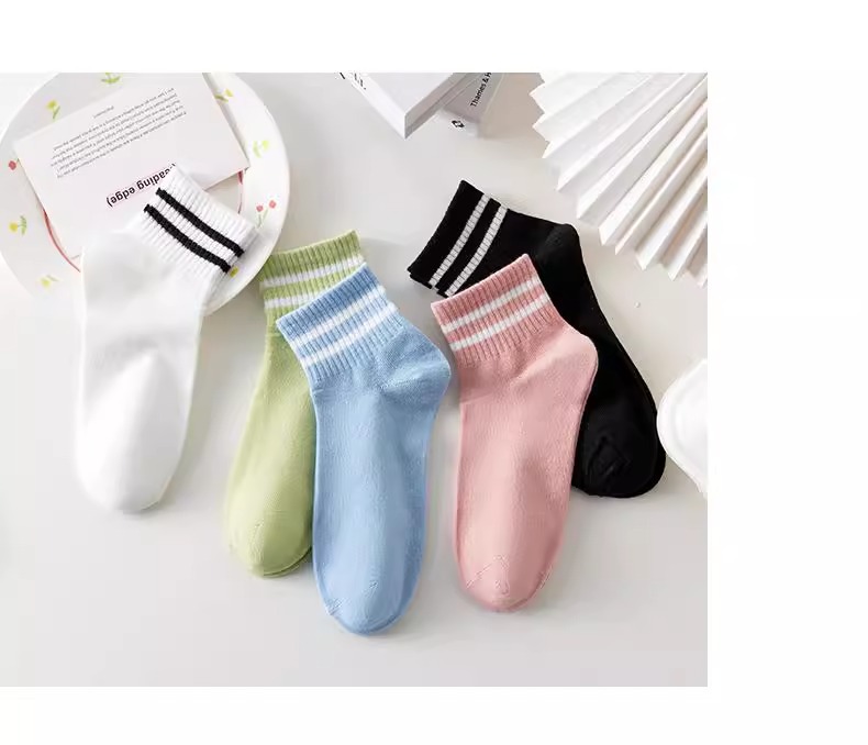 양말 여성 양말 여름 얇은 2 바 대학 스타일 귀여운 간단한 줄무늬 여성 양말 땀 흡수면 양말 한국어 버전 ins