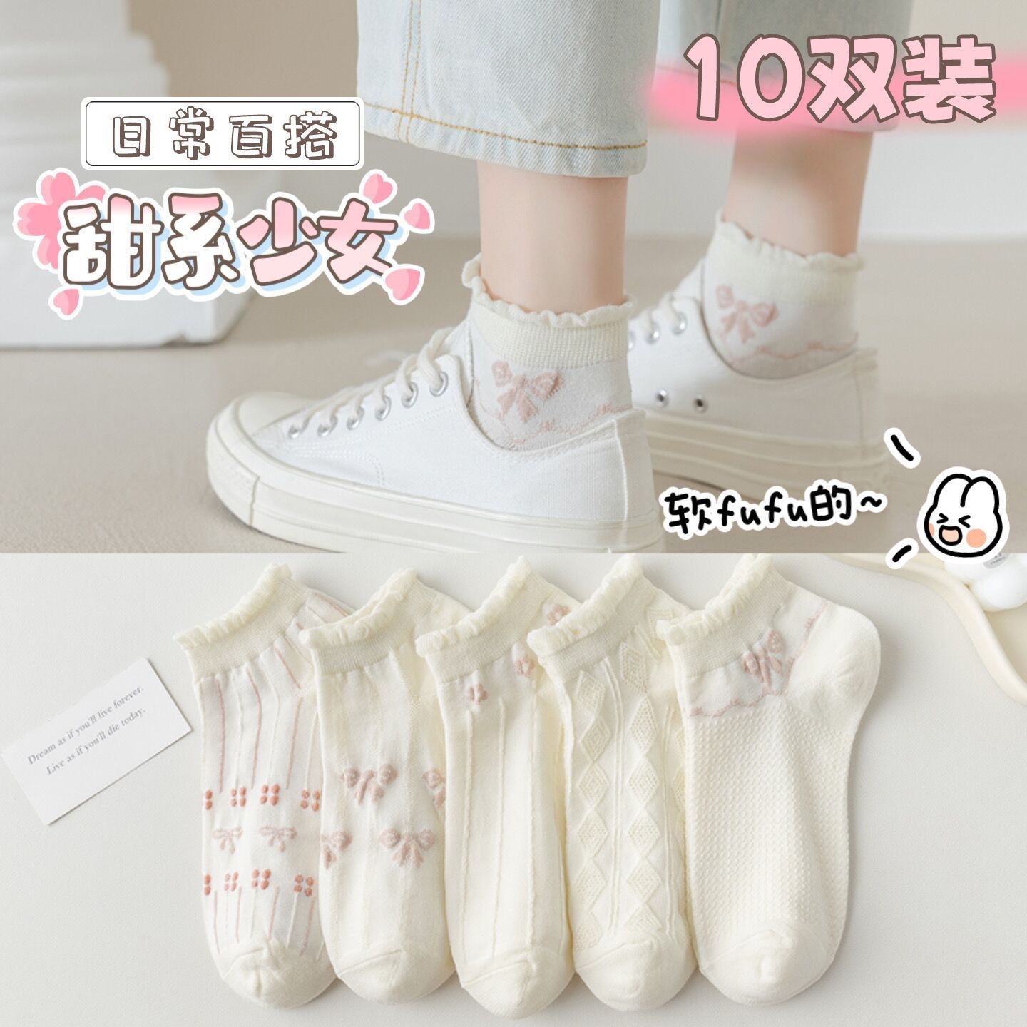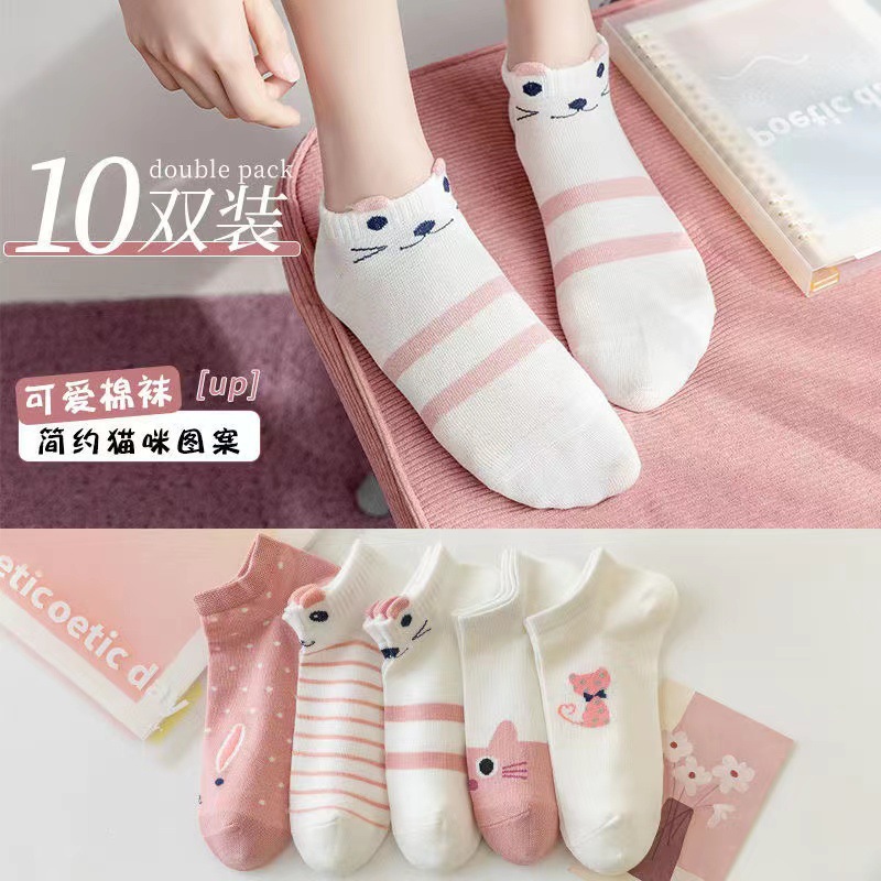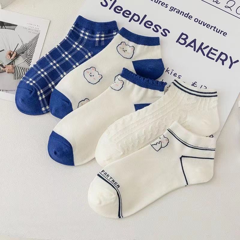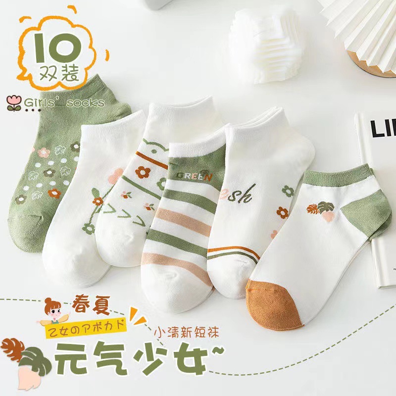 양말 여성 양말 여름 얇은 2 바 대학 스타일 귀여운 간단한 줄무늬 여성 양말 땀 흡수면 양말 한국어 버전 ins