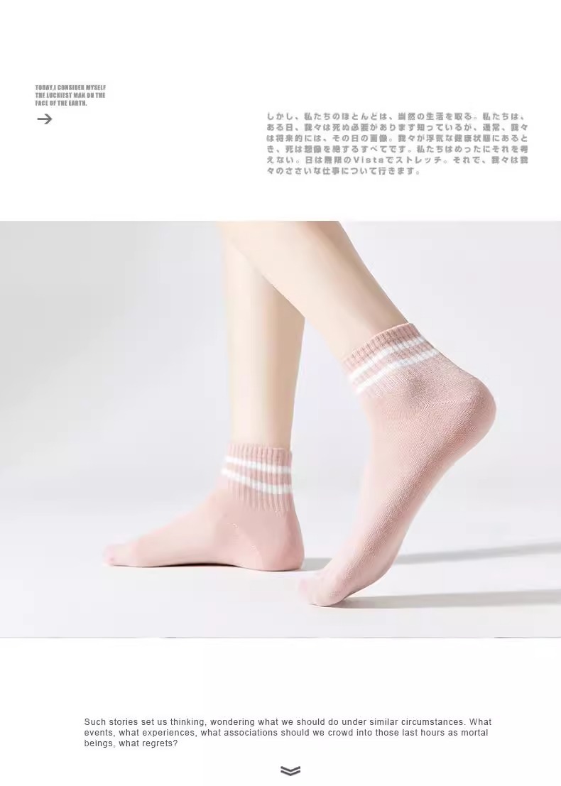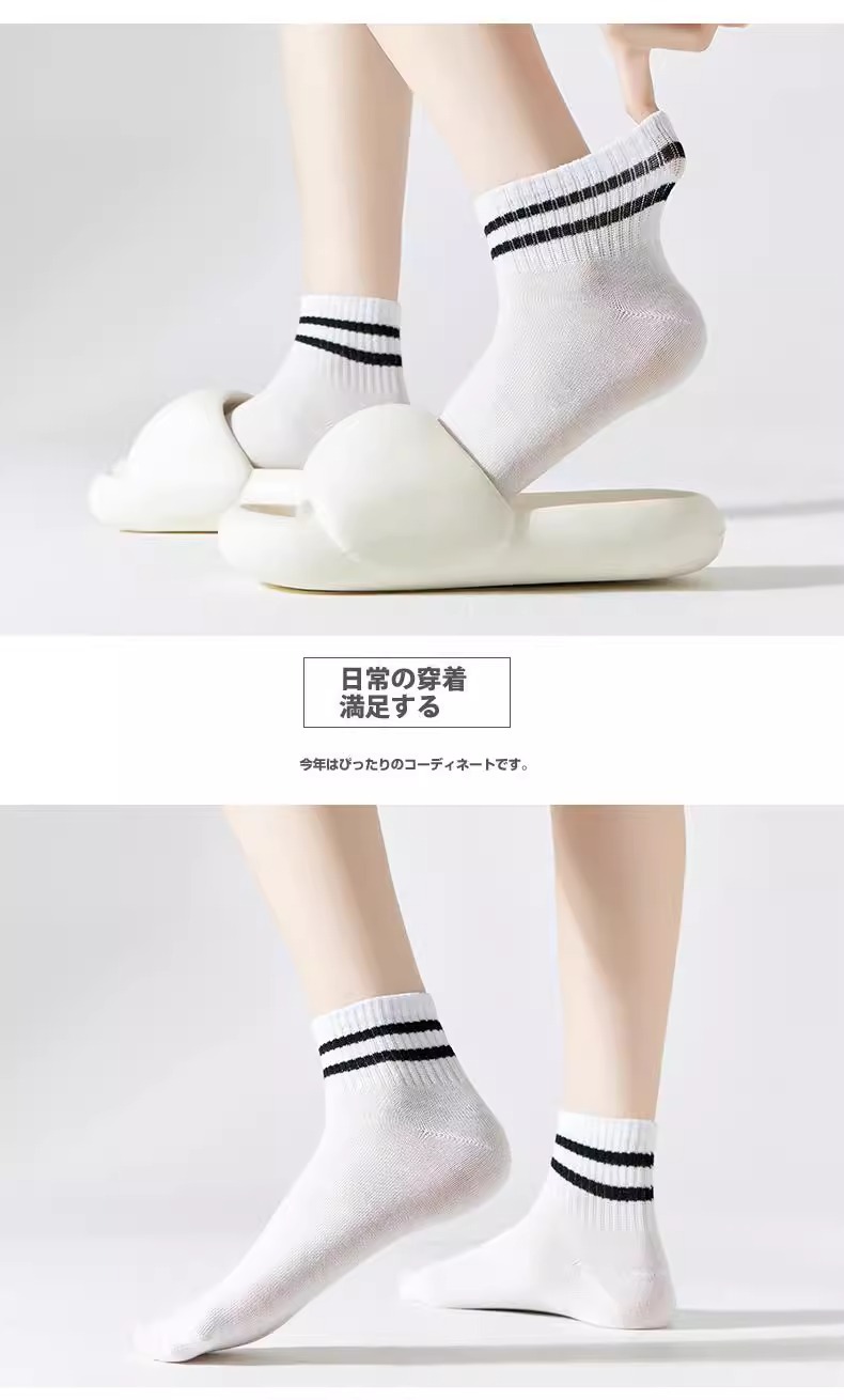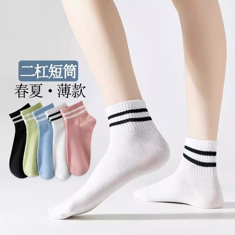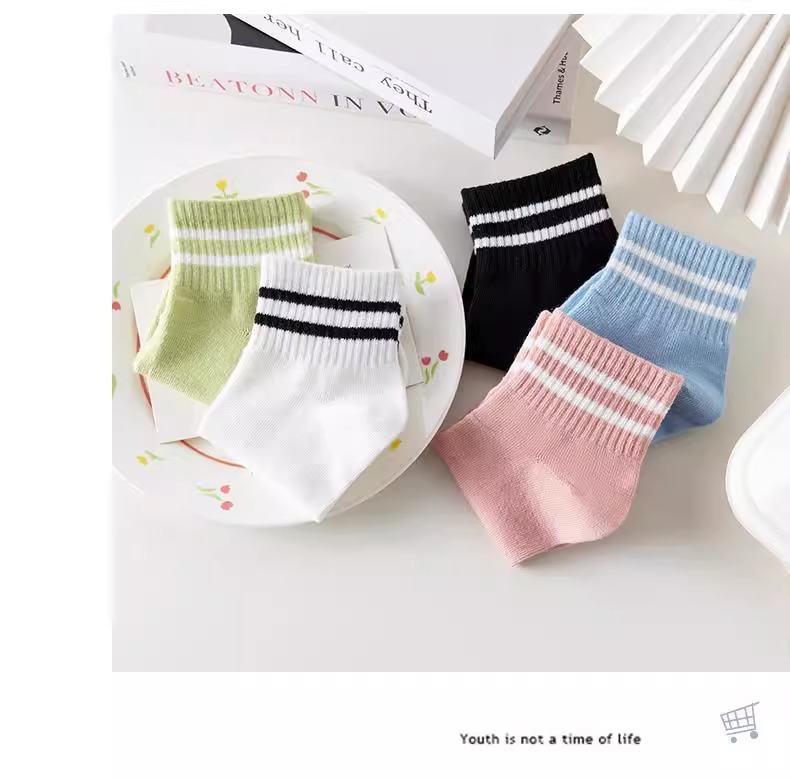 양말 여성 양말 여름 얇은 2 바 대학 스타일 귀여운 간단한 줄무늬 여성 양말 땀 흡수면 양말 한국어 버전 ins스토어 가기