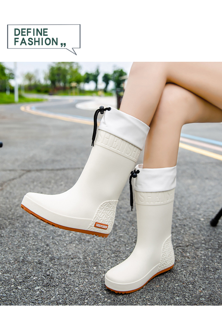 2025 여성용 크로스보더 하이탑 레인부츠, 패셔너블한 아우터, 롱 워터부츠, 미끄럼 방지 내마모성 고무신, 작업용 방수화 도매스토어 가기