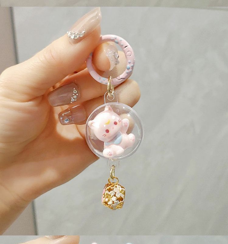만화 귀여운 고양이 벨 키 체인 소녀 학교 가방 매달려 펜던트 장식 커플 작은 선물 도매