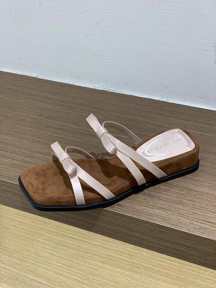 양가죽 버전 ~ 우아한 쐐기 프렌치 팁 샌들 여성의 2025 새로운 여름 활 로마 샌들스토어 가기