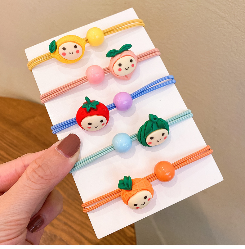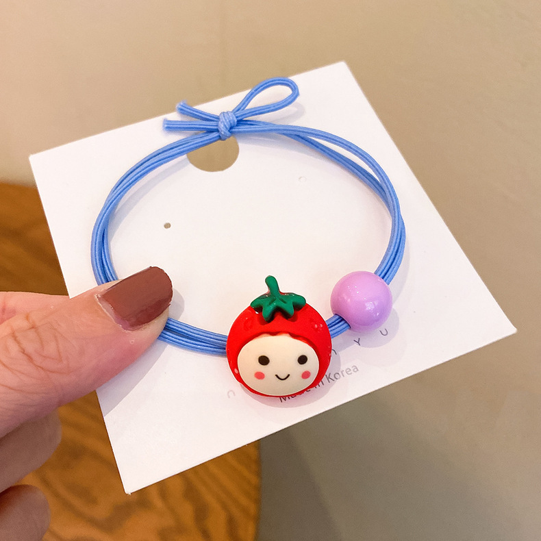 새로운 귀여운 만화 과일 머리띠 헤어 타이 헤어 가죽 케이스 고무 밴드 어린이 헤어 로프 머리 장식 헤어 액세서리 도매
