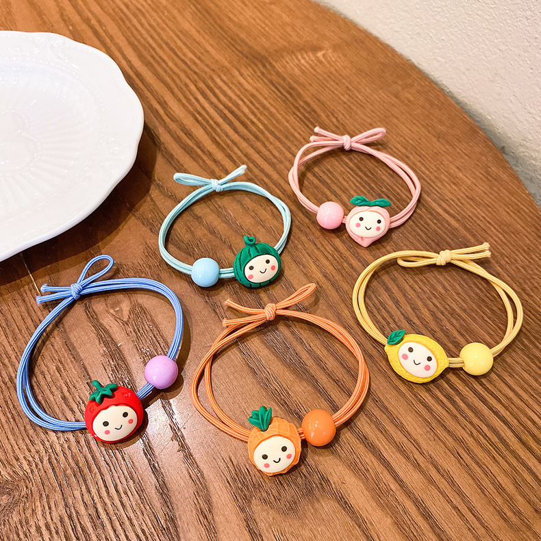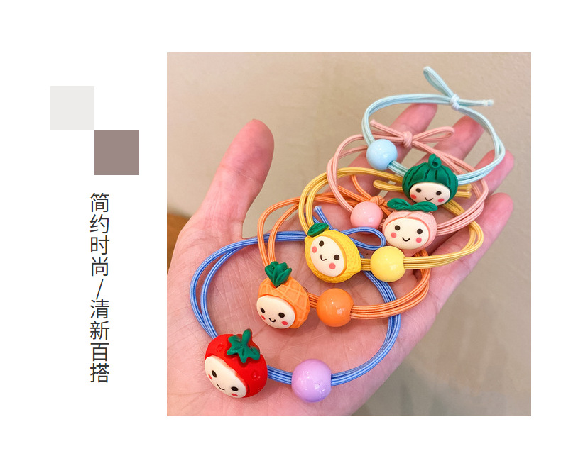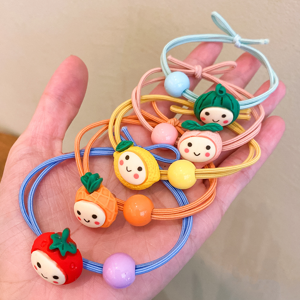 새로운 귀여운 만화 과일 머리띠 헤어 타이 헤어 가죽 케이스 고무 밴드 어린이 헤어 로프 머리 장식 헤어 액세서리 도매스토어 가기