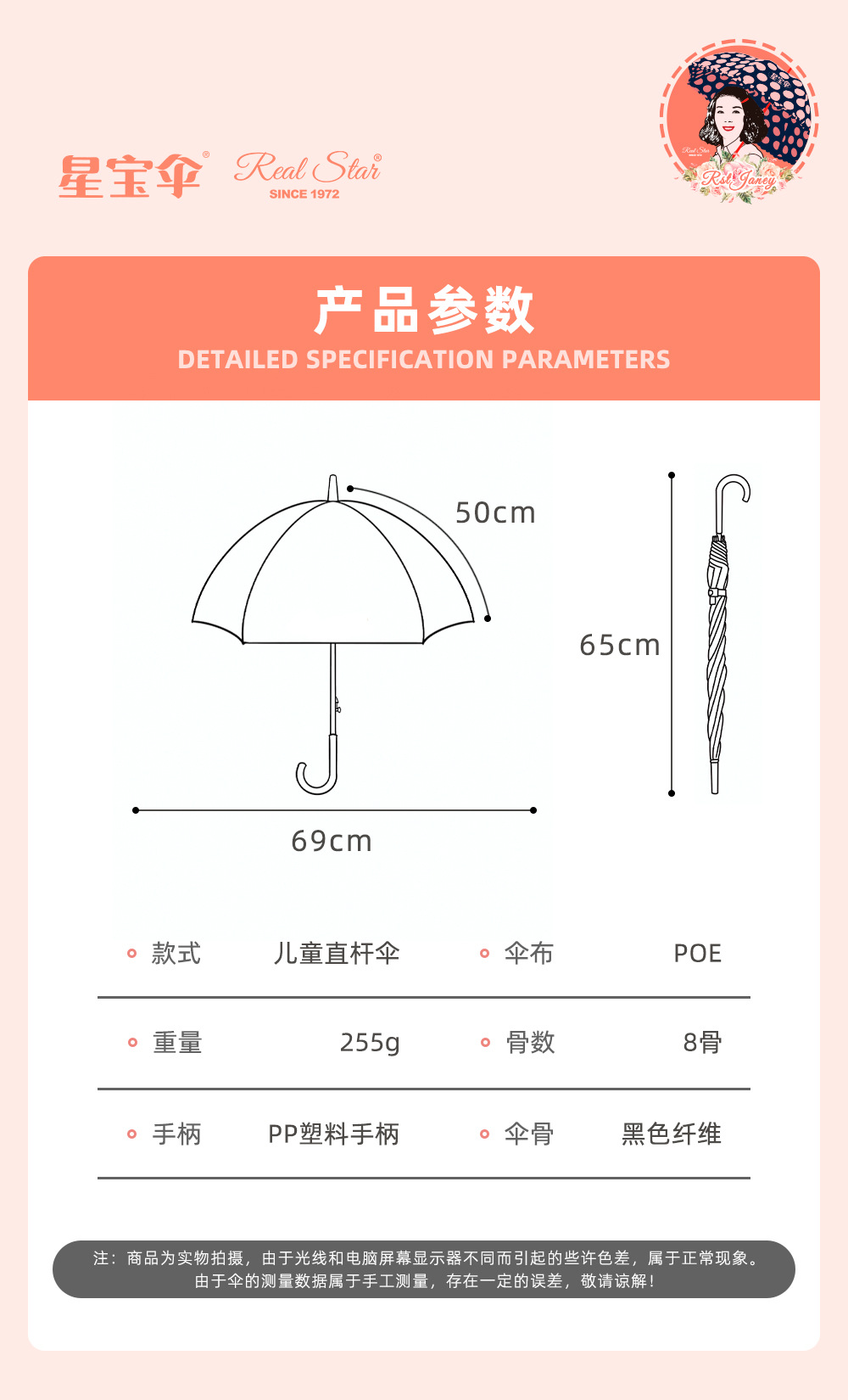 • 우산 표면의 호 직경은 약 100cm입니다. *우산 아래 직경은 약 70cm입니다. *원 버튼 열기 *1인에게 적합합니다.