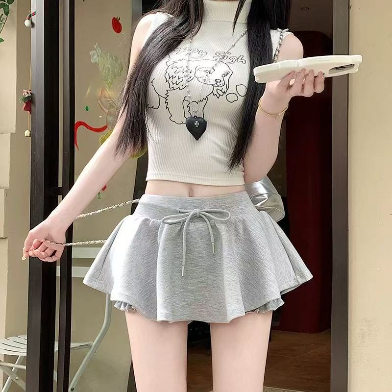 여성을위한 발레 스타일 스포츠 퍼프 스커트 2025 여름 작은 a 라인 노출 방지 핫 소녀 꽃 스커트스토어 가기