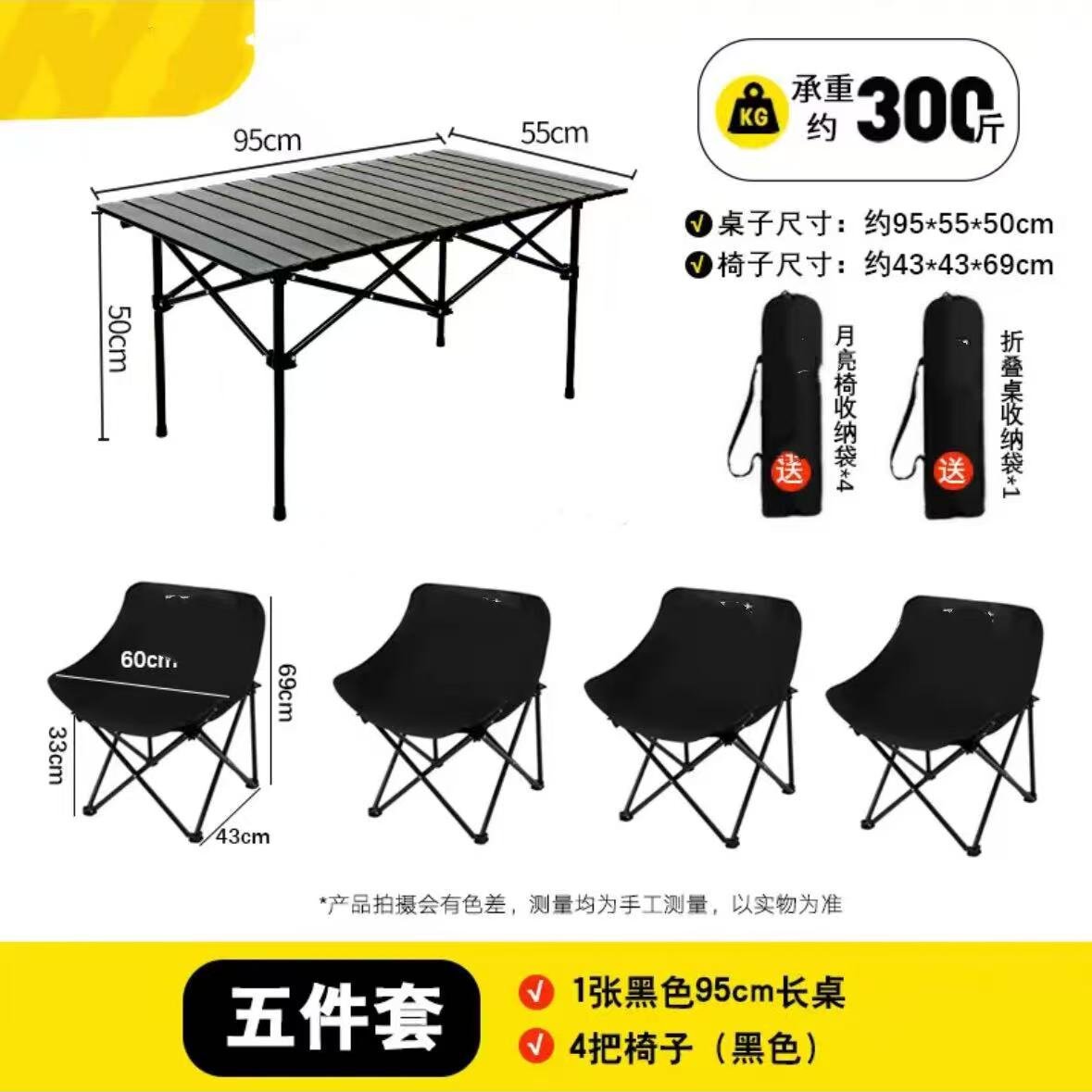 야외 접이식 테이블과 의자 세트 야외 달 의자 계란말이 테이블 캠핑 바베큐 테이블과 의자 휴대용 테이블과 의자 세트스토어 가기
