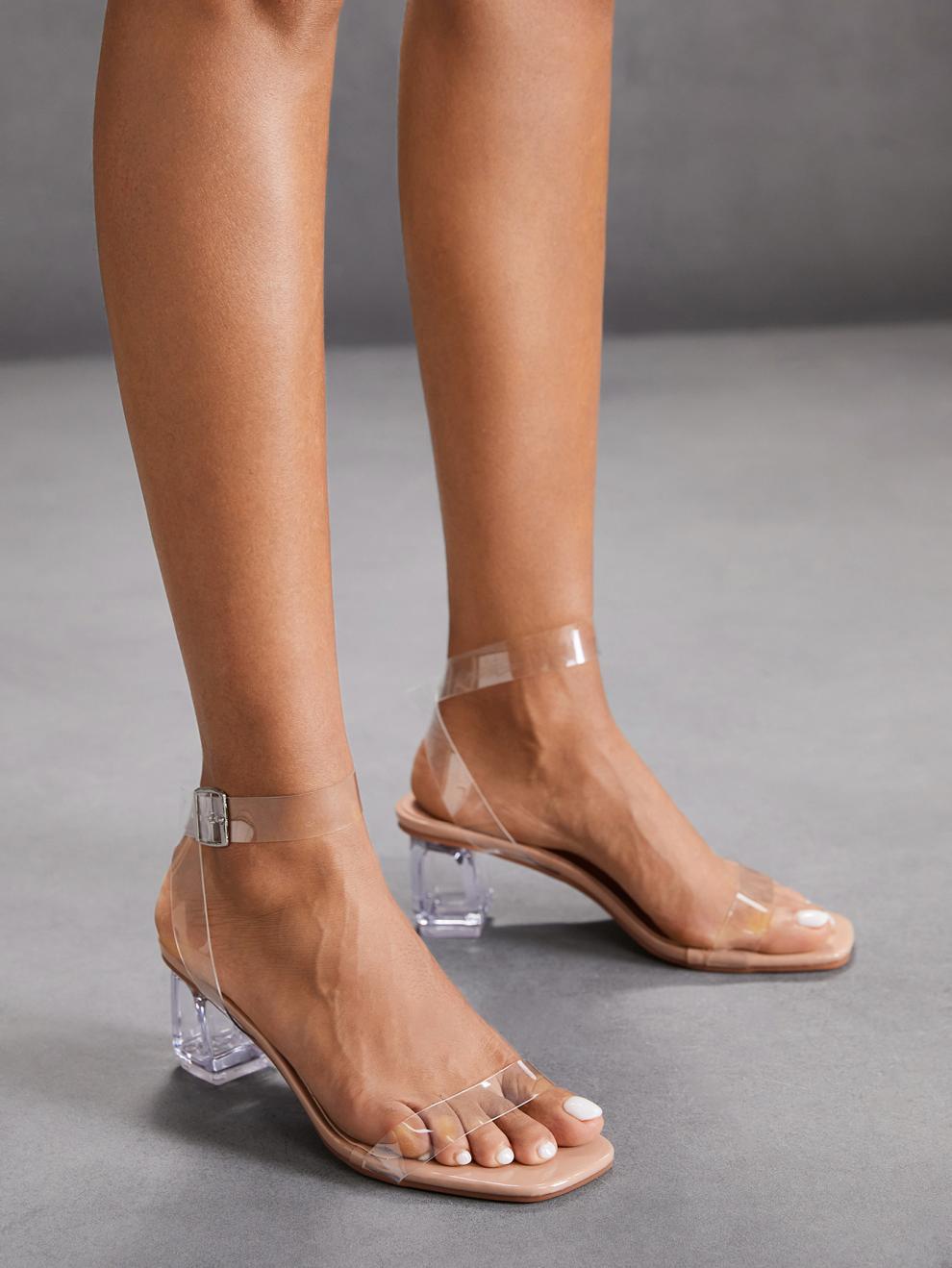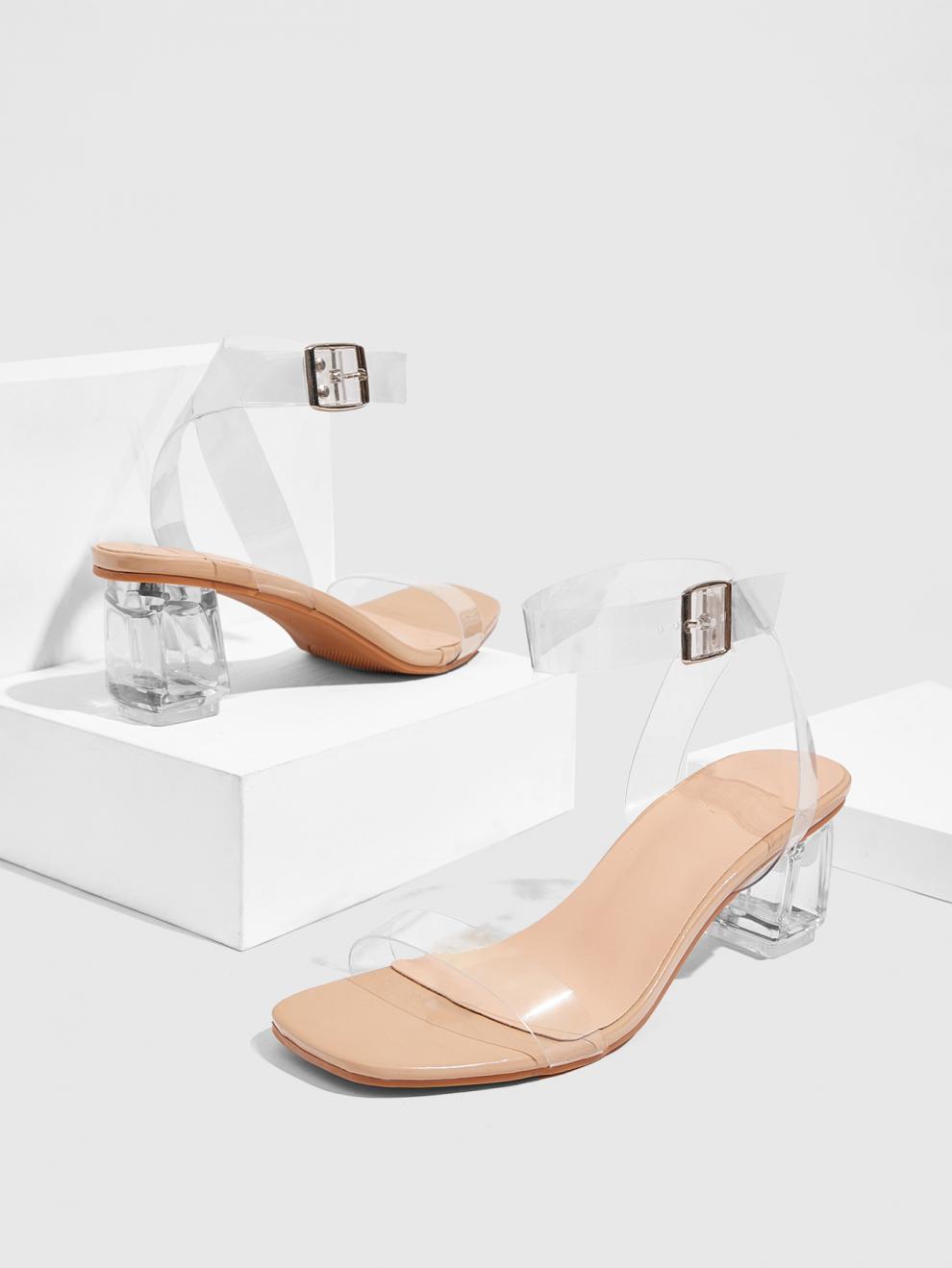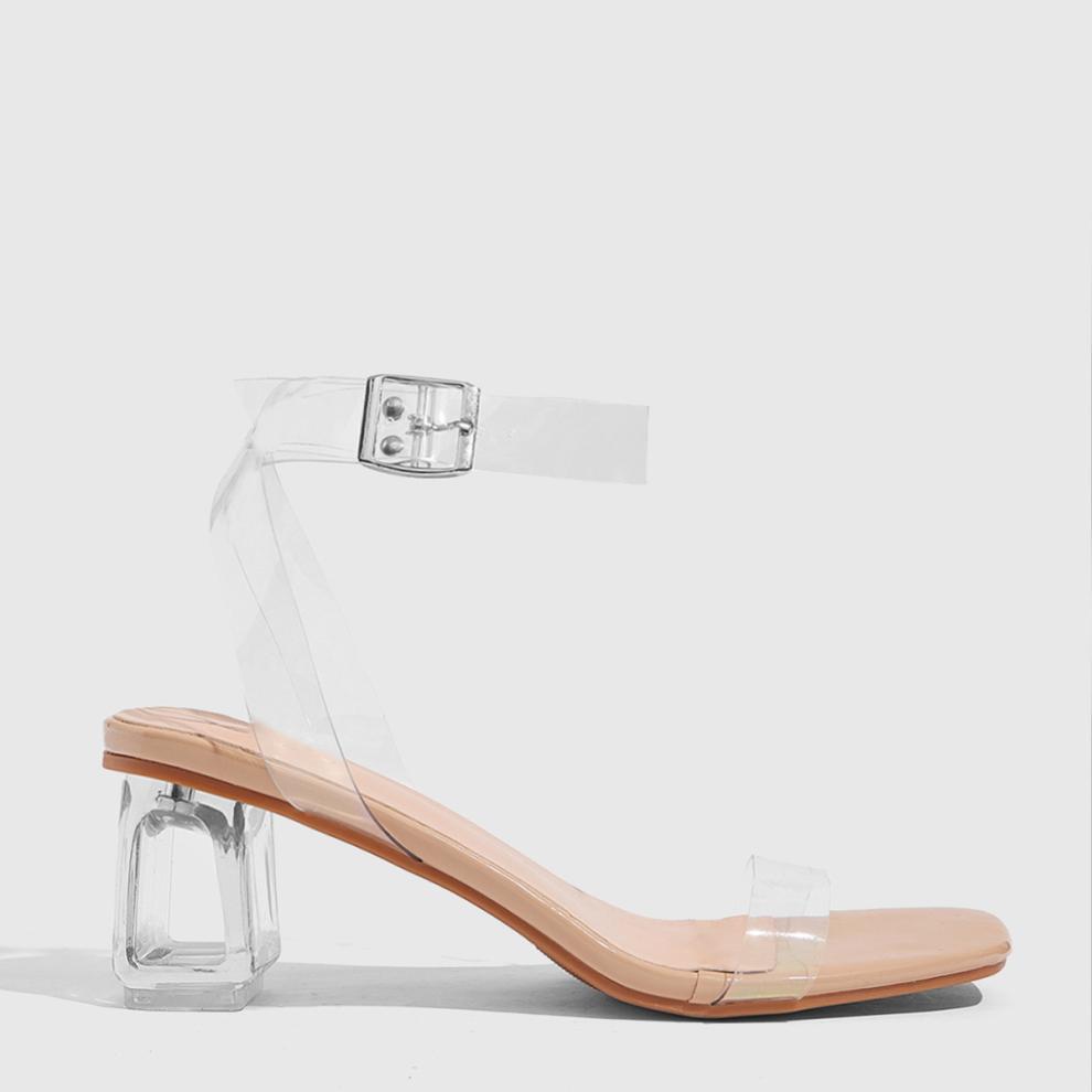 패셔너블하고 섹시한 원라인 버클 여성 하이힐 샌들, 절약, 다용도, 편안한 여름 투명 크리스탈 힐 샌들