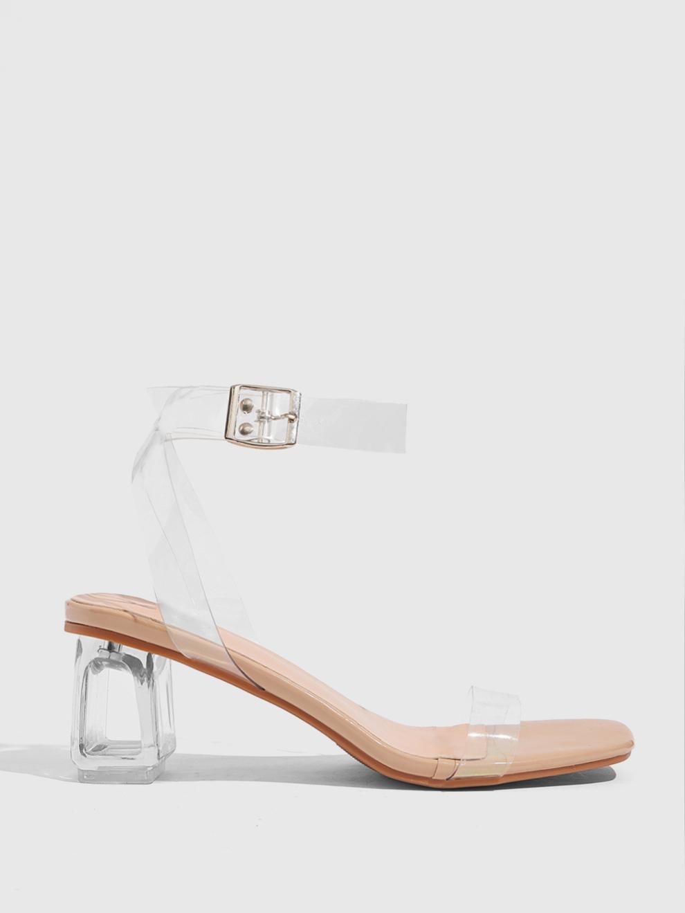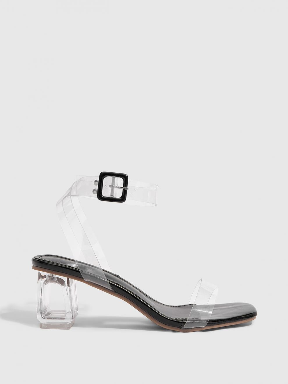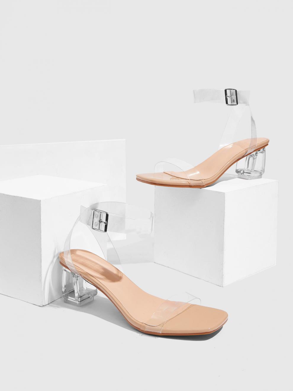 패셔너블하고 섹시한 원라인 버클 여성 하이힐 샌들, 절약, 다용도, 편안한 여름 투명 크리스탈 힐 샌들