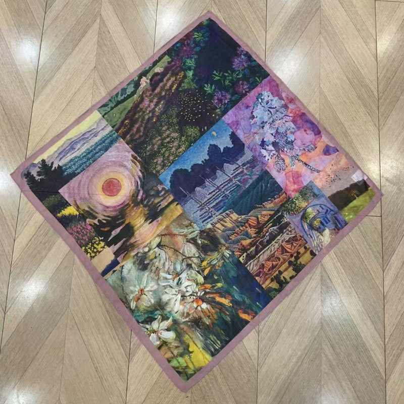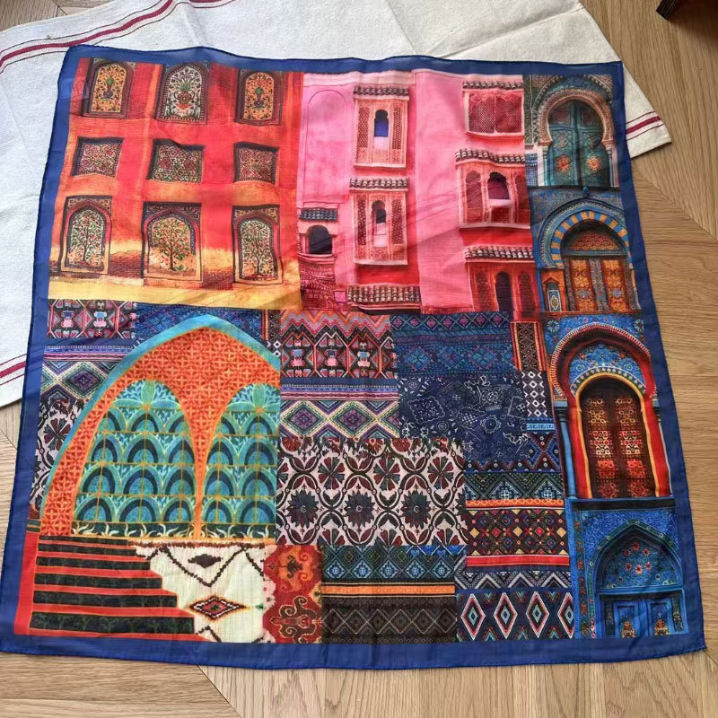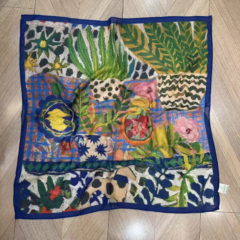 도매 봄과 여름 폭발 실크면 스퀘어 스카프 여성 빈티지 아트 유화 꽃 실크 스카프 패션 스카프 액세서리 타이 헤드 팩