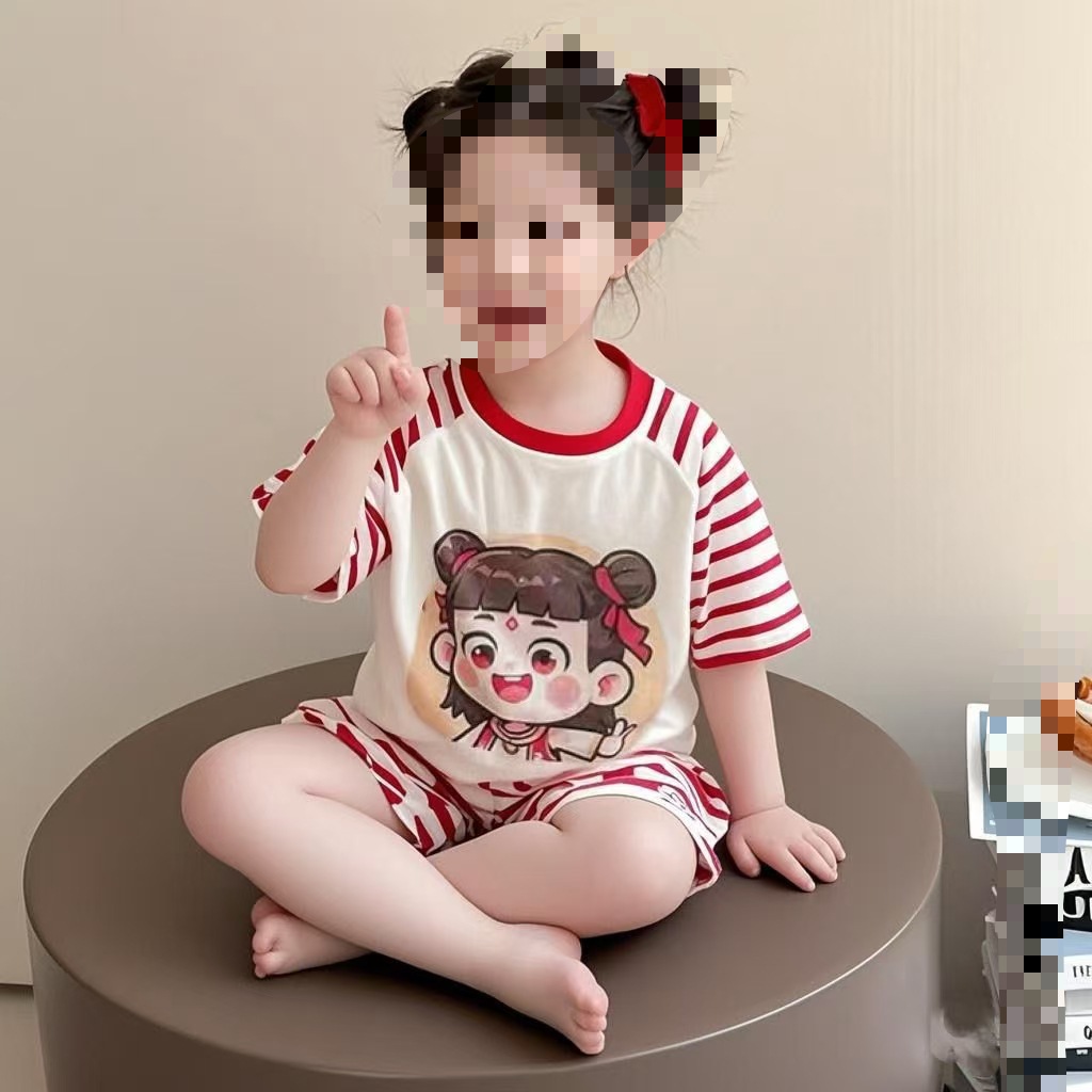 국경 간 대외 무역 동남 아시아 어린이 잠옷 반팔 반바지 여름 긴팔 얇은 만화 소녀 아기 소년 빈스토어 가기