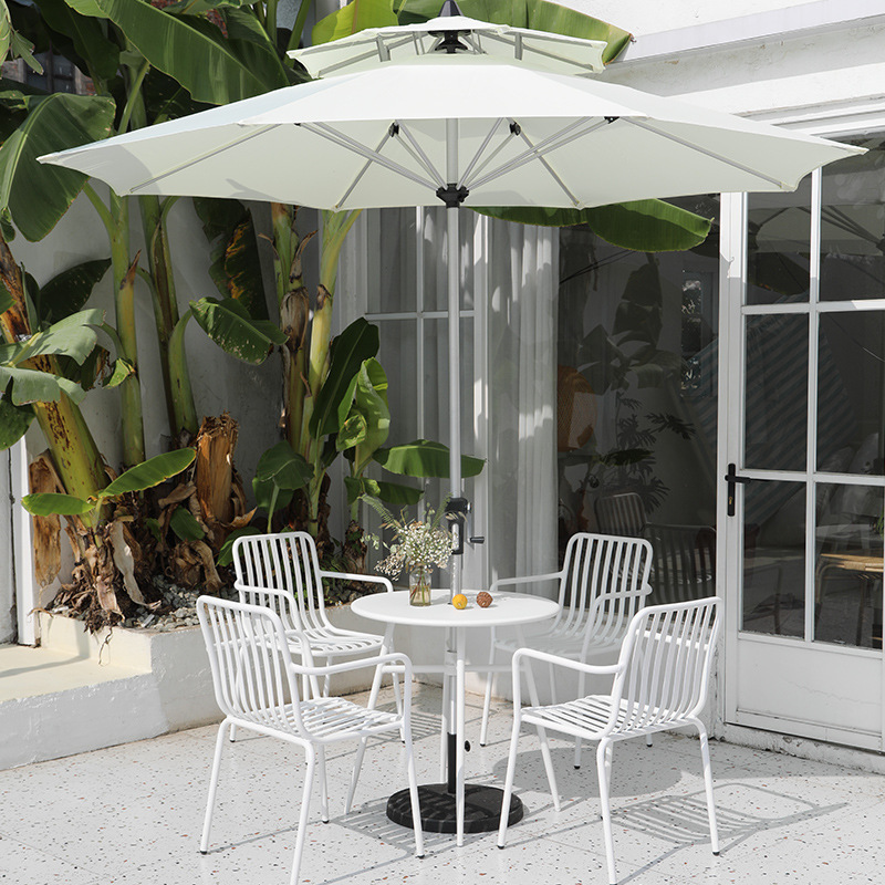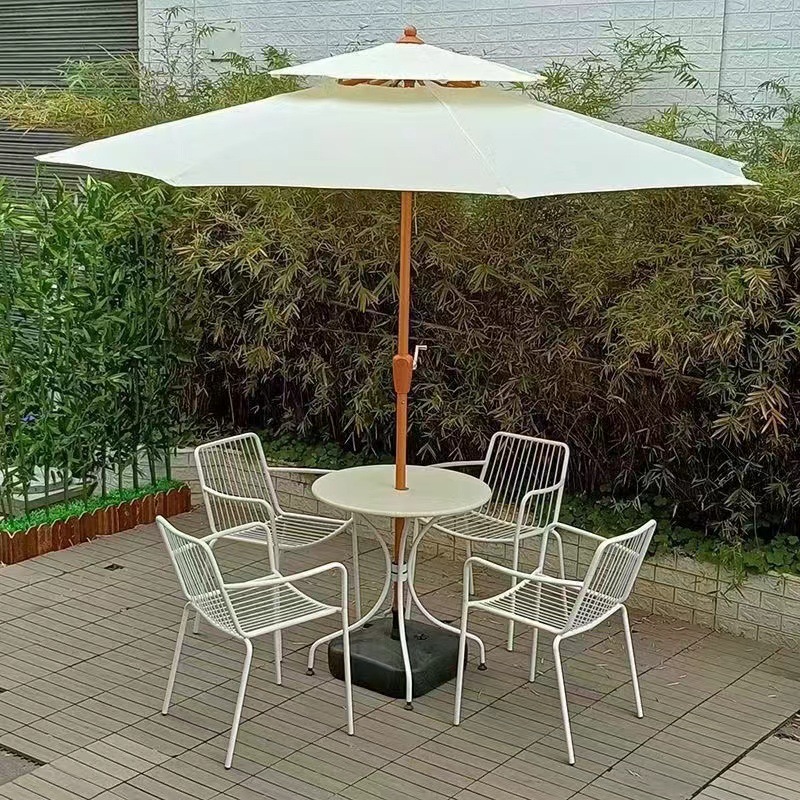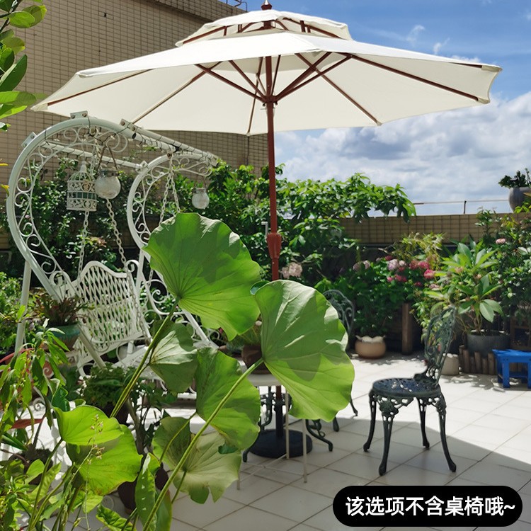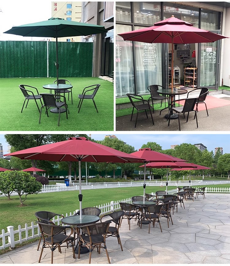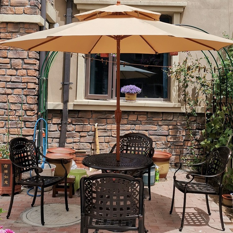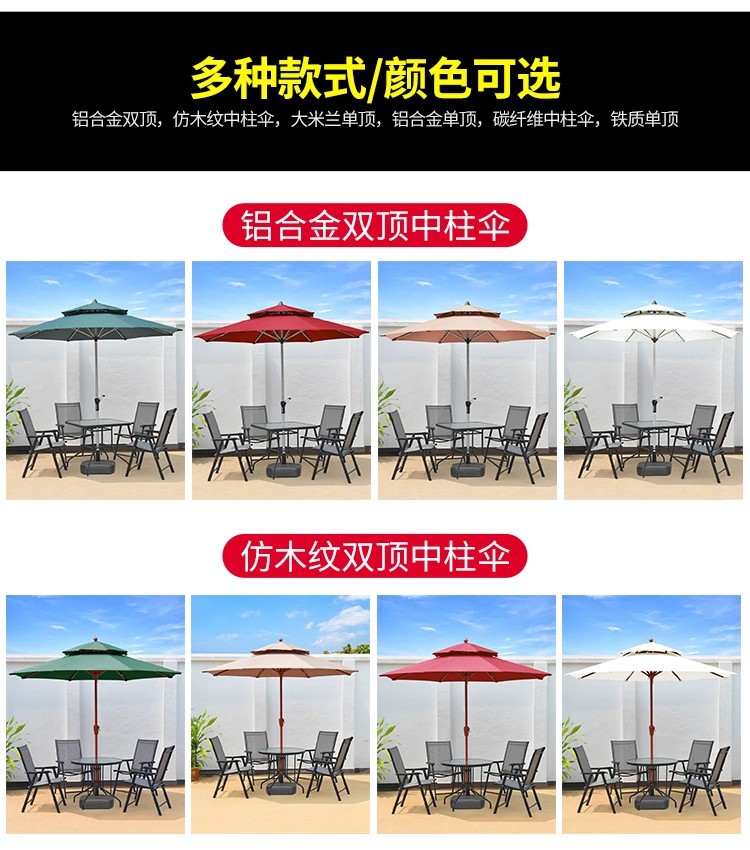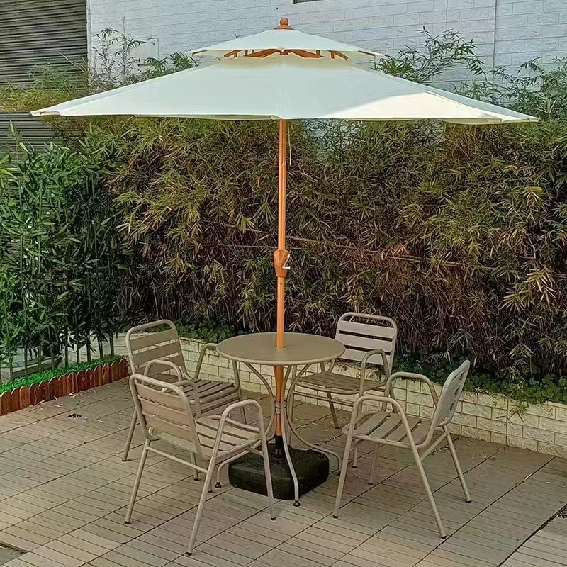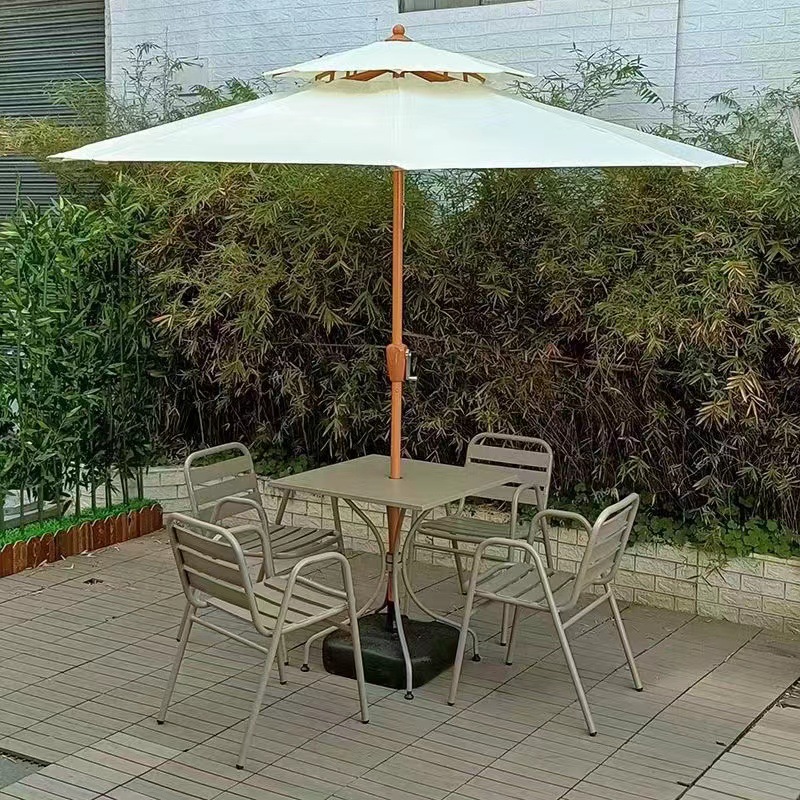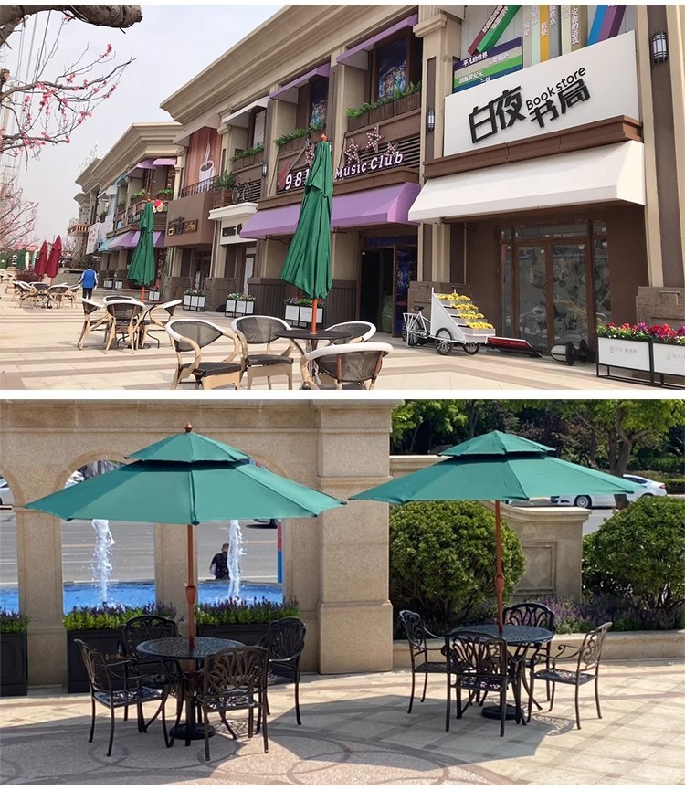 • [테이블, 의자 및 우산 조합] 이중 상단 모조 나무 우산 2.7m개 + 주조 알루미늄 의자 + 원형 테이블 우산 80개 [다양한 색상 가능]
