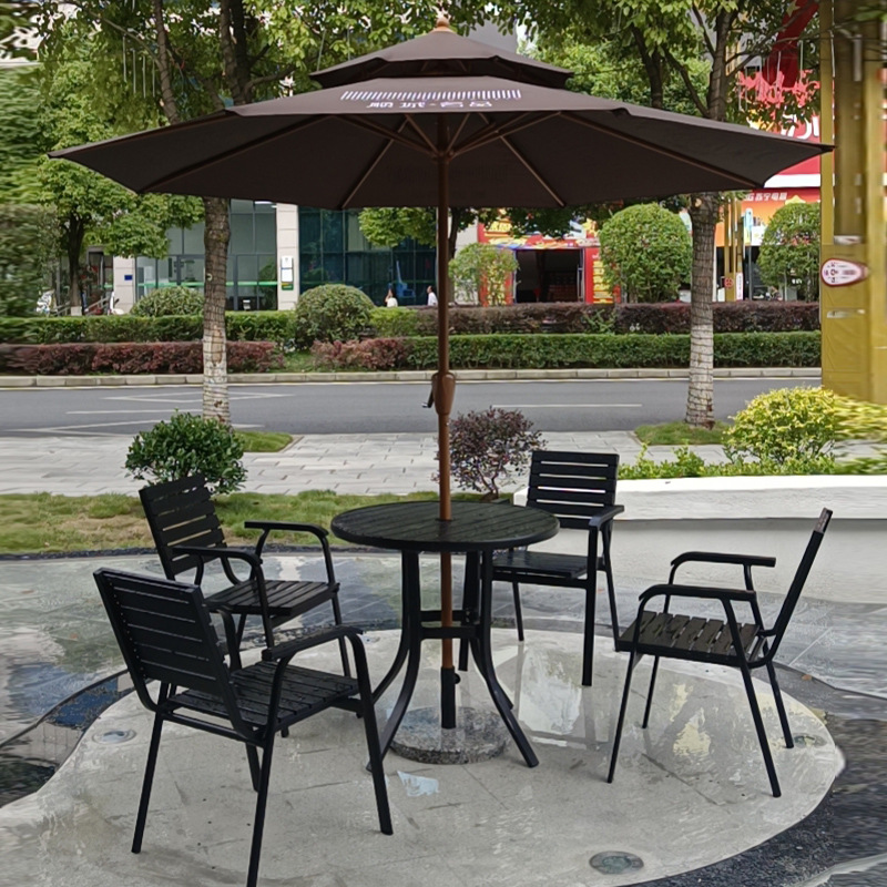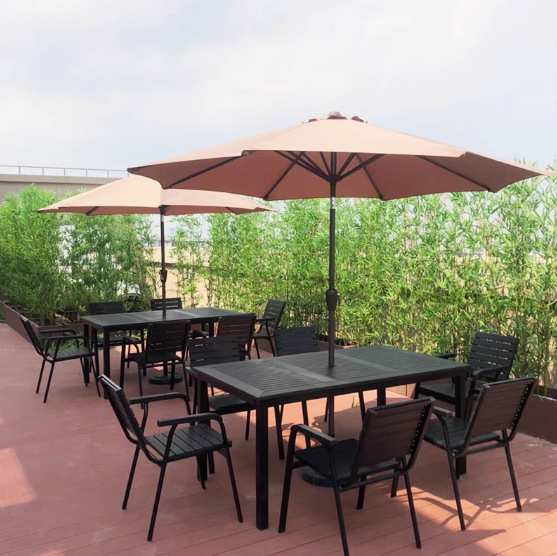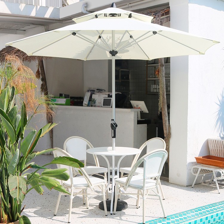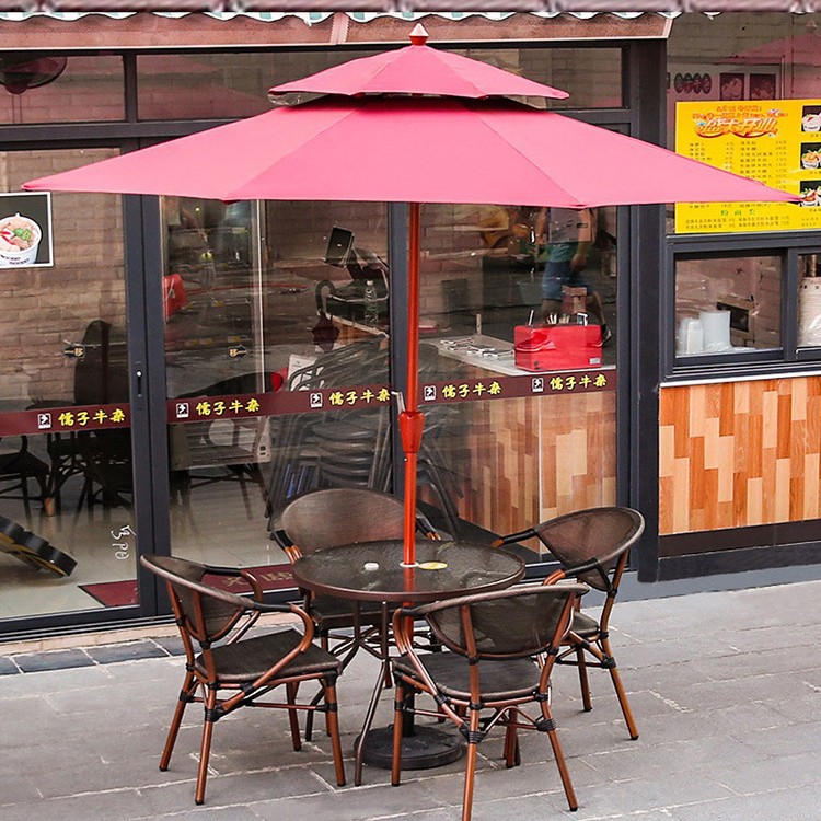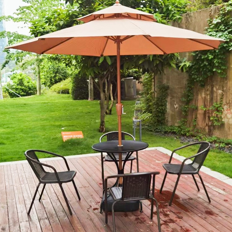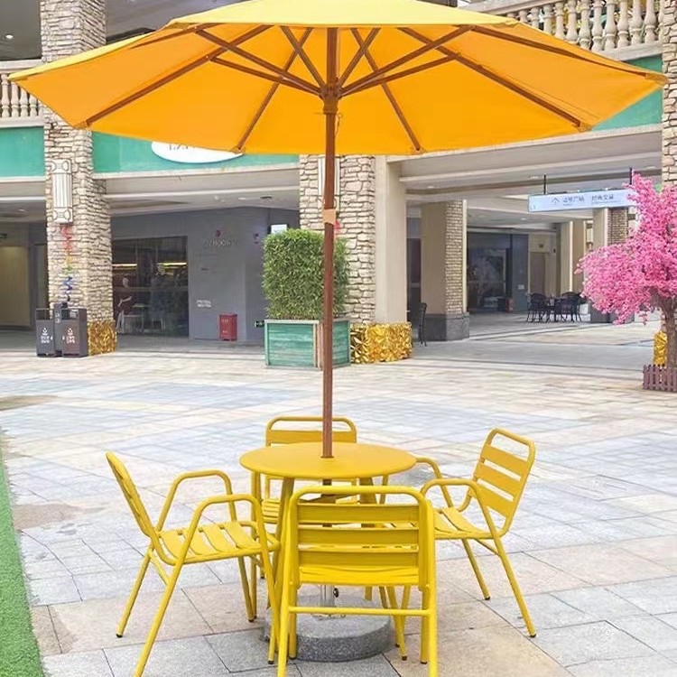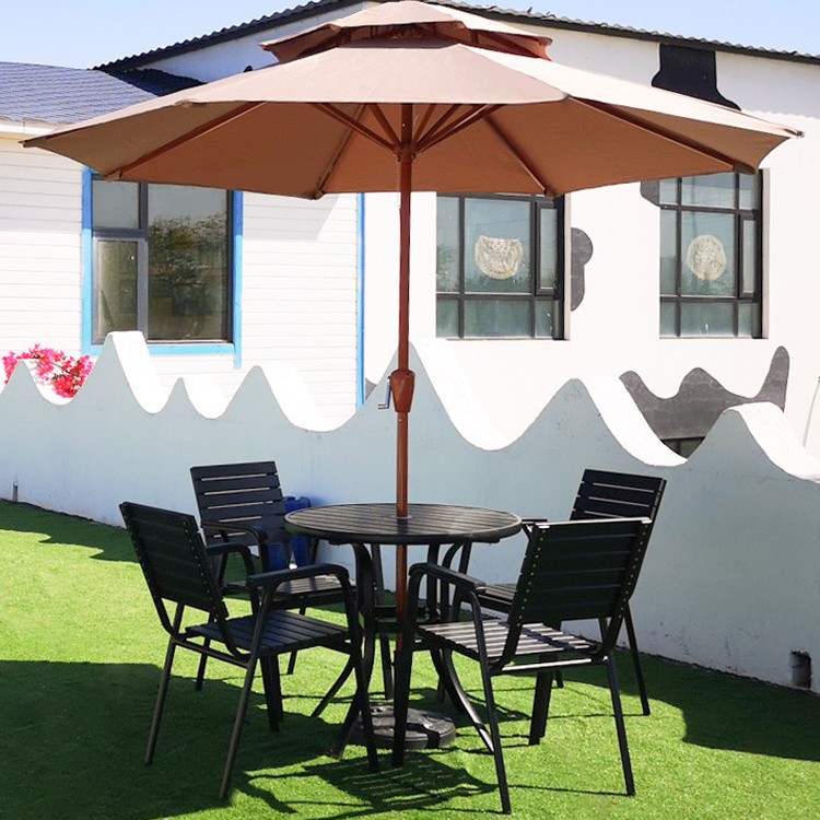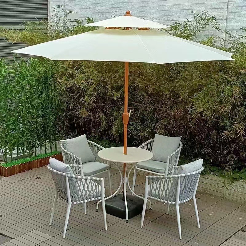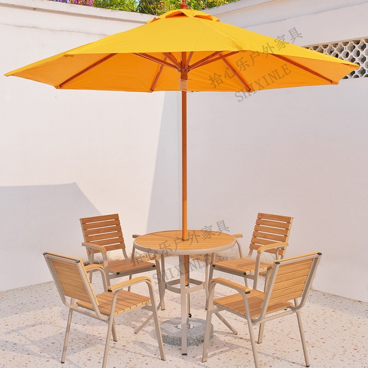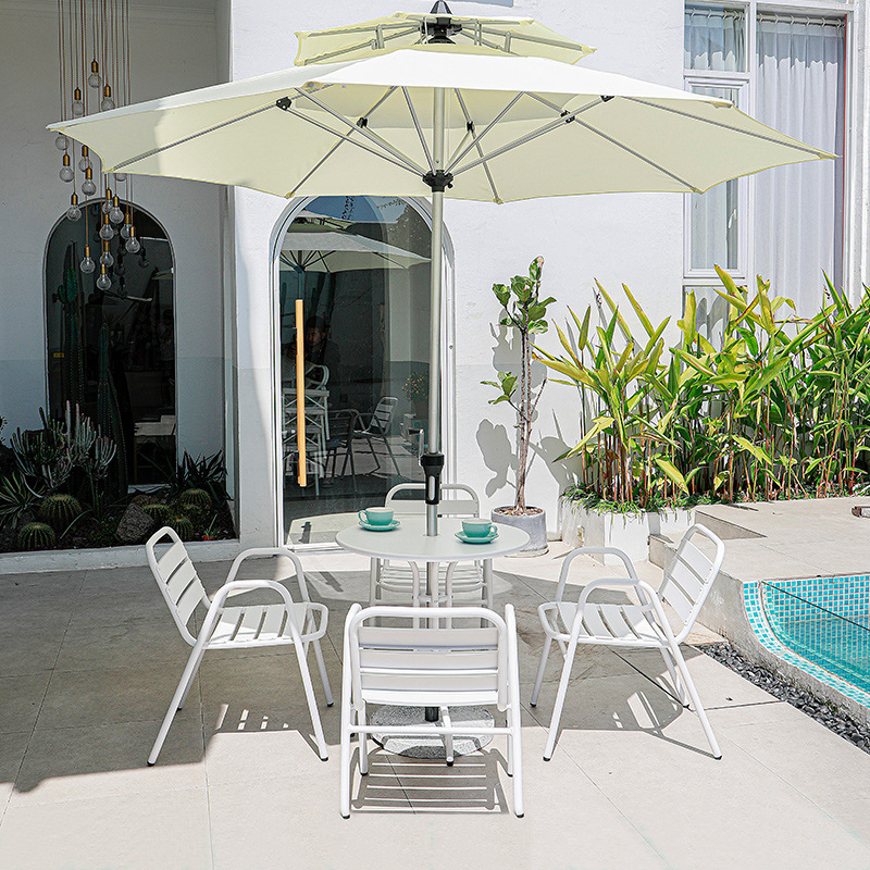 • [테이블, 의자 및 우산 조합] 이중 상단 모조 나무 우산 2.7m개 + 주조 알루미늄 의자 + 원형 테이블 우산 80개 [다양한 색상 가능]