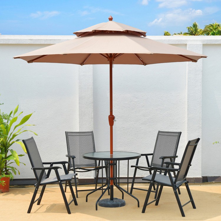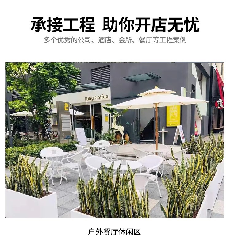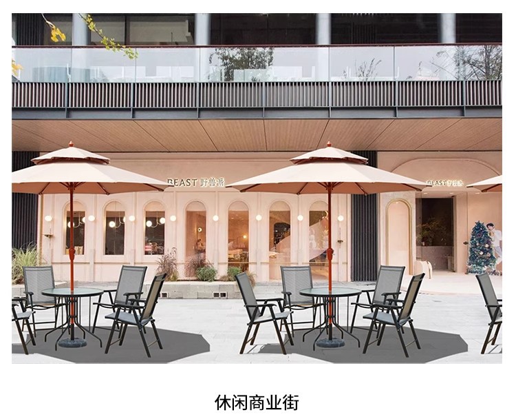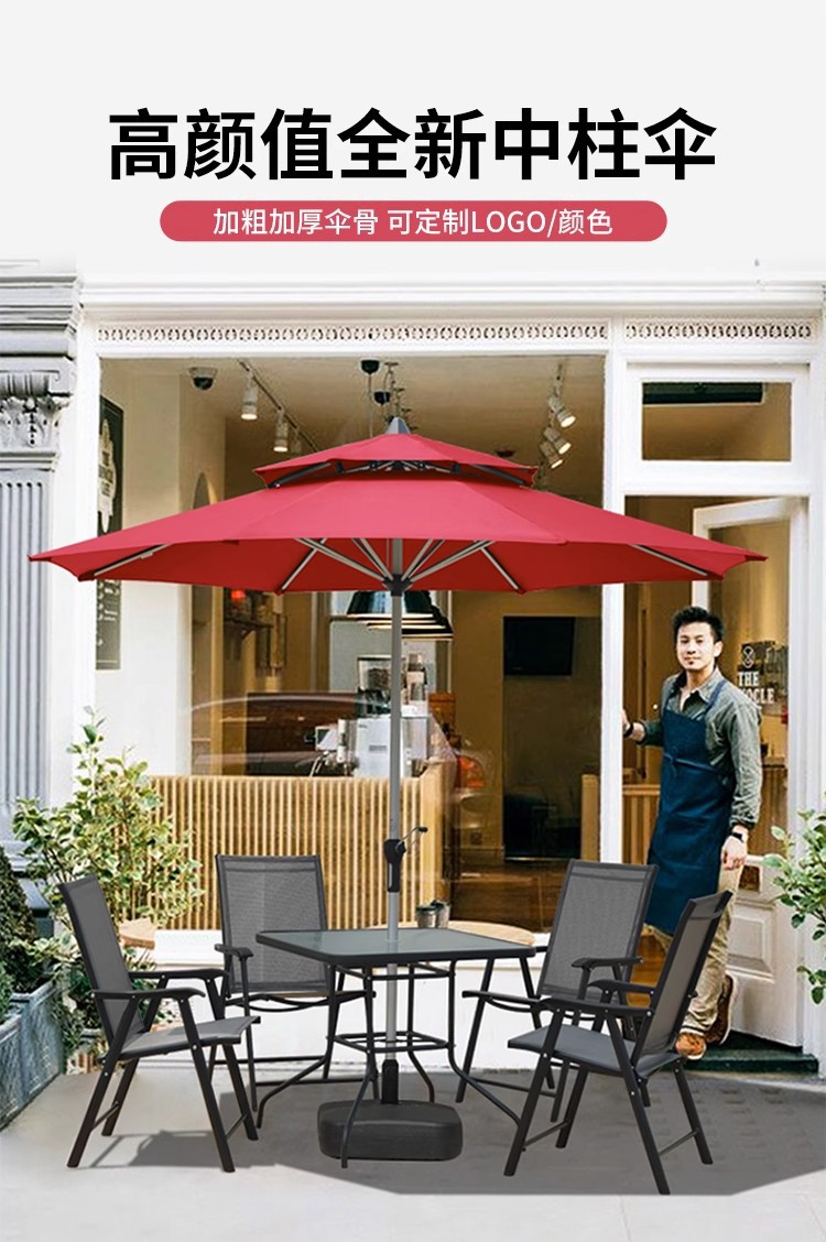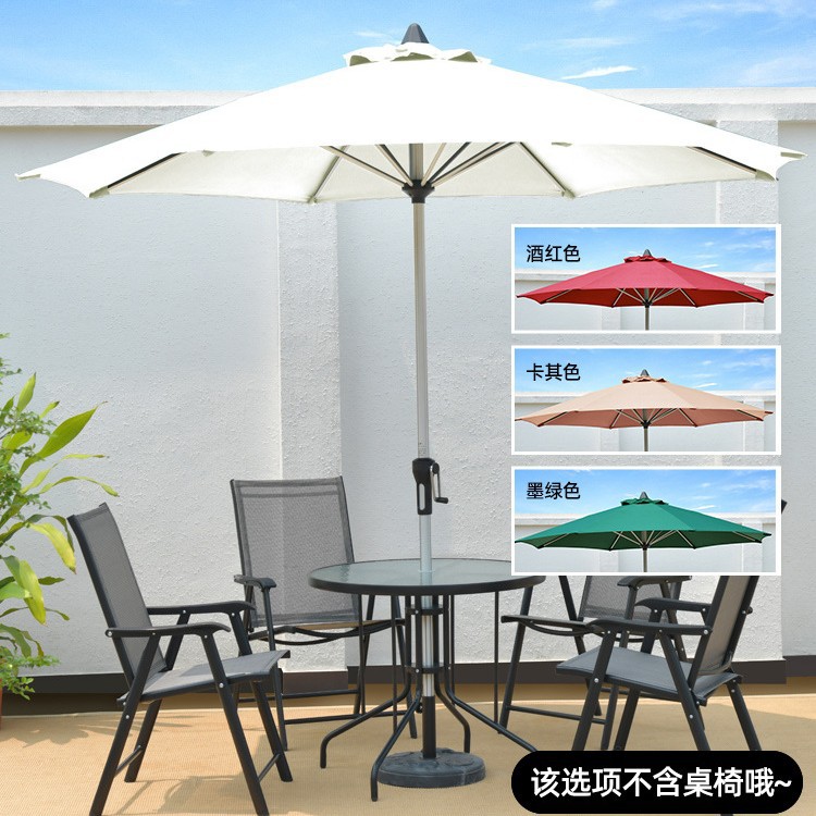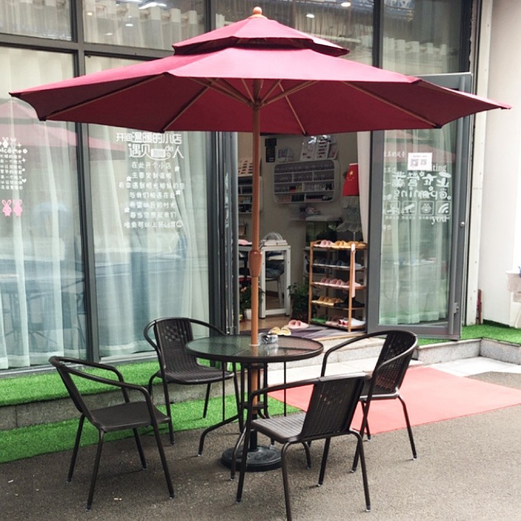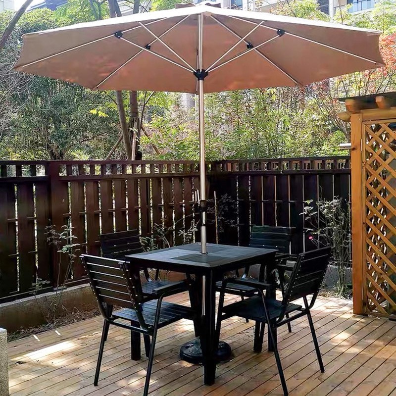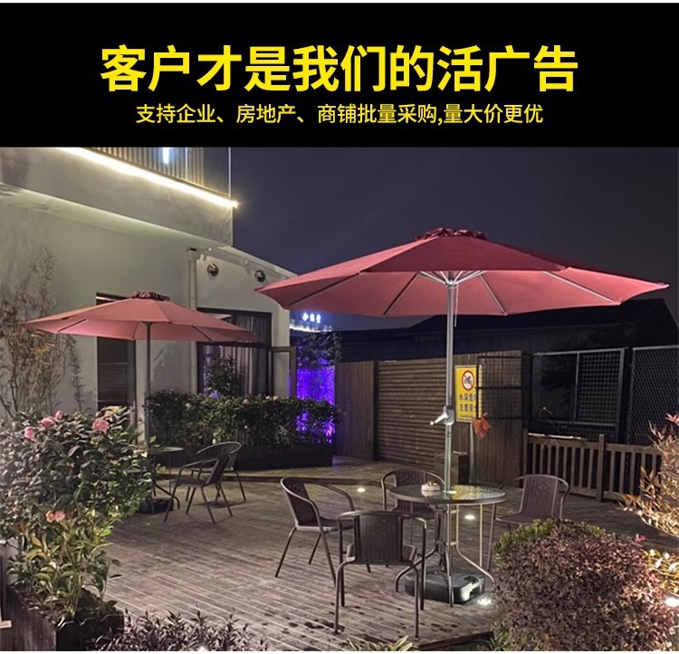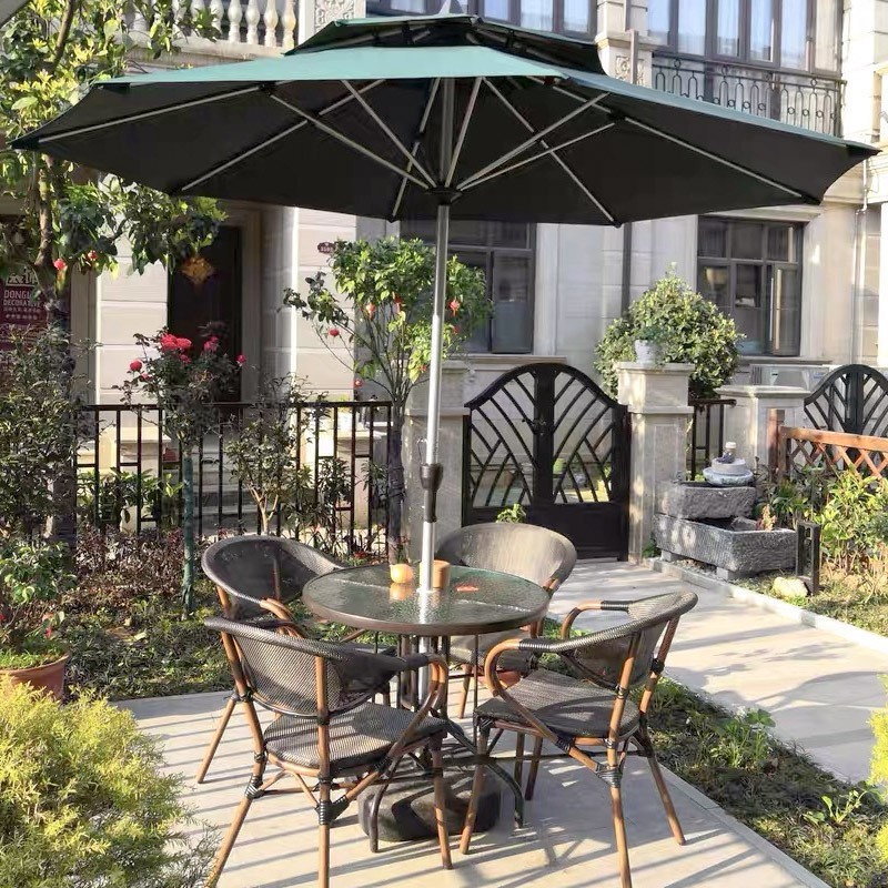 • [테이블, 의자 및 우산 조합] 이중 상단 모조 나무 우산 2.7m개 + 주조 알루미늄 의자 + 원형 테이블 우산 80개 [다양한 색상 가능]