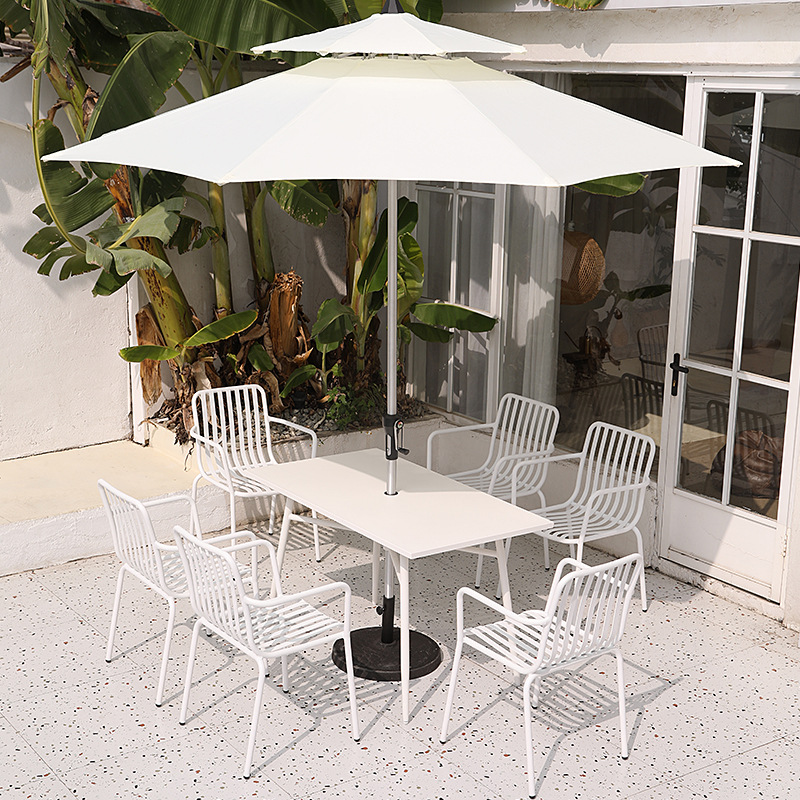 • [테이블, 의자, 우산 조합] 오시 의자 6개 + 북유럽 스타일 직사각형 테이블 1개 + 이중 지붕 알루미늄 우산 2개