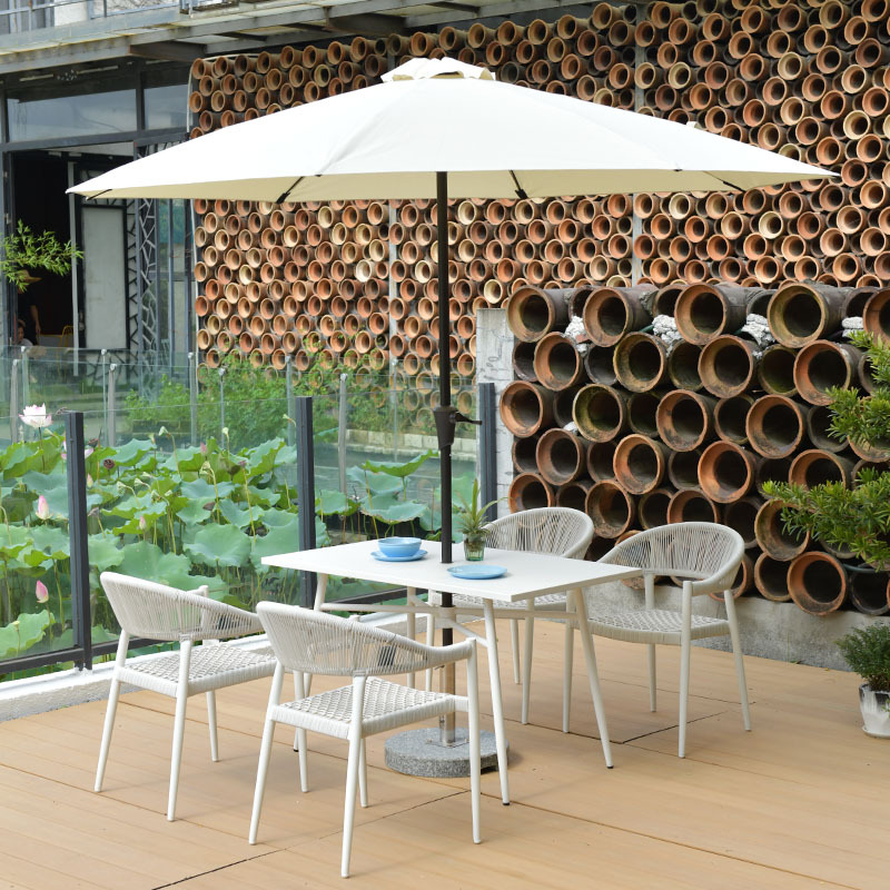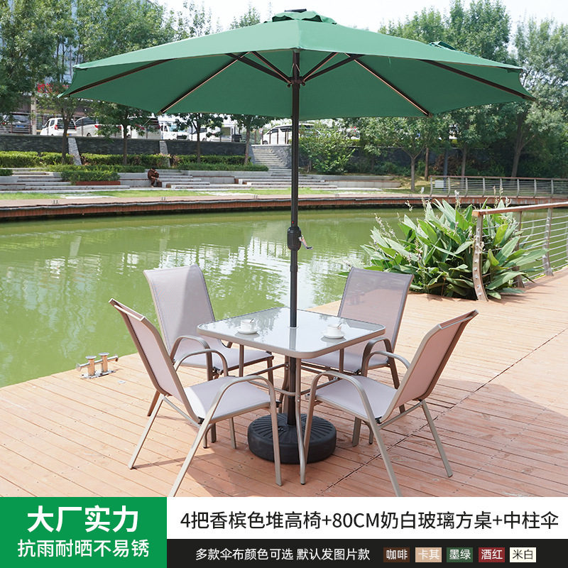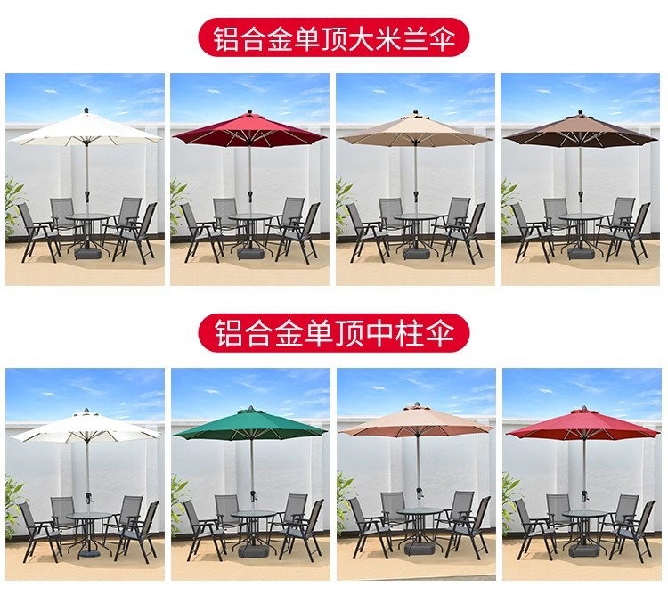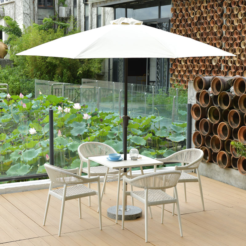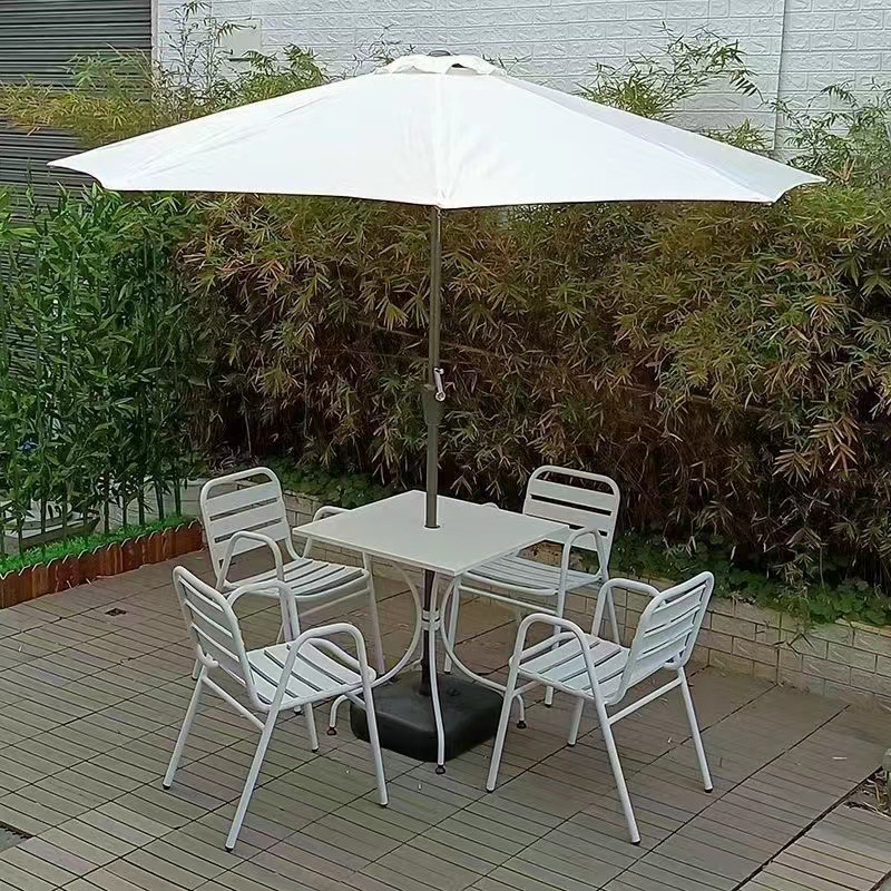 • [테이블, 의자, 우산 조합] 전체 알루미늄 의자 4개 + 흰색 탄소강 사각 테이블 70개 + 중앙 기둥 우산 [다양한 색상 가능]